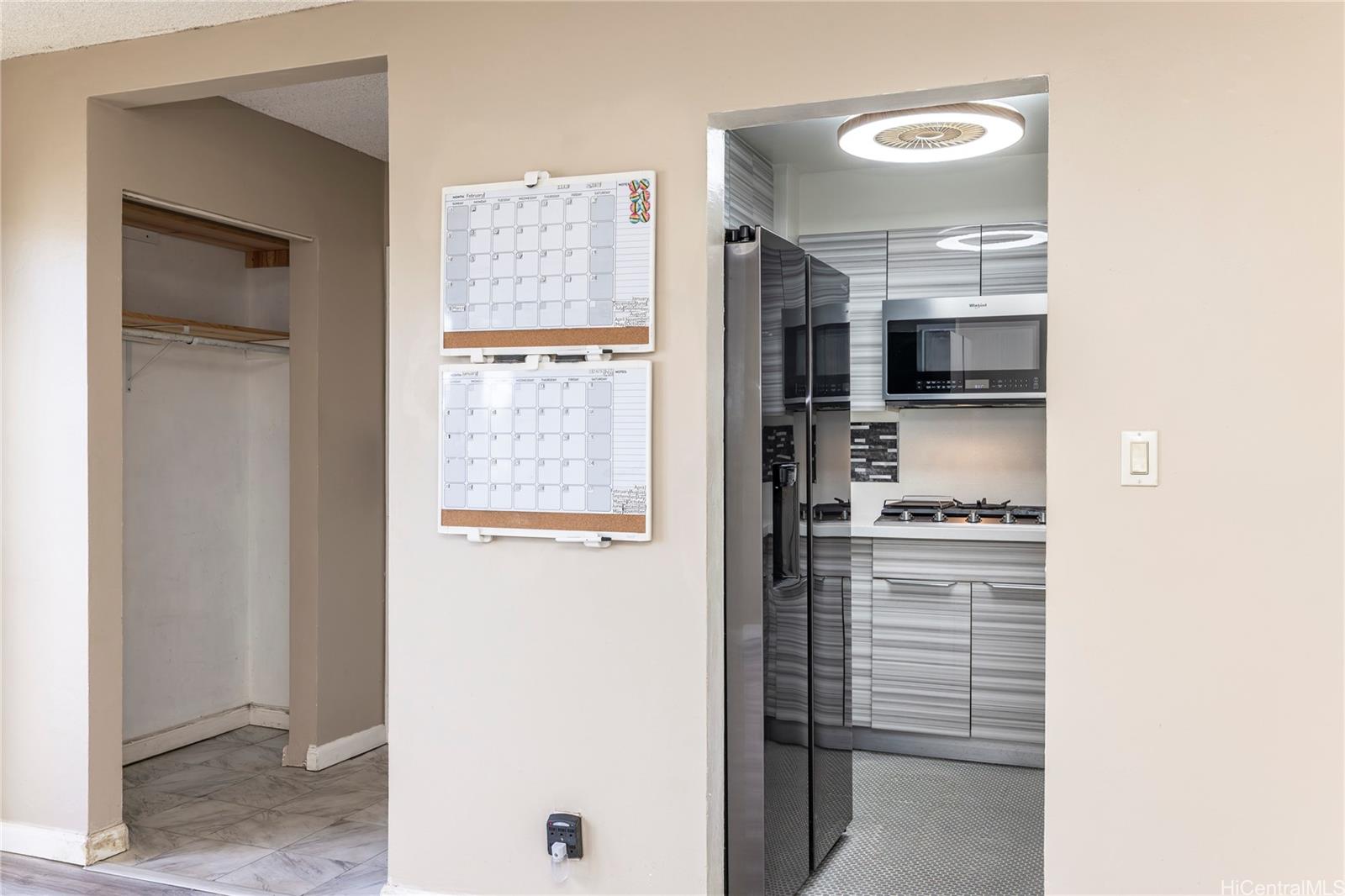 Where else, on Oahu, can you find a home this upgraded, minutes from the beach, at this price, with TWO parking stalls? Extensive upgrades include beautiful acrylic cabinets, quartz counters, a 5 gas burner stove, solid plank & tile flooring and modern lights enhousing fans. Home is conveniently across from the shared laundry room featuring machines installed in 2025.Move quickly on this opportunity to become a homeowner in paradise. This is 808Living! Walk up building, no elevators helps eliminate at least one factor affecting maintenance fees.