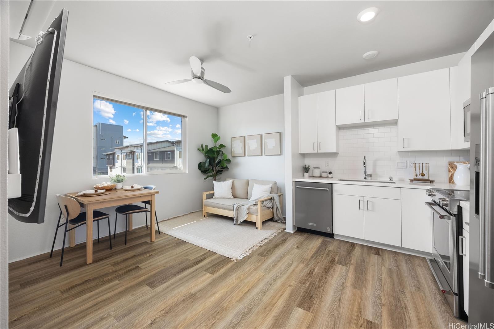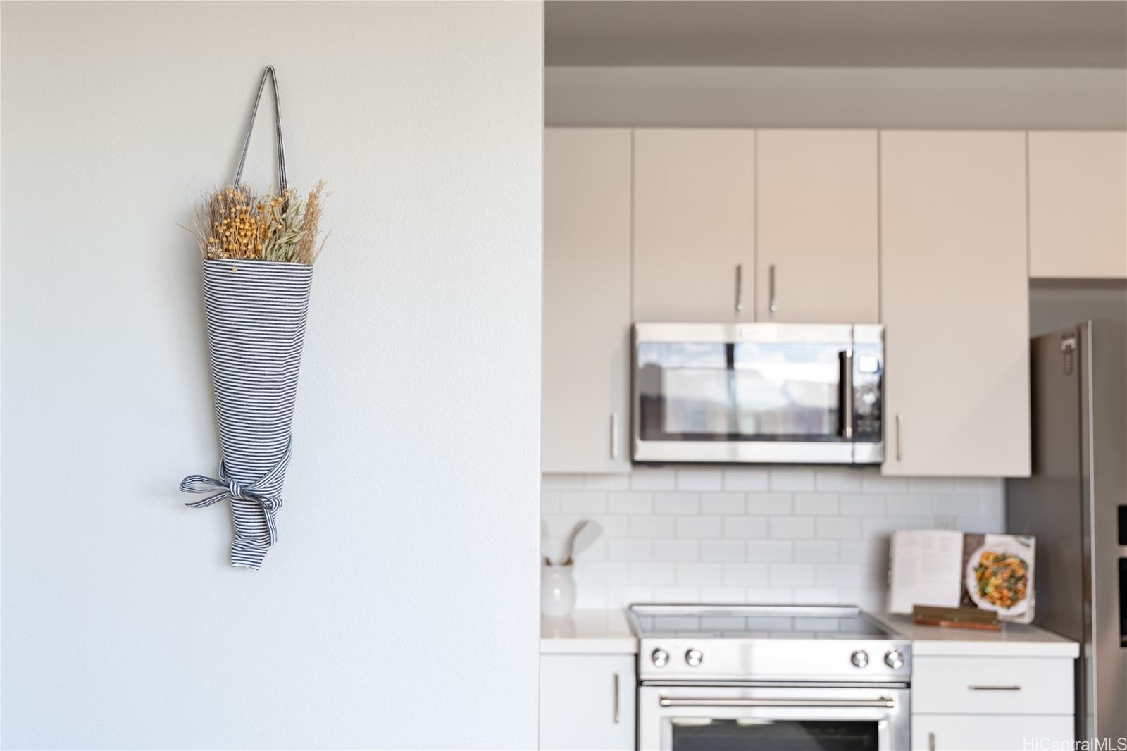Welcome home to this stylish and move-in-ready 1-bedroom, 1-bath residence in Kaikea at Ho‘opili, built in 2022 and located on the third floor with no neighbors above for added privacy and quiet. The home features split AC for year-round comfort, fresh interior paint, quartz countertops, stainless steel appliances, and modern cabinetry, creating a clean and contemporary feel throughout. A brand-new washer and dryer make this home truly turnkey. Enjoy the convenience of one assigned parking stall, available street parking, and dedicated exterior storage labeled “021”, a rare bonus for condo living. Just blocks away from Jim Schuler Pa’ani Park, featuring volleyball nets, basketball courts, and pickleball courts, along with the SoHo Community Center, community swimming pool, BBQ areas, and recreation spaces. Ideally located near rail access, with Ka Makana Ali’i Mall right down the road, UH West O’ahu nearby, and quick access to H-1, this home offers modern comfort, convenience, and an easy island lifestyle in one of O’ahu’s fastest-growing master-planned communities, perfect for owner-occupants or long-term investors alike.