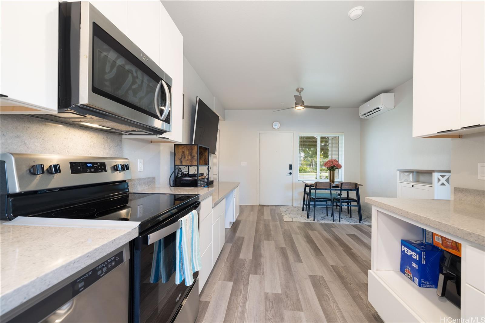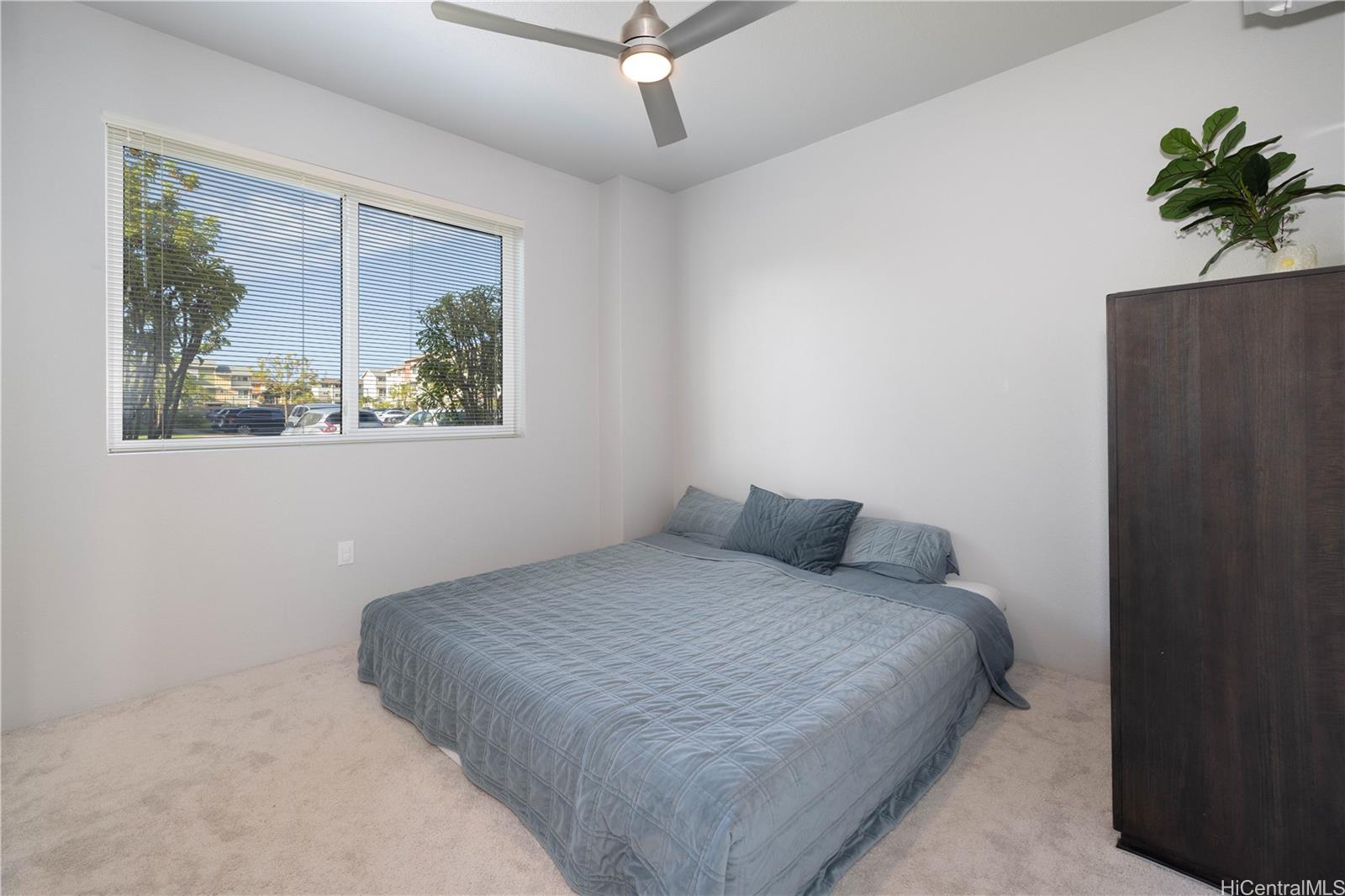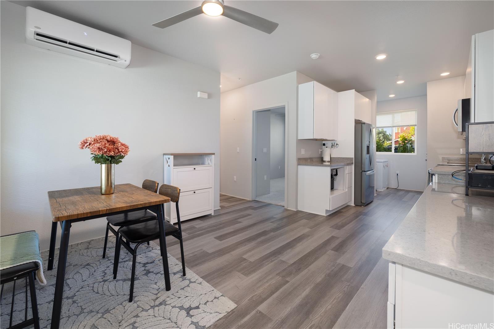 Welcome home to this beautifully maintained ground-floor residence in Ho’opili’s Kaikoi community. This thoughtfully designed 2-bedroom, 2-bath home also features a versatile den that can easily be used as a 3rd bedroom, home office, or flex space to suit your lifestyle. Part of the county’s “Affordable Restricted” program, this home offers modern comfort and everyday convenience. Enjoy split-system air conditioning, stylish vinyl plank flooring, plush wall-to-wall carpeting, and abundant natural light. The contemporary kitchen is a standout, featuring white shaker cabinetry, quartz countertops, and stainless steel appliances-perfect for both daily living and entertaining. Step outside on one of your two lanai’s to unwind with your morning coffee or relax in the evening as the day winds down. The Ho’opili planned community offers exceptional amenities, including a pool and recreation center, keiki park, dog park, pavilion for gatherings, and pickleball and basketball courts. Located just minutes from shopping, dining, freeway access, and walking distance to the new Skyline rail system, this home offers a blend of modern living, connectivity, and community convenience.
