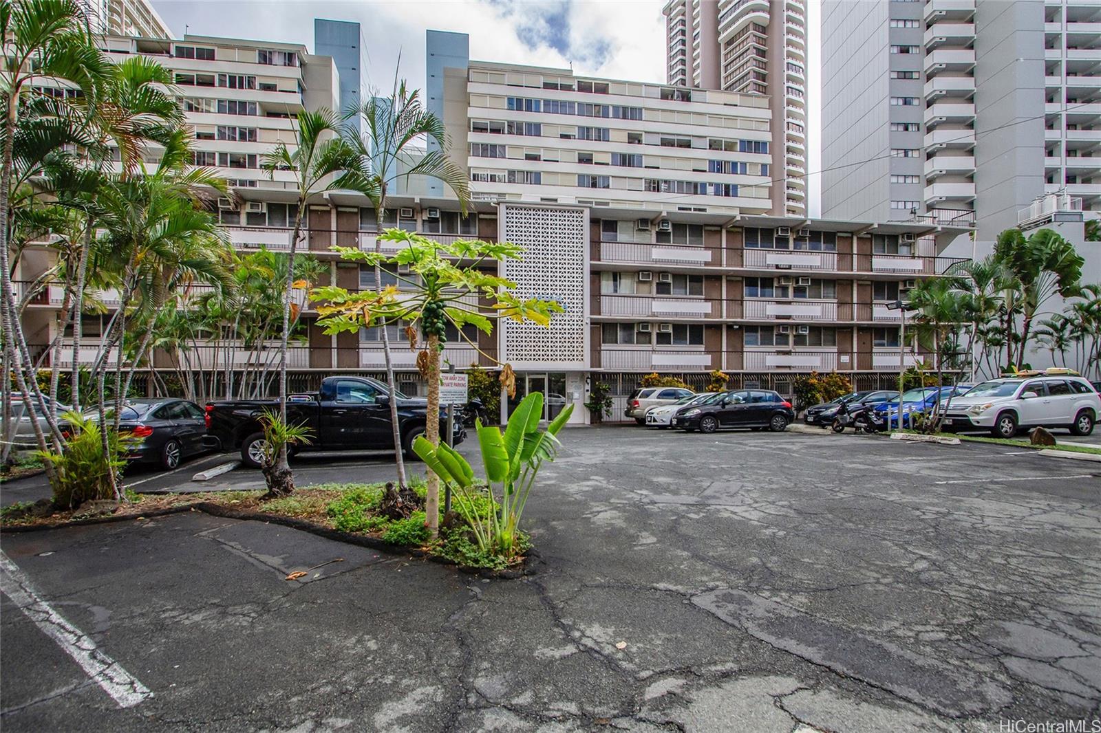 Conveniently located in desirable Kaioo Terrace, this one bedroom, one bath condo offers incredible proximity to Ala Moana, Waikiki, the Hawaii Convention Center, the Ilikai, and endless dining and recreation. Enjoy on-site amenities including a pool and jacuzzi. Monthly maintenance fee covers all major utilities except cable and internet. Pets permitted; buyer to verify. This leasehold property has a lease that runs through 2033, and the fee interest is not available at this time. Current monthly fees: maintenance $611.76 and lease rent $675.28. Sold fully furnished (except wall art). Cash only.