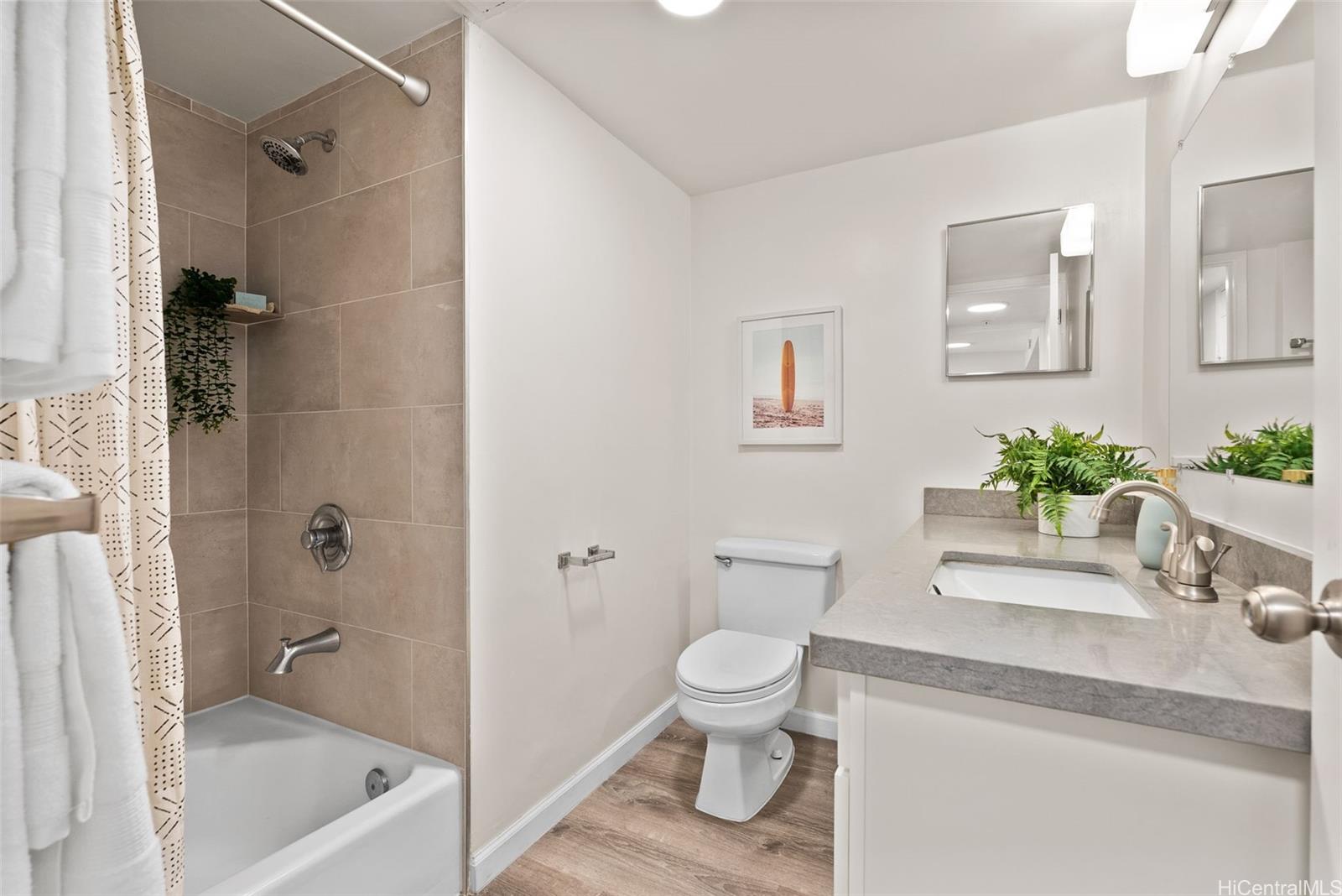 Welcome to Kapiolani Bel-Aire #1007. If you’ve been waiting for a centrally located 2bd/2ba that’s move-in ready, this is it. Fully renovated in 2020, this unit showcases a large, functional kitchen with generous counter space, updated finishes throughout, scraped popcorn ceilings for a clean, modern feel, and the convenience of an in-unit washer and dryer. Situated directly across the street from Don Quijote and moments from Ala Moana, the building places shopping, dining, and everyday essentials right at your doorstep. The interior has been tastefully updated and meticulously cared for. Excellent natural light and refreshing cross breezes keep the space feeling cool and comfortable. From your lanai, enjoy expansive views stretching from the mountains to the city skyline. The building provides peace of mind with secured entry, on-site security, a resident manager, and the recent addition of a fire sprinkler system, a significant safety upgrade that adds reassurance for residents. The property also features a private pool. This is a prime opportunity that delivers on location, lifestyle, and livability in one of Honolulu’s most sought-after neighborhoods.