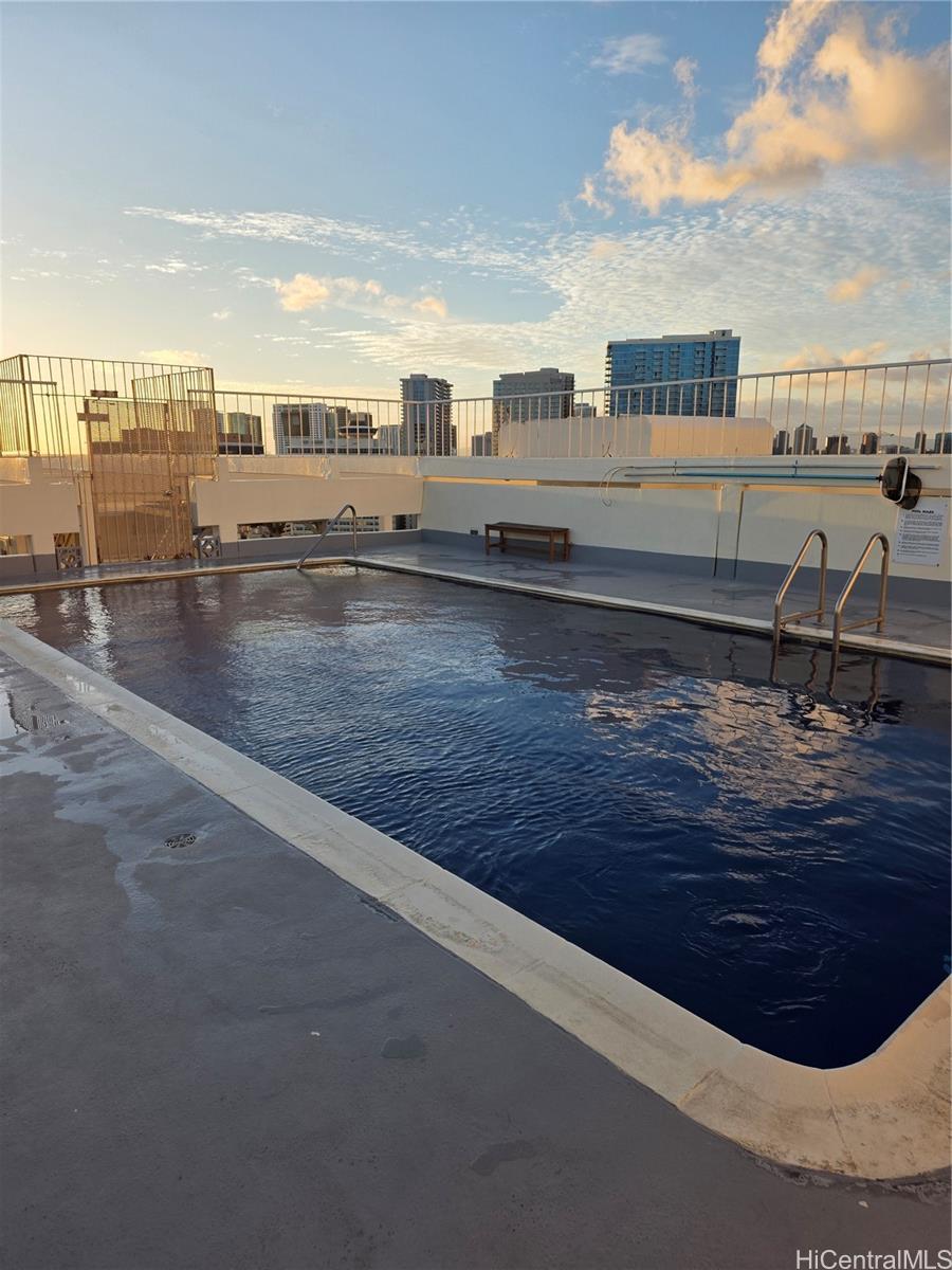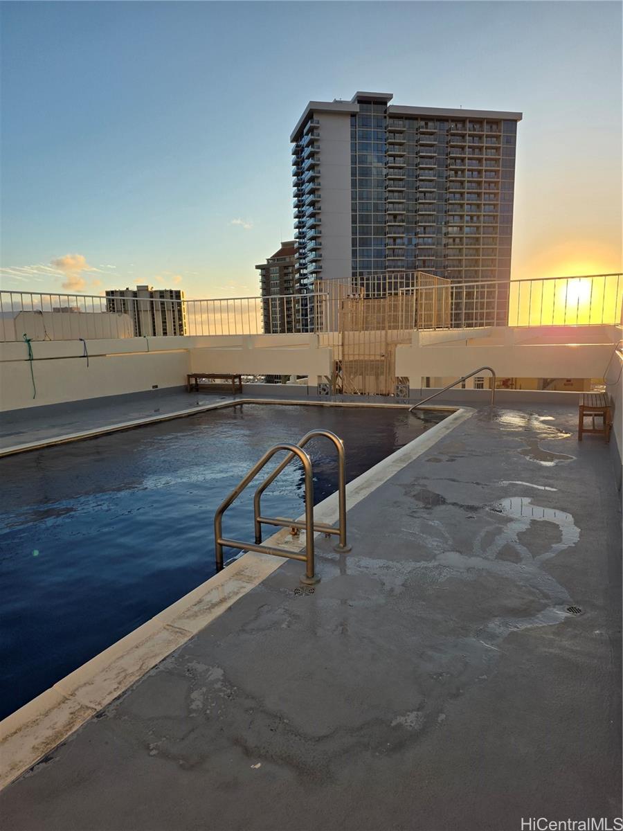KAPIOLANI MANOR location is ideal to shopping, dining, banking, and Ala Moana Beach is within walking distance. Major bus line on Kapiolani Blvd and Kalakaua Avenue. This is a 01 stack unit facing the mountain views/partial city views with northeast trade winds. Average condition with potential for improvements. Extra storage closet in garage area steps away from reserved covered parking stall on street level entrance/exit. Sold “As-Is”.
