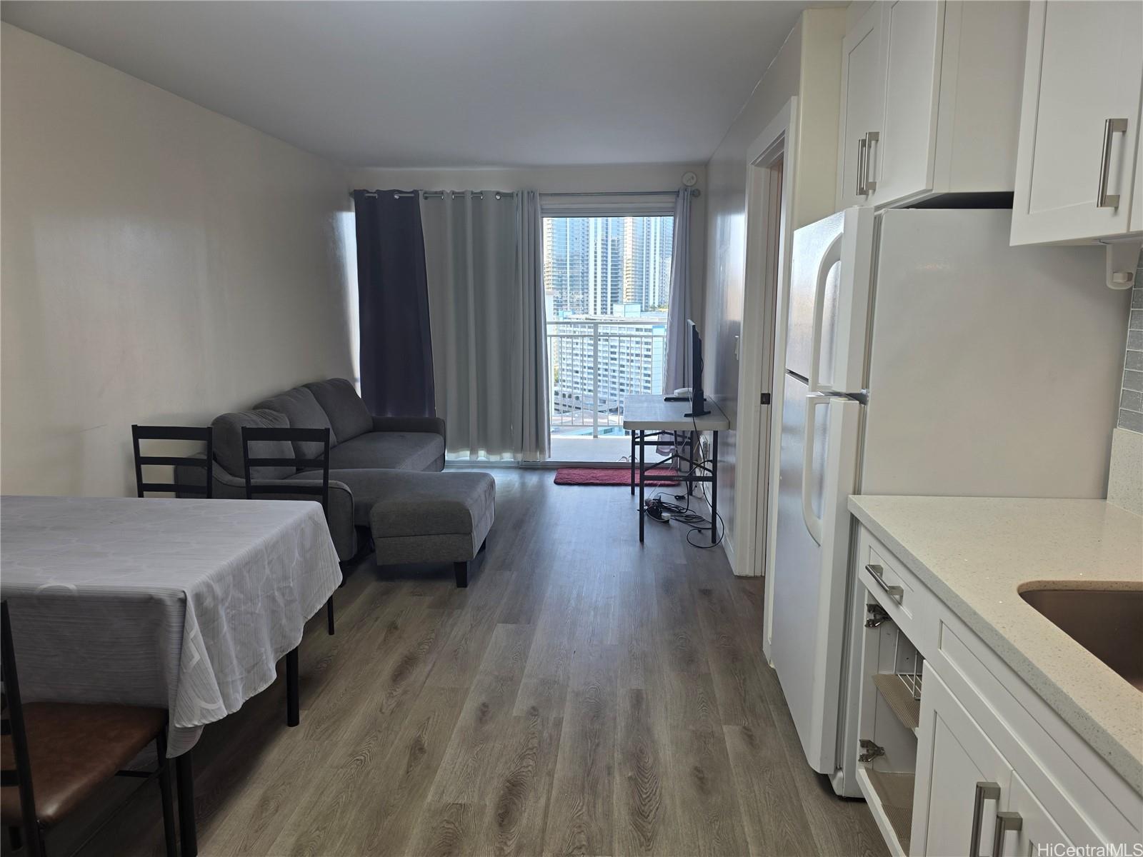 this high-floor unit at 1655 Makaloa St. offers a convenient urban lifestyle just minutes from Ala Moana, Waikiki, world class shopping, dining and beaches. Located at the front of the building are Palama Super Market and Don Quijote, making everyday shopping incredibly convenient. Featuring cool trade winds, abundant natural light, and city views, this residence is ideal for full-time living or investment. Centrally located with easy access to major roads, public transportation, and daily essentials. A great opportunity to own in a desirable Metro Honolulu location.