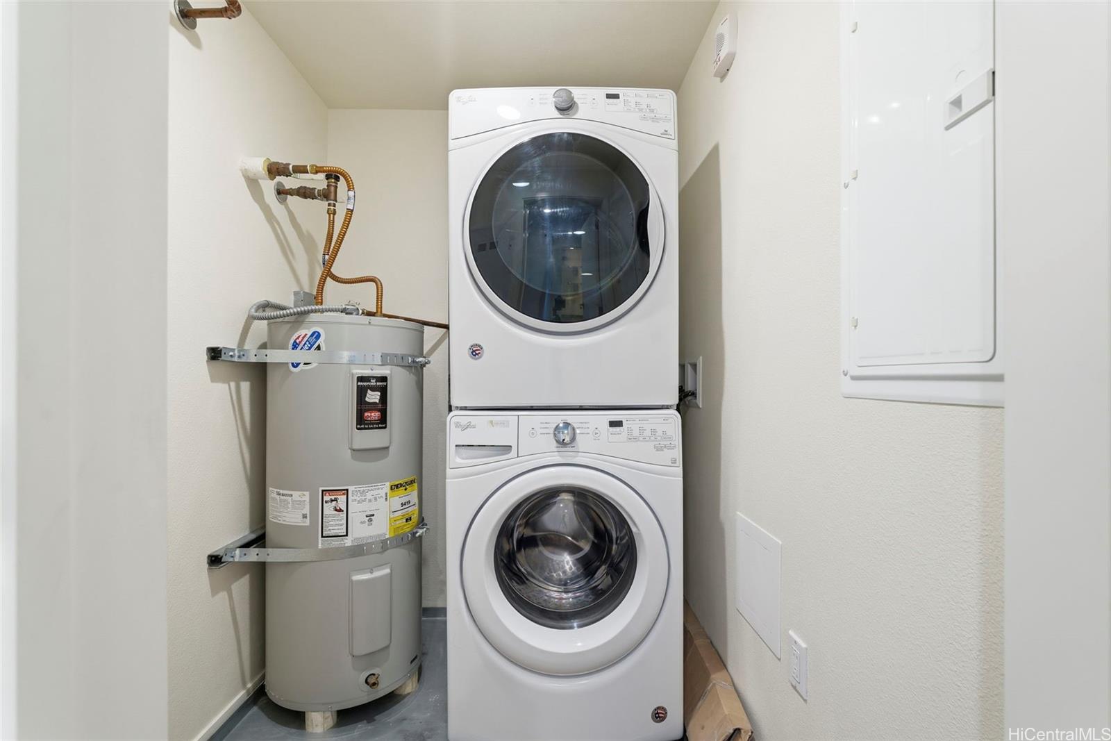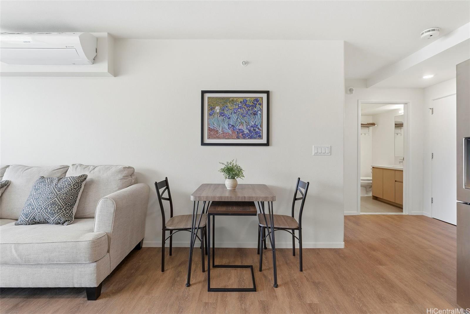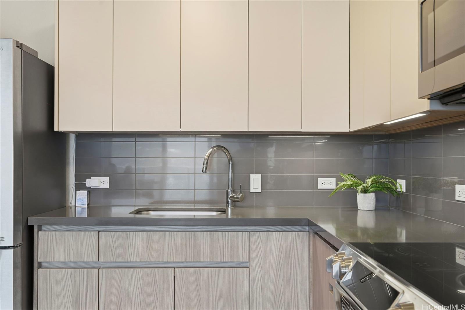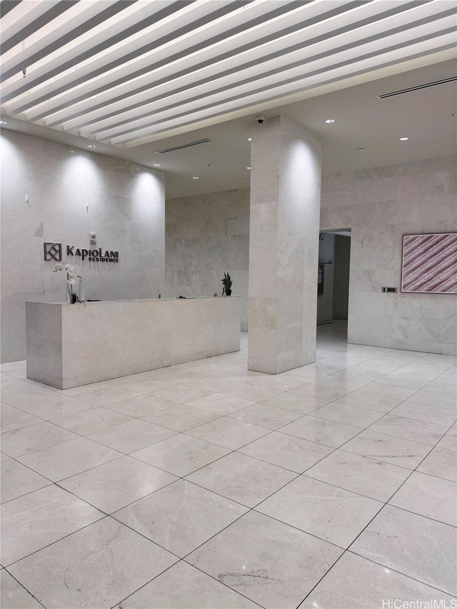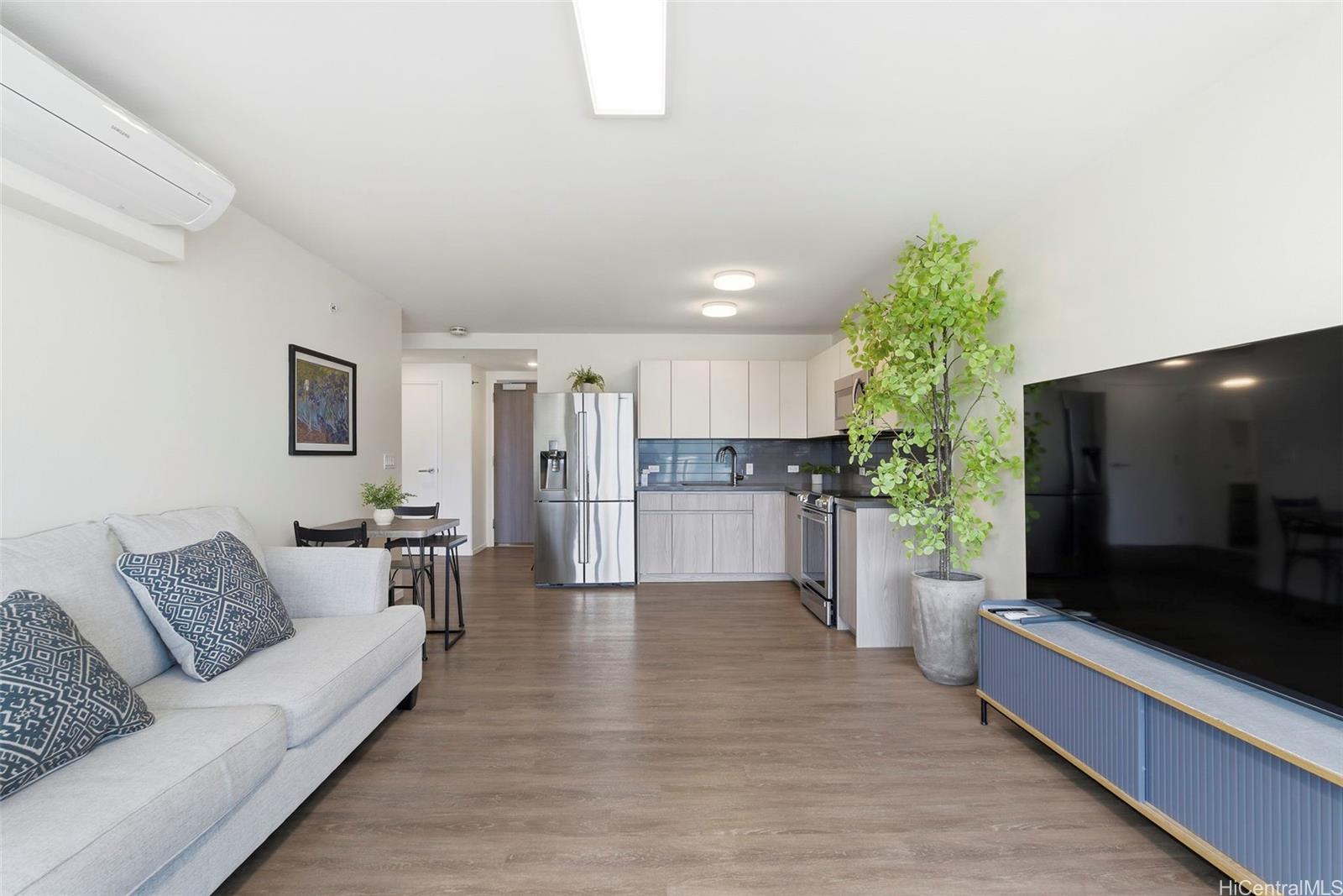 Elevated living awaits on the 40th floor of Kapiolani Residence. This like-new, fully furnished 1-bed, 1-bath condo offers a refined urban retreat w/panoramic mountain & city views. The unit features a private lanai extending the living space & captures Honolulu’s dynamic skyline.The interior is impeccably maintained & move-in ready, w/ laminate flooring throughout the main living areas & a well-appointed kitchen w/ stainless steel appliances & motion-sensored under-cabinet lighting. Remote-controlled blackout blinds in both the living room & bedroom provide privacy,while split ac units in each space ensure year-round climate control. The bedroom offers plush carpeting & picturesque views.Private in-unit laundry room w/ a stackable front-load washer and dryer, along with two separate storage closets. The secure building offers resort-style amenities including a barbecue area, recreation deck, meeting room, EV charging station, & one assigned parking stall. Located near the Hawaii Convention Center, Ala Moana, & world-renowned beaches, this turnkey residence presents a rare opportunity to enjoy luxury, convenience, & elevated island living.