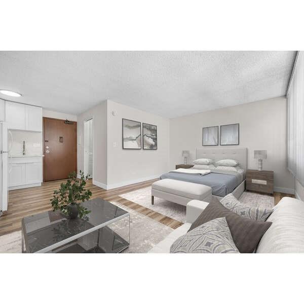 1ベッドルーム・1バスルームの角部屋で、1台の専用駐車場付き。セキュリティゲート付き建物の静かな暮らしをお楽しみください。 2024年に改装済み:クローゼットエリアと浴室への引き戸式入口、新しいシャワーブース 3階のロッカ ...