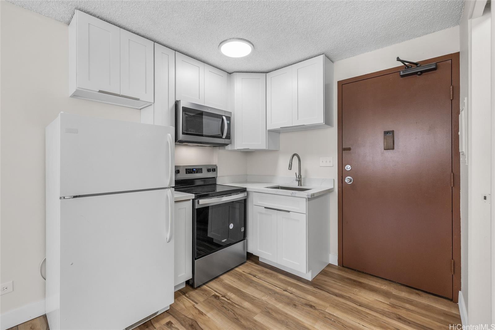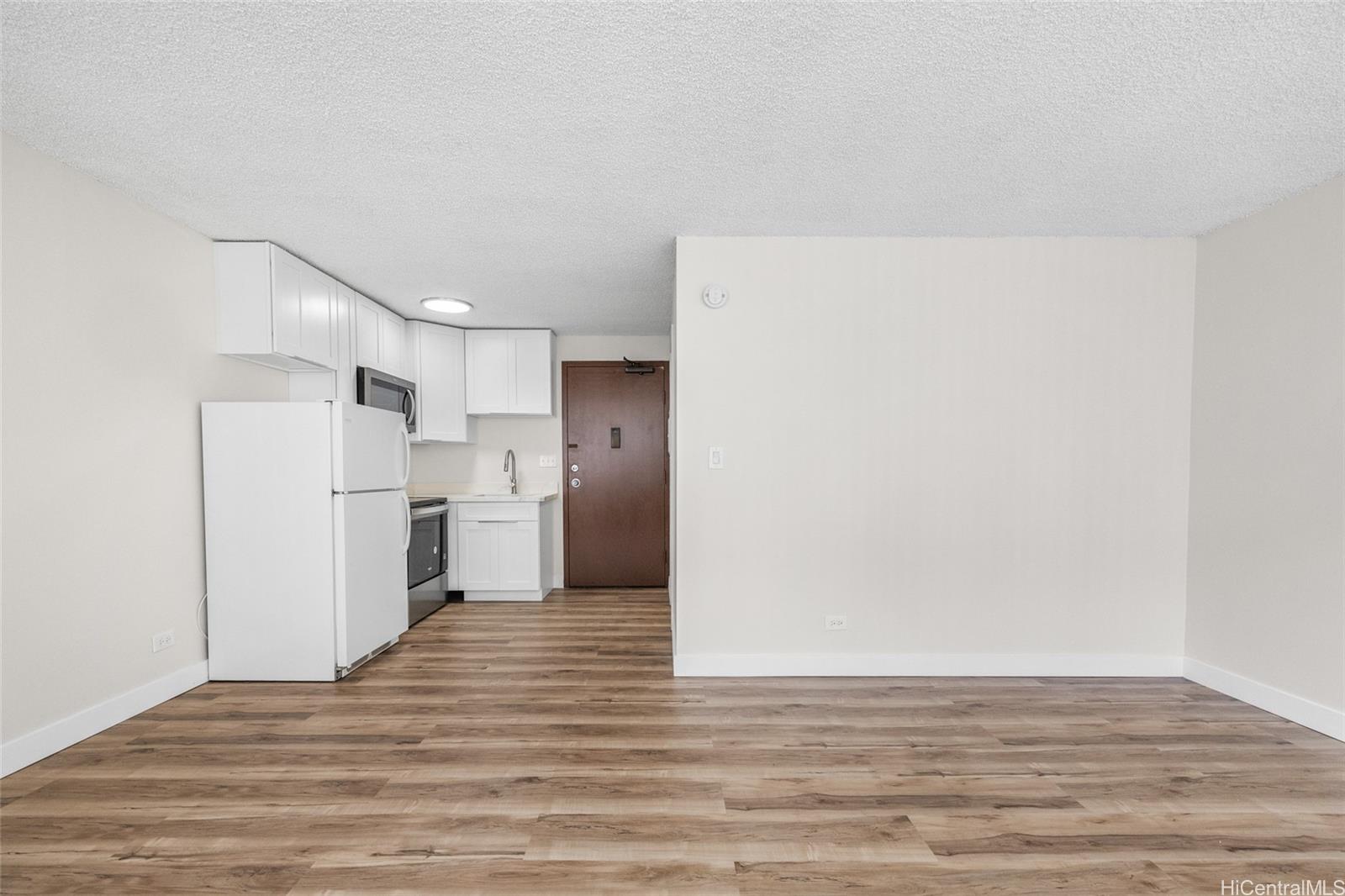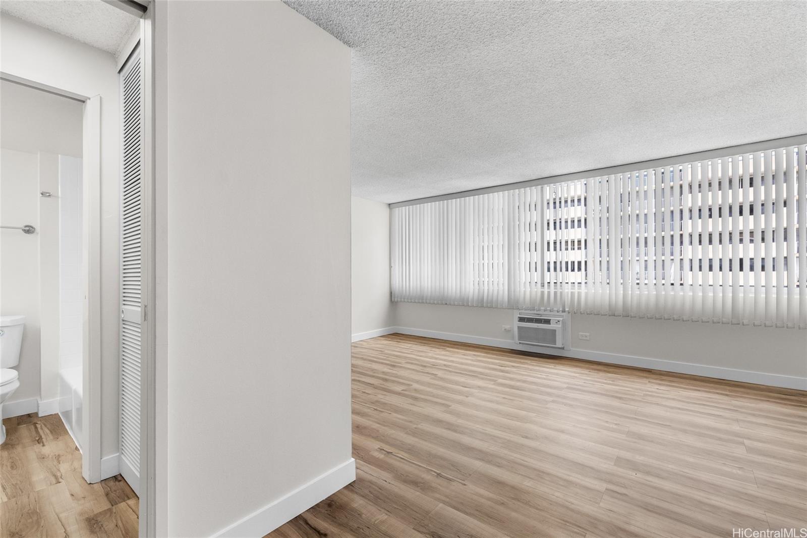 Contemporary comfort in the heart of town! Bright, modern, and move-in ready! This beautifully renovated studio combines convenience and style with city views, A/C, fresh paint, new cabinets and countertops, reglazed tub, and vinyl plank flooring throughout. Covered parking on the 1st floor in a secured gated garage plus ample metered street parking adds ease and peace of mind! Kapiolani Terrace is a well-maintained, desirable building featuring a sparkling pool, on-site resident manager, secured entry, and laundry room with trash chute on every floor. Ideally located near Ala Moana Shopping Center, Ala Moana Beach Park, Don Quijote, Walmart, Sam’s Club, Target, an array of dining, and bus lines—everything you need is just minutes away! With 100% hurricane insurance coverage, sewer re-piping completed, and low maintenance fees, this is the perfect opportunity for a first-time buyer, second home, or investor looking for value in a prime Honolulu location!
