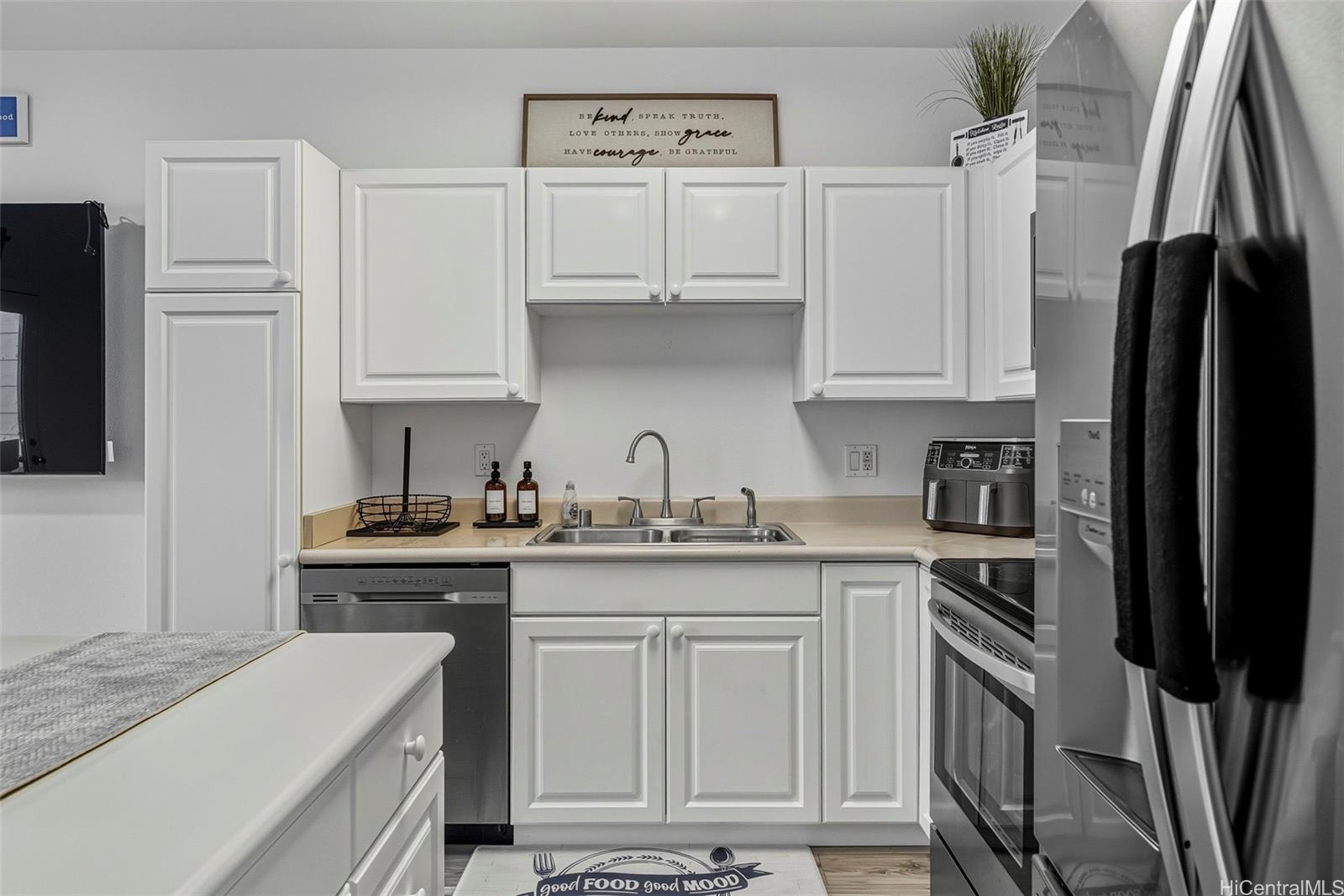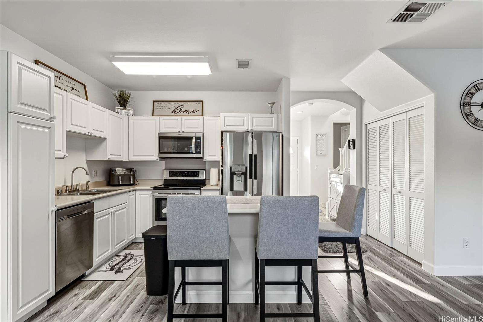 Welcome home to this well-appointed townhome in Ke Noho Kai Townhomes IV. Featuring two spacious bedrooms, each with its own en-suite bath, plus a convenient half bath on the main level, this home offers comfort and functionality throughout. The versatile den is ideal for a home office, guest space, or additional living area. An open-concept kitchen with modern appliances, generous cabinetry, and a center island flows seamlessly into the dining and living spaces—perfect for everyday living and entertaining. Step outside to a private, low-maintenance backyard ideal for relaxing or hosting gatherings. A two-car garage provides secure parking and extra storage. Located in the desirable Oceanpointe community, enjoy close proximity to schools, parks, shopping, and the exciting Wai Kai wave pool and dining destinations. A wonderful opportunity to enjoy island living with convenience and style.