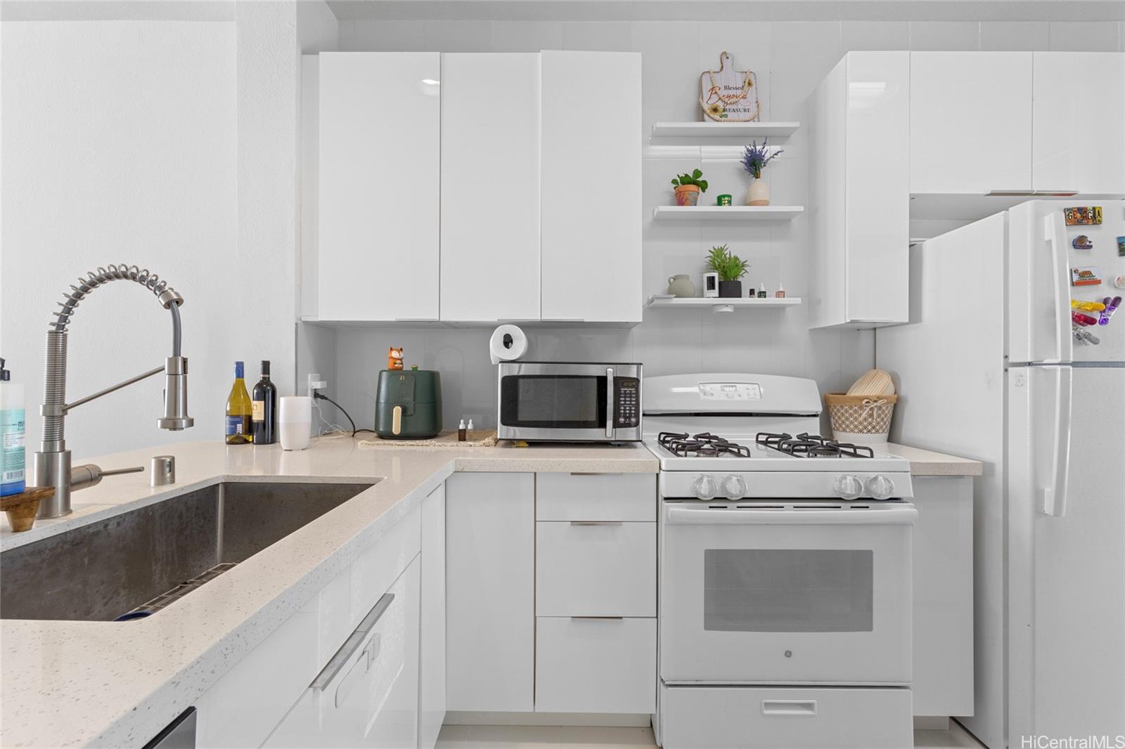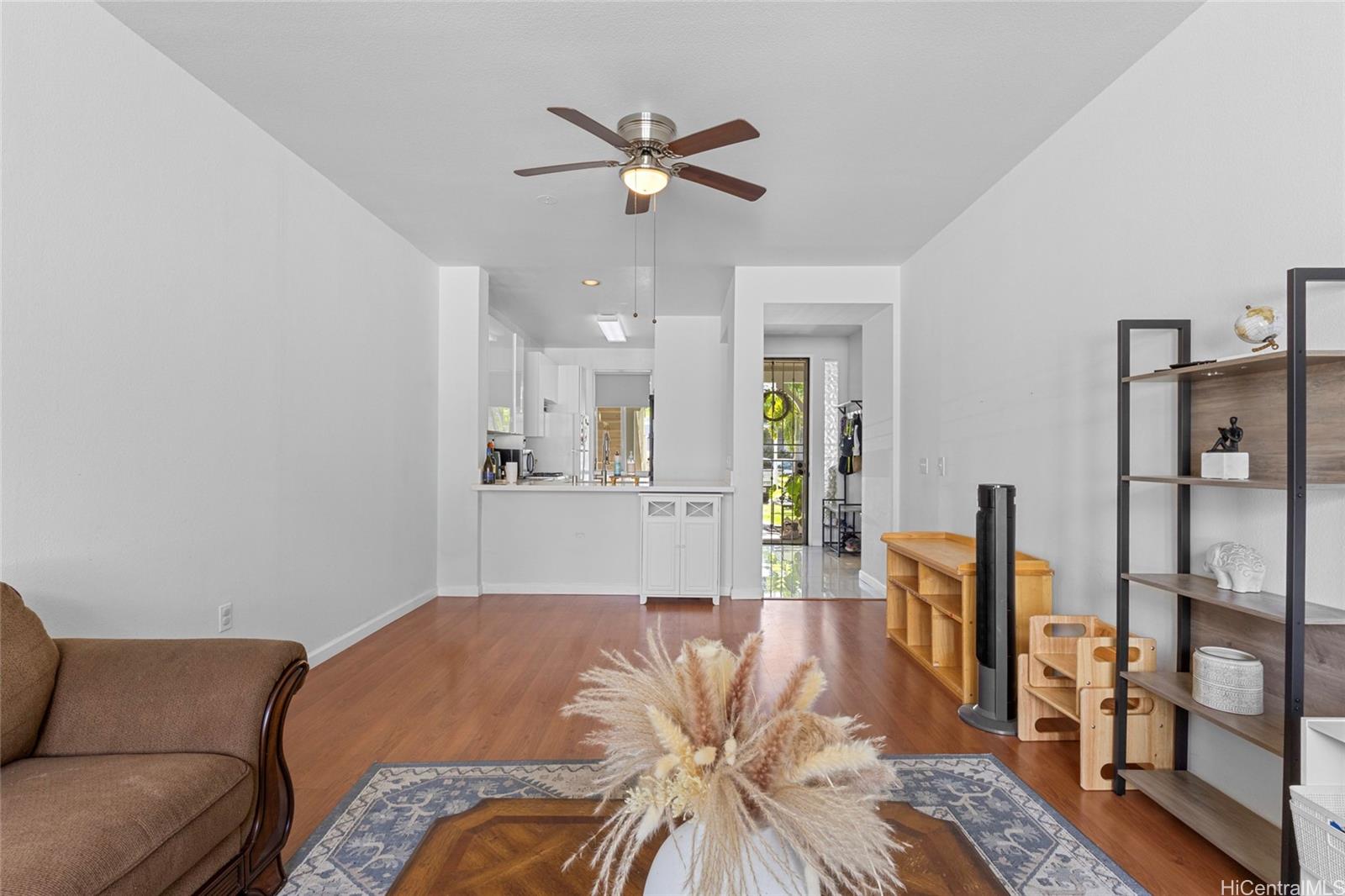 カポレイのケクイルアニ・ヴィラズ・コミュニティ内にある、1階のタウンハウスです。 この2ベッドルーム・1バスルームの住戸には、専用駐車場が2台分付帯しており、カポレイ・ゴルフコースの近くにある複合施設内に位置しています。 内装の特徴としては、キッチンとバスルームの内装がリニューアルされているほか、全室にタイル張りの床が施され、高い天井が開放感のある間取りを演出しています。 共用施設には、プール、バーベキューエリア、来客用駐車場があります。 この物件は、カポレイ・ゴルフクラブ、カ・マカナ・アリイ、小売店、飲食店、そしてホノルル・レール(モノレール)の近くに位置しています。 .
