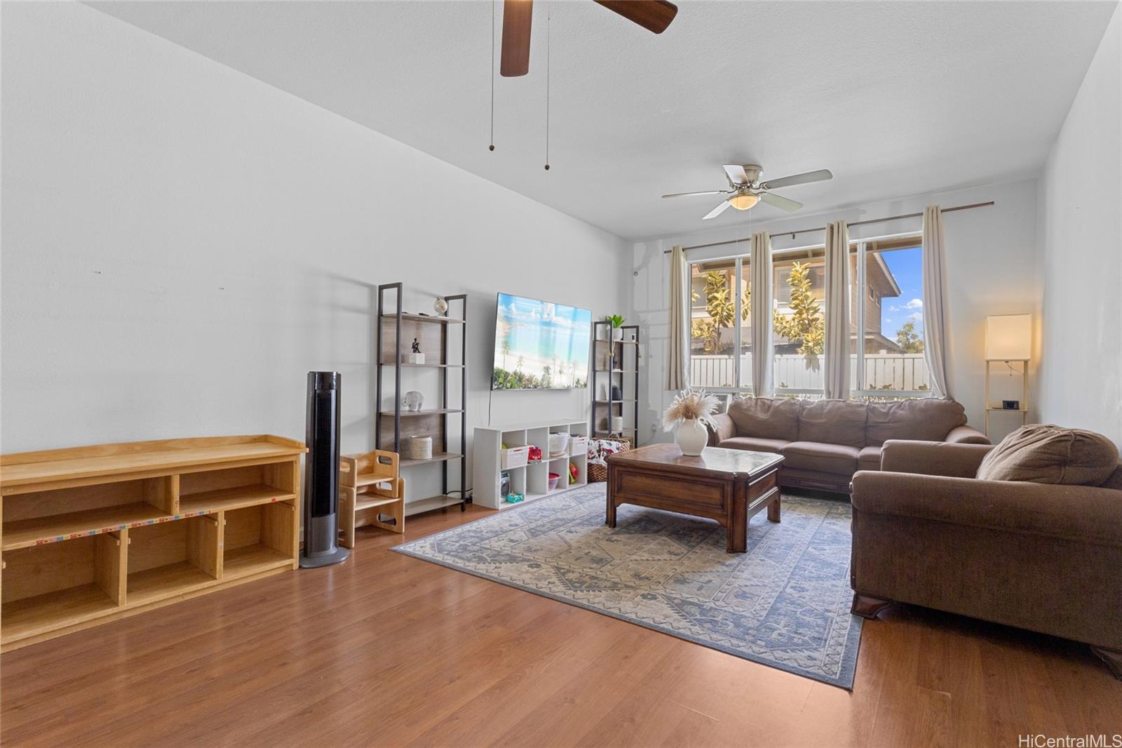 Ground-floor townhome located in the Kekuilani Villas community in Kapolei. This 2-bedroom, 1-bathroom unit includes two assigned parking stalls and is situated within the complex near the Kapolei Golf Course. Interior features include an updated kitchen and bathroom finishes, tile flooring throughout, and high ceilings that contribute to an open interior layout. Community amenities include a pool, BBQ area, and guest parking. The property is located near Kapolei Golf Club, Ka Makana Ali‘i, retail shops, dining options, and the Honolulu rail system.