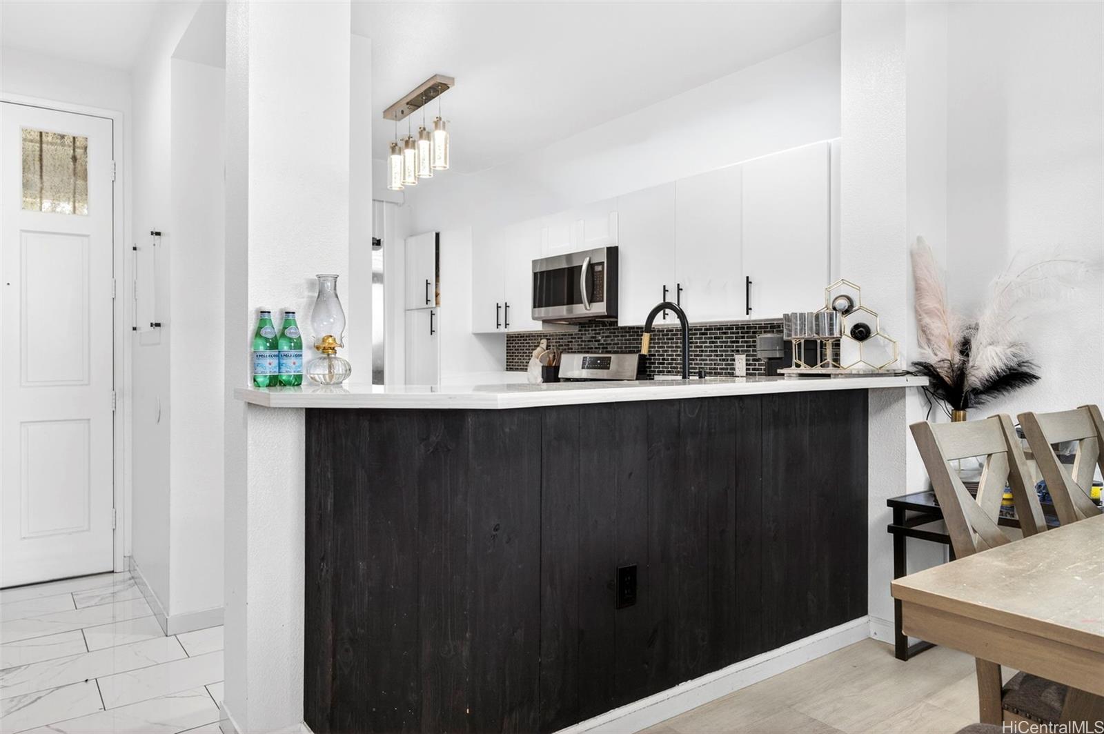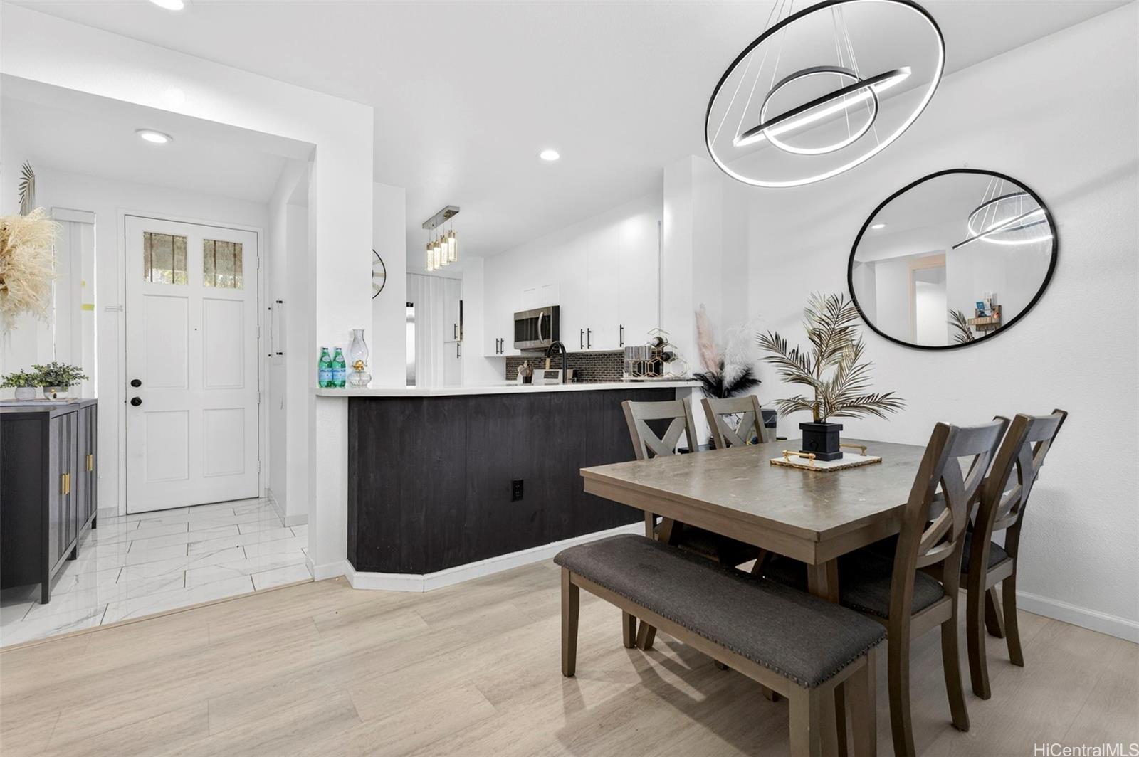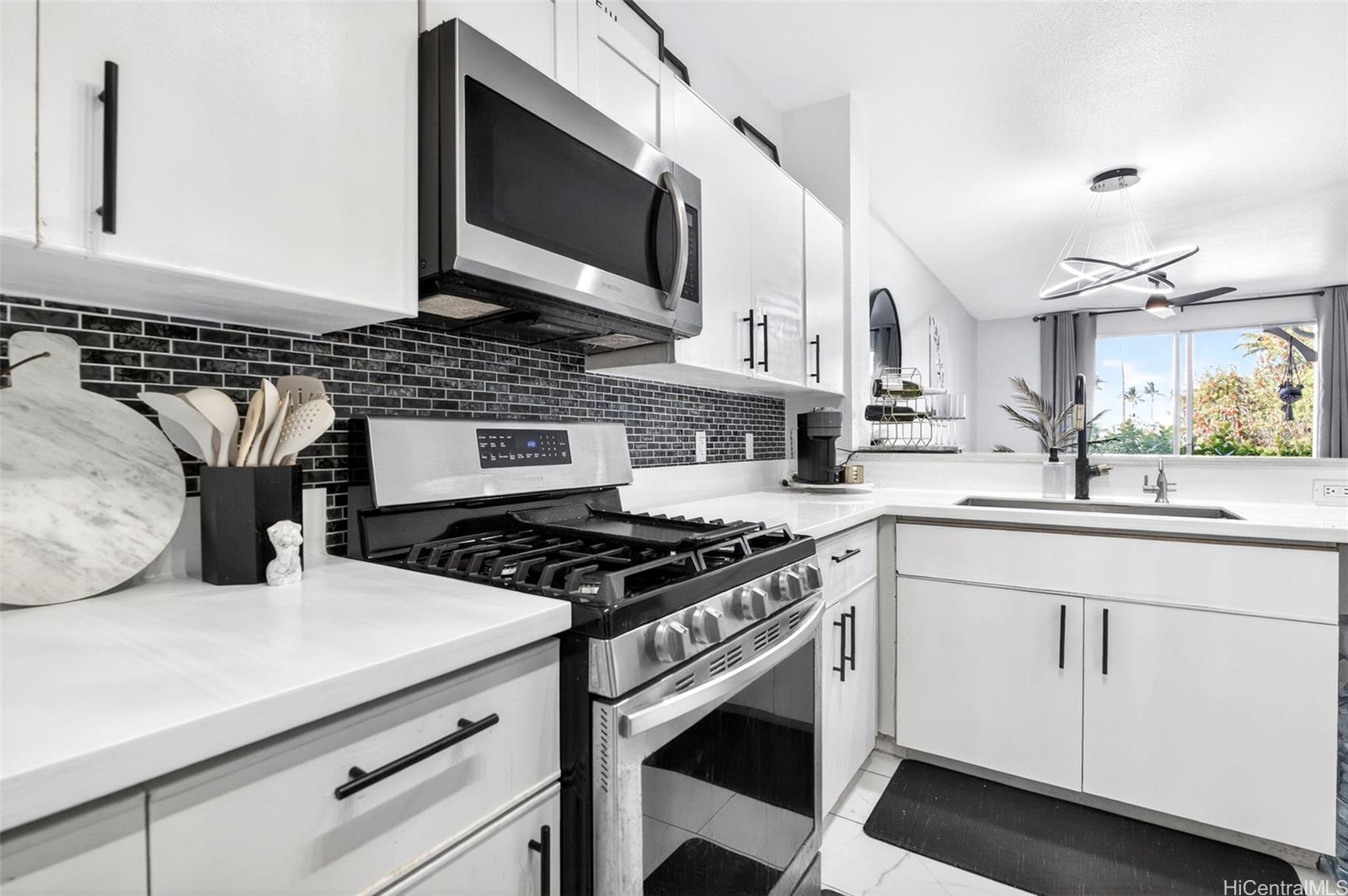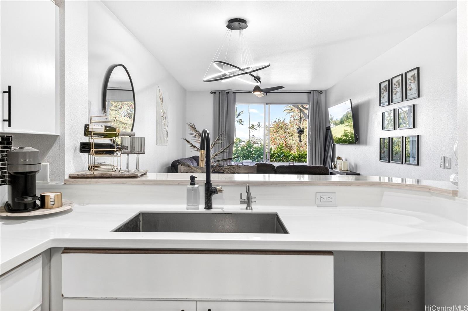 Welcome home to this move in ready and single level gem on the golf course! You’ll love this stylish and upgraded unit that offers an ideal blend of convenience and tranquility. From the moment you walk in, you’ll notice high ceilings, an open floor plan, and a stunning golf course view which epitomizes serene island living. Enjoy cooking meals in your modern kitchen with stainless steel appliances, quartz countertops, and tile backsplash. Bathrooms have also been updated with new vanities and quartz counter tops, plus no carpet throughout the entire home. Take in the beautiful view of the fairway from your patio while enjoying al fresco dining or your morning coffee. You can also take advantage of the nearby community pool for added relaxation. Located within the heart of Kapolei, you are close to schools, shopping, restaurants, beaches, & so much more. Experience the perfect balance of comfort and style when you come home today!