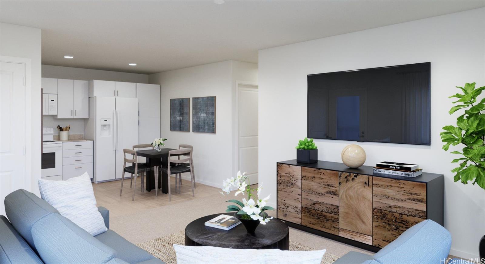 Welcome to Ke’Olu at Koa Ridge. Castle & Cooke’s newest affordable townhome community thoughtfully designed for Hawaii families. Nestled in a highly desirable master planned neighborhood in Central Oahu. This 3 bedroom 2 bath townhome with 2 dedicated parking spaces offers spacious open concept living with modern comforts. Enjoy easy access to the H2 freeway and minutes away from Costco, Foodland, local restaurants, Central Oahu Regional Park, Waikele Shopping Center and more. Key features include interior sprinkler system, wall A/C units in living room and bedrooms for your comfort, HIMAC kitchen & bath countertops, soft close kitchen & bath cabinets, hurricane impact resistant windows for enhanced safety, doorbell camera for added security, solar hot water system for energy efficiency and more. Don’t miss your chance to live in a beautiful family friendly community that combines quality design with affordability.