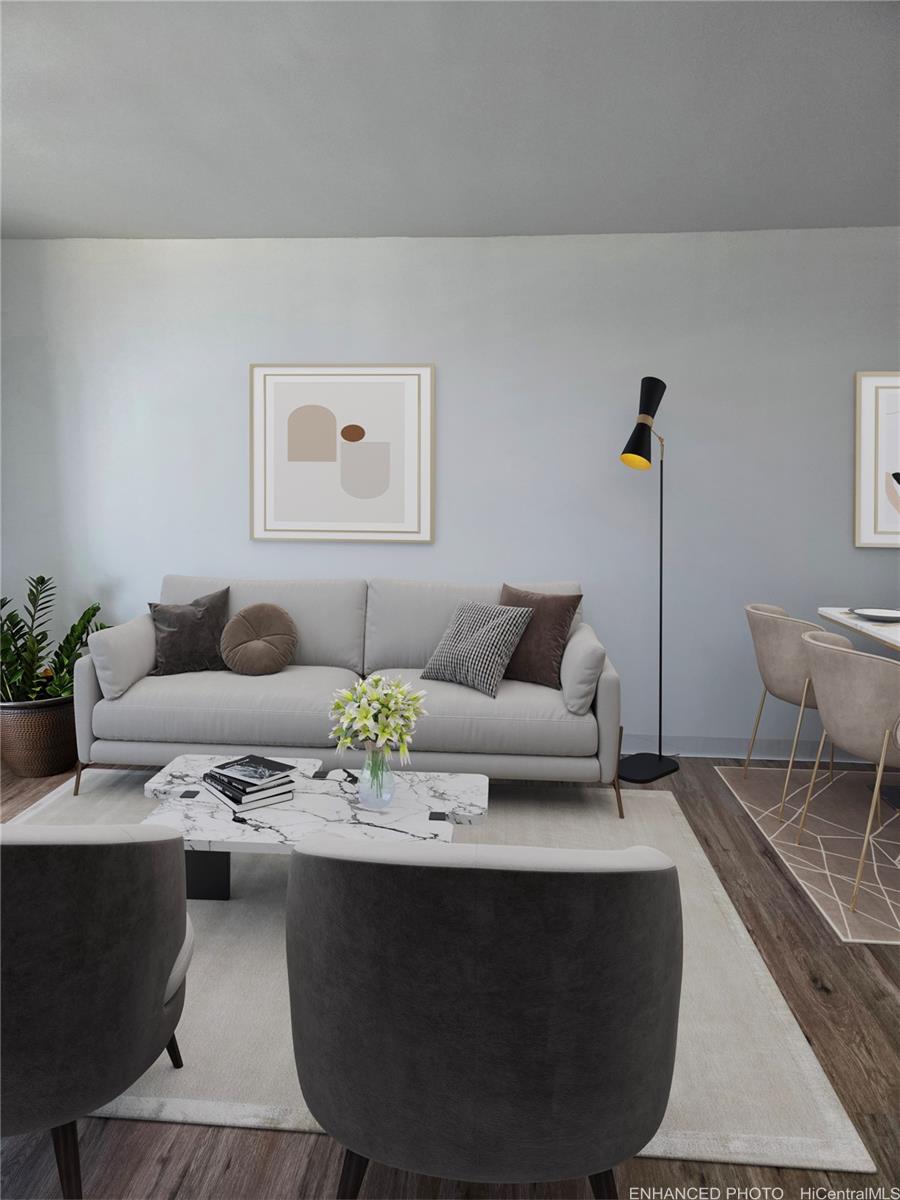 VA Assumable Loan offered to eligible VA Buyers and non-VA Buyers. $1,520/mo., rate 2.25%, pricipal balance as of Oct 2025 is approximately $309,942; loan matures 2052. This lovely, corner end, one-bedroom, one-bath unit features a large lanai. City and skyline views of mountain and ocean. If location matters, enjoy easy, close proximity to H-1 access, convenient bus line route, Neal Blaisdell Center, Thomas Square Park, Honolulu Museum of Art, Open Market on Wednesdays at the Neal Blaisdell Center grounds, Ala Moana Shopping Center, Kaka’ako restaurants, University of Hawaii, and more. The property was previously renovated in 2021 to include cherry cabinets, Quartz countertops, a new sink, and stainless steel appliances in the kitchen. Updates also included a new bathroom vanity, sink, faucet, washer/dryer, toilet and mirror. Newer refrigerator 2024. New laminate flooring in the living room kitchen and bedroom. Bathtub was nicely reglazed. There is one assigned, compact, covered parking stall. A convenient Mini Mart located on the ground floor. As-is condition, no repairs, but Buyer will receive a one year warranty from America’s Preferred Home Warranty upon closing.