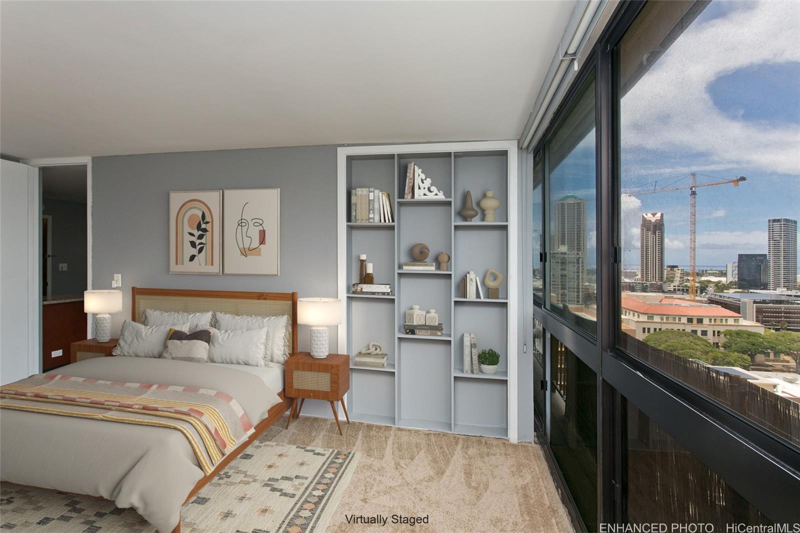Calling all investors looking for a turnkey investment opportunity with immediate rental income. This high-floor, tenant-occupied unit is ideal for investors seeking a stabilized asset in a centrally located Honolulu building. The efficient layout offers excellent natural light and expansive city views. This one bedroom one bathroom unit comes with one assigned covered parking stall and features an enclosed lanai, creating additional usable interior living space larger than many comparable units in the building. Other features include vinyl plank flooring, granite counters, roller screens in living room and bedroom, stacked washer/dryer and built-in shelving. The building is secured and offers amenities including a swimming pool, barbecue area and even a convenience store on property enhancing tenant retention and marketability. Centrally located near Downtown Honolulu, Queen’s Medical Center, vibrant Kaka’ako, freeway access, dining, and public transportation. Consistent tenant demand make this property well suited for buy-and-hold investors or those looking to expand their portfolio.