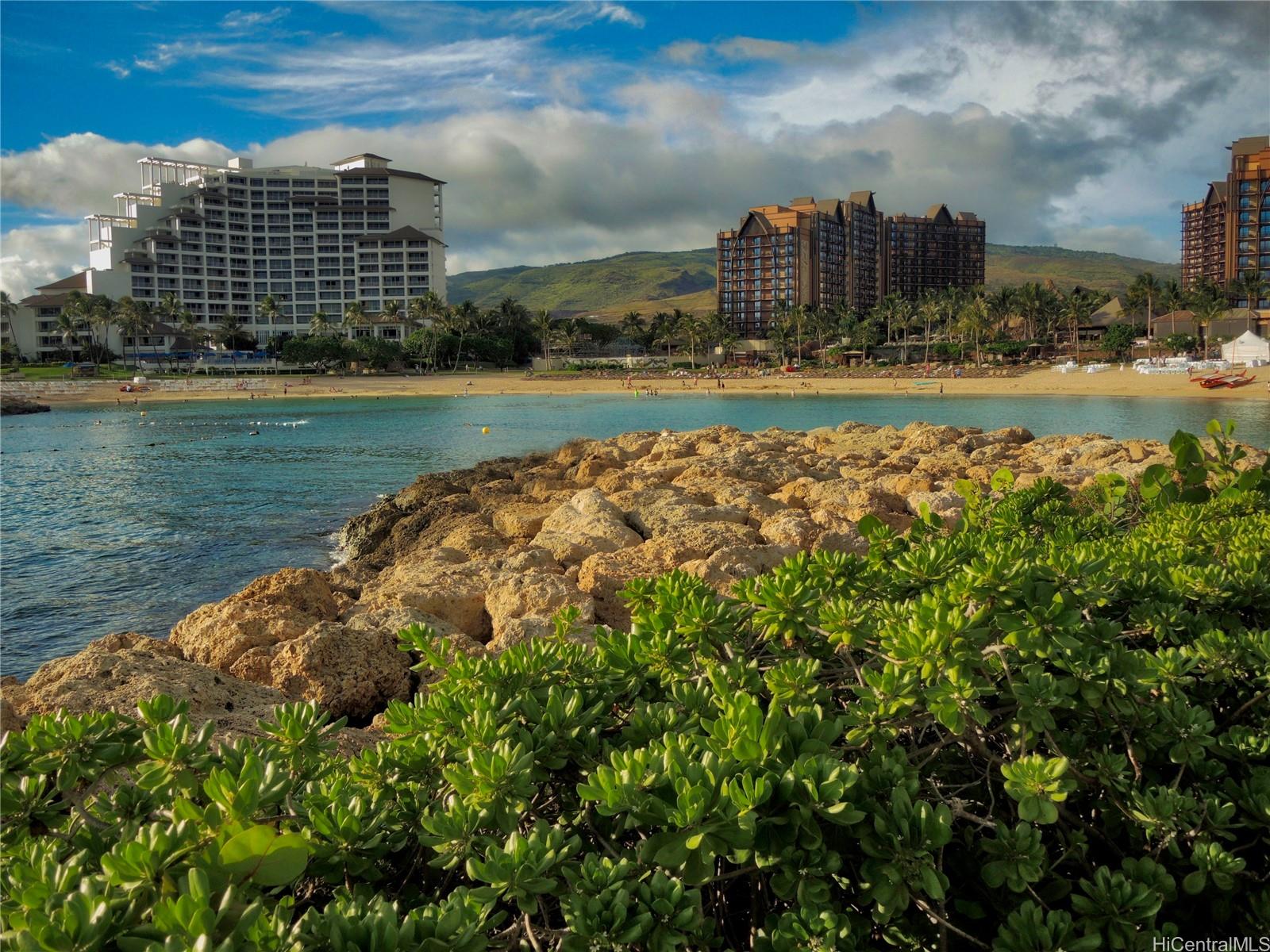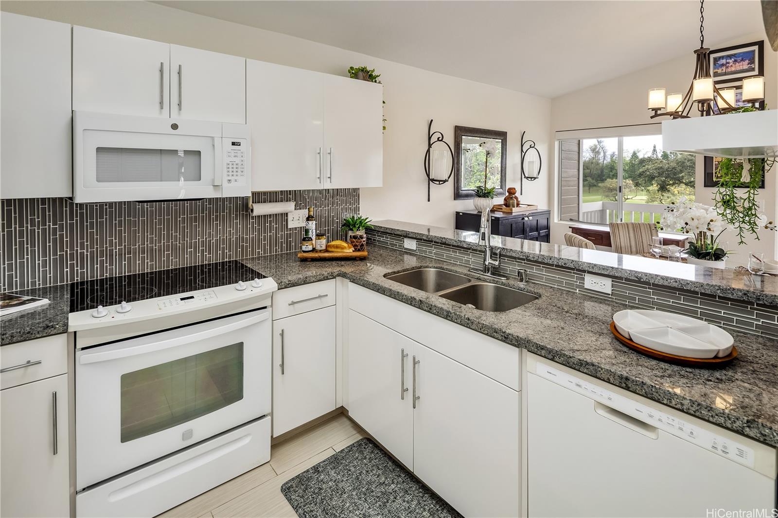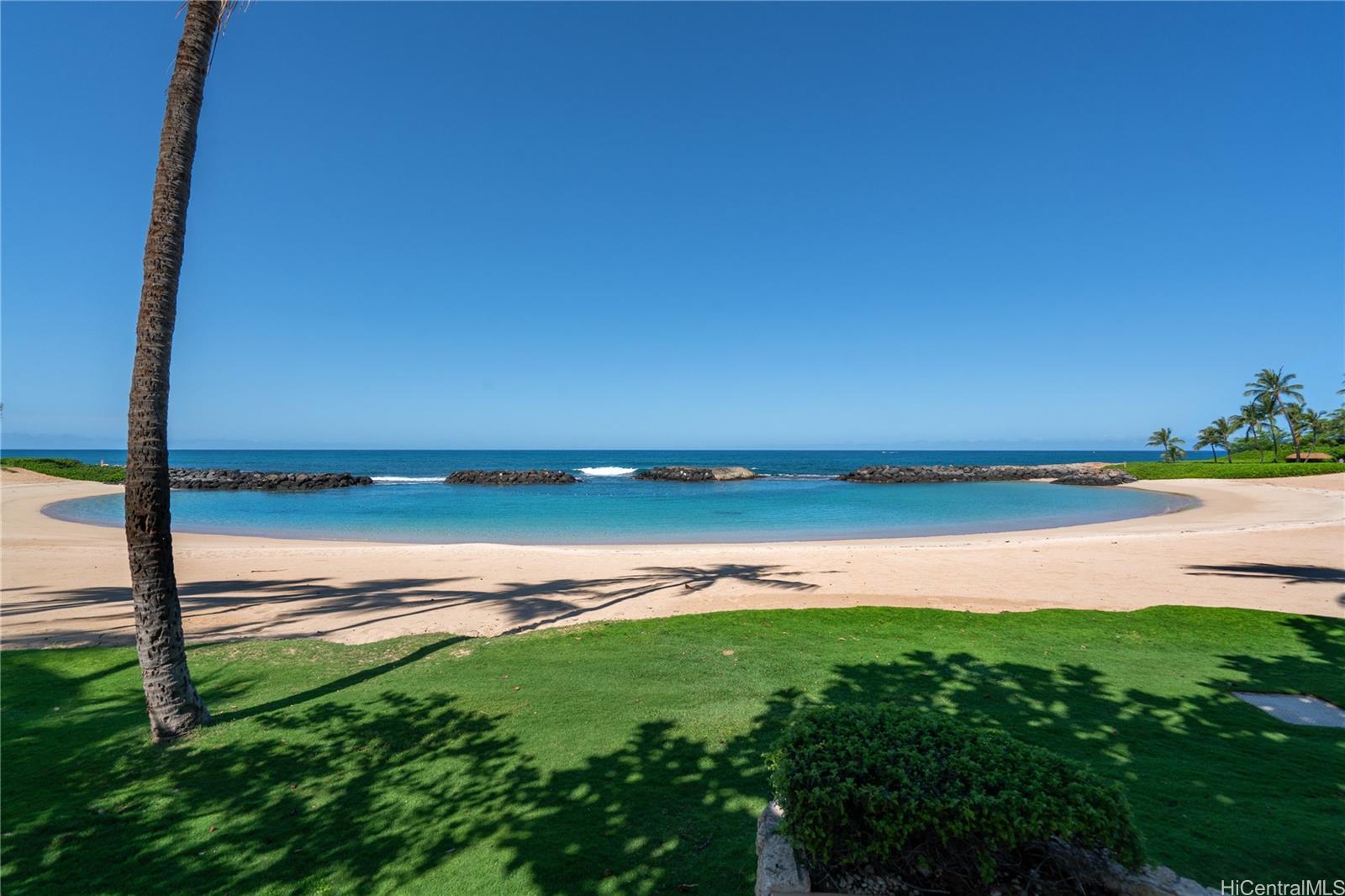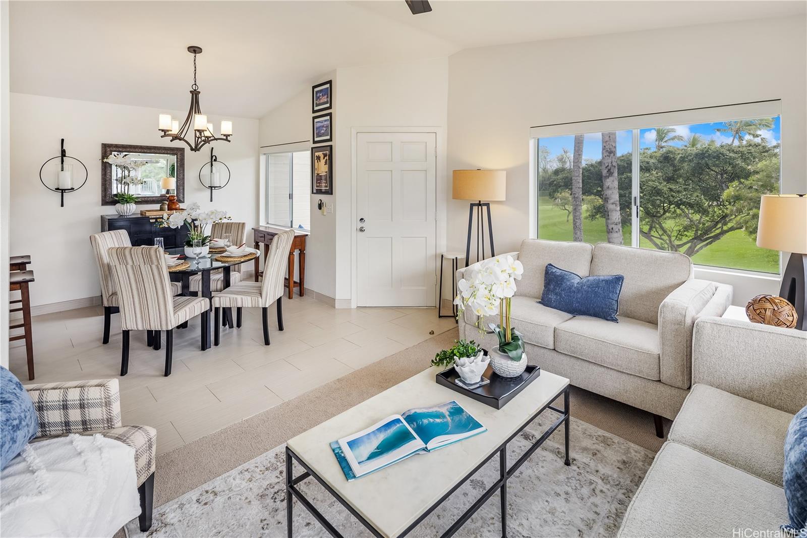 A wonderful golf course–front opportunity in Fairways at Ko Olina, this 2-bedroom, 2-bath residence stands apart for its position, privacy, and overall condition—an immediate advantage for buyers comparing inventory.Offered fully furnished and move-in ready, the home features an updated kitchen and bathrooms, upgraded flooring, remote-controlled blinds, split AC, a water softener, and fully owned PV panels to help reduce electricity costs. Vaulted ceilings and plenty of windows bring in natural light, while open golf course views create a calm, comfortable living environment.Positioned on a quiet cul-de-sac off the main drive, it offers a more private setting within the community. The residence sits above its own newly epoxy-coated 2-car garage and includes additional driveway parking.This residence includes membership to the Ko Olina Beach & Sports Club, providing access to beach parking, fitness facilities, tennis and pickleball courts, and additional resort amenities. Enjoy close proximity to the Ko Olina Golf Club, dining, luxury spas, and the resort’s iconic beach lagoons. OPEN HOUSE SUNDAY APRIL 19th 1-4PM