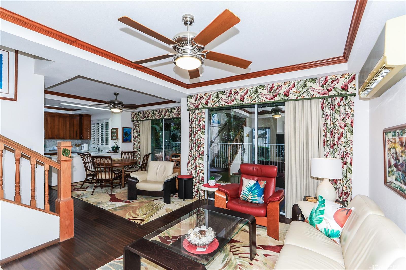 Discover your own secluded corner of paradise, perfectly positioned within the Ko Olina Resort! An open-concept living area, warm wood flooring throughout, elegantly furnished with plush, top-grain leather furniture, accented by elegant island decor. A cozy atmosphere is created with wood crown molding, designed for both style and functionality. The kitchen features modern, upgraded appliances and cabinetry— is fully equipped for gourmet cooking. Bathrooms boast spa-like walk-in showers with stylish tile work. The interior design blends a Hawaiian coastal charm with high-end designer furniture, local art, and a relaxing, comfortable, refined atmosphere. Just steps away from the pool, jacuzzi, BBQ and recreation area. As a resort homeowner, you have access to the Ko Olina Beach & Sports Club and special beach parking. Live the ultimate island lifestyle with pristine beach lagoons, access to the resort’s world class amenities, including golf, tennis, pickle ball, fitness center, restaurants, and more.This property is perfect for an effortless comfortable second home, or premier investment opportunity, fully furnished and turn-key.