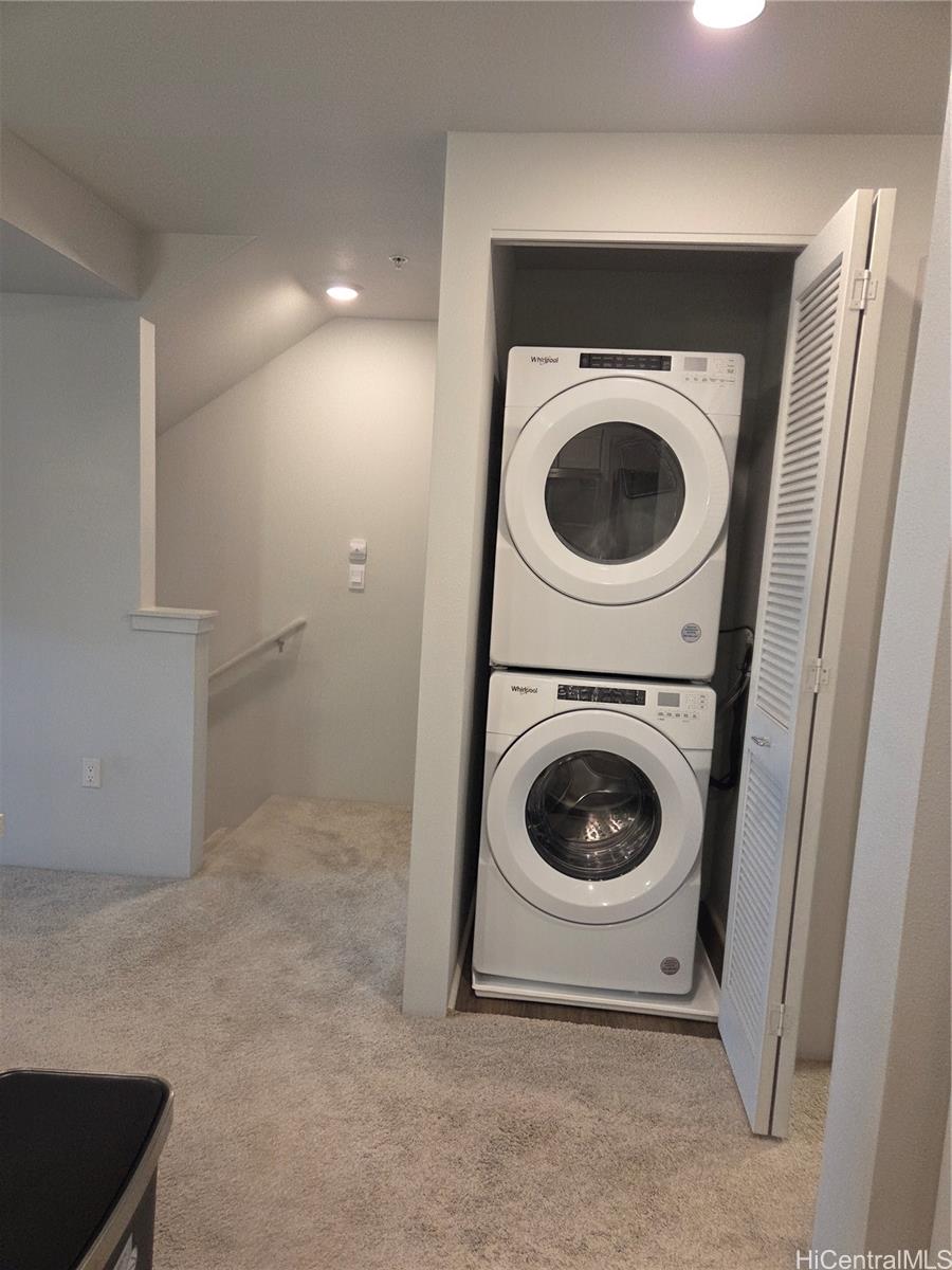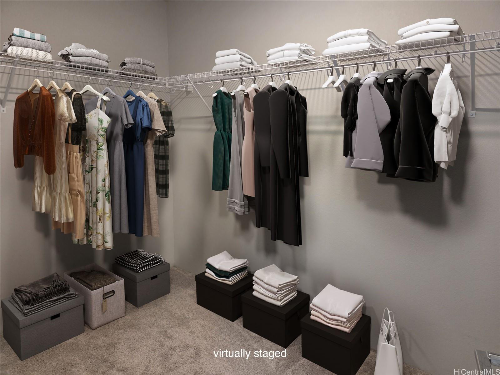 Welcome to Kohina at Ho’opili in the Ho’opili Master Planned Community. One of the larger floor plans with a spacious 1,283 sq ft living area, 2 bedrooms, 2 full baths and a half bath. The primary bedroom takes up the entire second floor, walk-in closets in both bedrooms, and a covered balcony. Includes split ACs, fire sprinklered complex, Mohawk carpeting-Swiss Alps. Vinyl PLank Pioneer Flooring-Gothem Grey, LG Hi-Mac kitchen and bath countertops, undermount single bowl kitchen sink. Whirlpool stainless steel range/oven, microwave, dishwasher, Whirlpool stainless steel refrigerator, and stacked washer/dryer. Restaurants, shopping at Ka Makana Ali’i Mall, theaters, schools/UH West Oahu, and the rail station. Soho Community Center with a community association pool, a dog park, tot lot, and near golf courses.