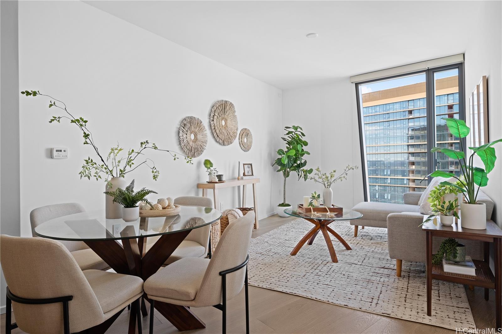 Experience elevated island living in Ko‘ula #3511, a luxurious residence in Honolulu’s vibrant planned community of Ward Village. Ko‘ula features a striking architectural design that maximizes natural light and views. This high-floor unit offers floor-to-ceiling windows and a large private lanai. The interior is finished with premium Miele appliances, custom cabinetry, and elegant natural materials that reflect refined island style. Residents enjoy world-class amenities such as a resort-style pool, spas, BBQ cabanas, indoor and outdoor fitness centers, private dinning areas, a grand lanai, sunset lounge, and even a place for your furry friend to run and play. Perfectly located beside Victoria Ward Park and moments from Ala Moana Shopping Center, beautiful beaches, Whole Foods, dining options galore, and boutique shopping, Ko‘ula offers a seamless blend of modern design, comfort, and convenience—an exceptional opportunity to enjoy the best of Honolulu.