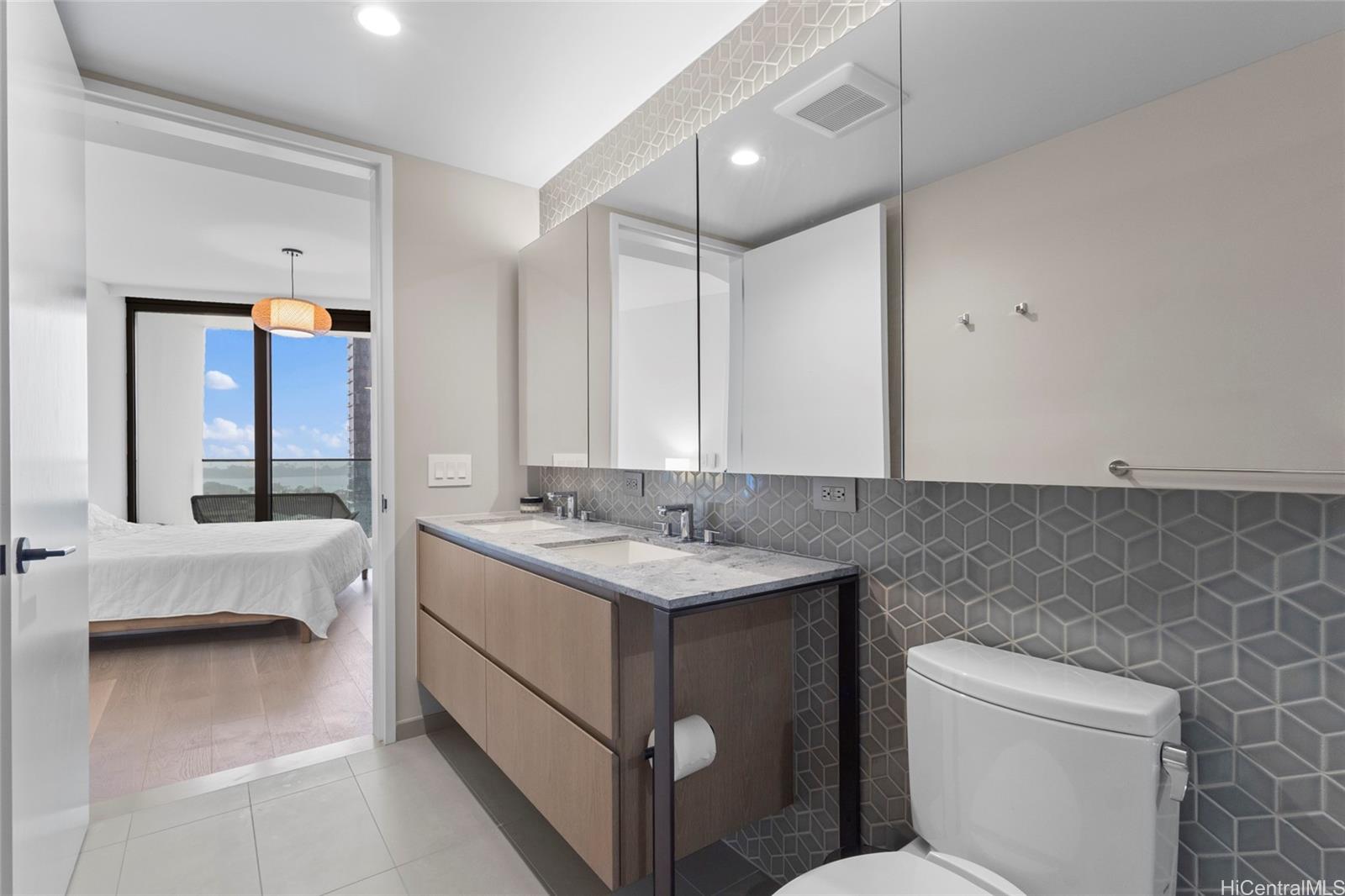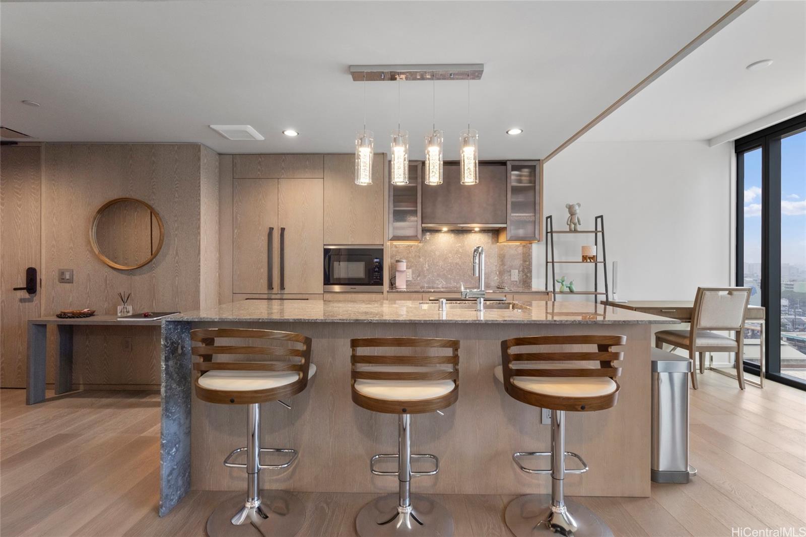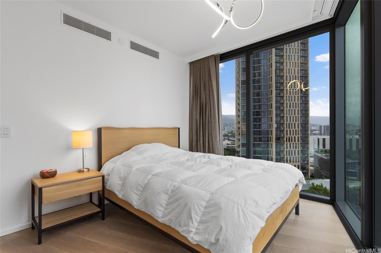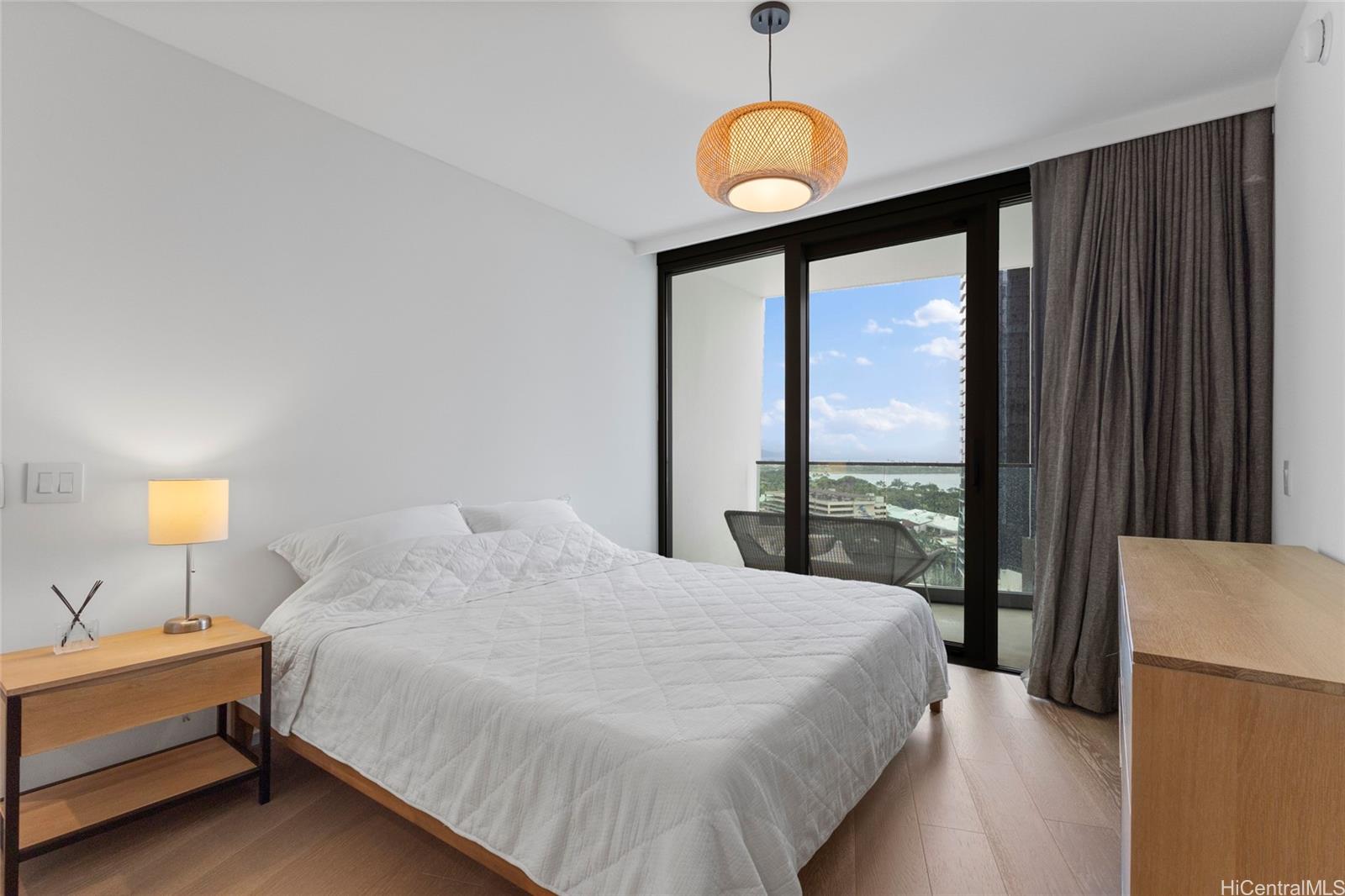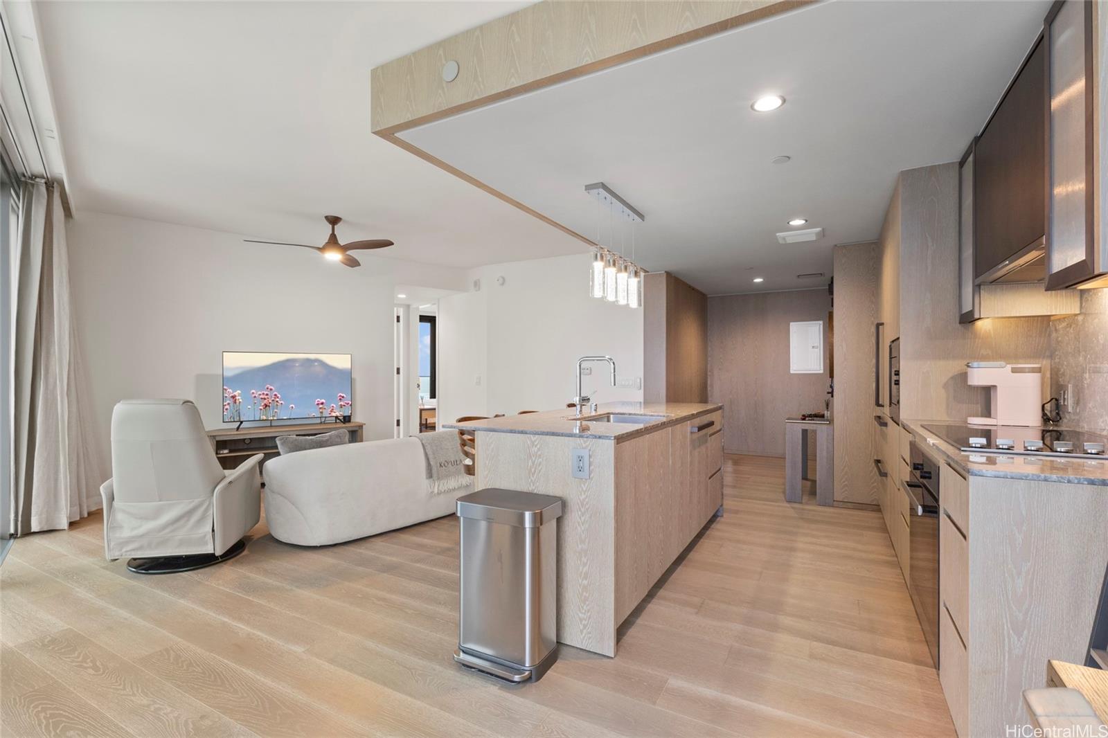 ワード・ビレッジの中心で、都会の洗練された雰囲気を存分にお楽しみください。 この2ベッドルーム、2バスルームの住居は、有機的なフォルムとモダンなラグジュアリーを融合させています。 高さ9フィートの優雅な天井と床から天井までの窓が、圧倒的な開放感を生み出し、ビクトリア・ワード・パークと太平洋の水平線を映し出す、まるで映画のような眺望を際立たせています。 室内には温かみのある無垢材のフローリングが敷かれ、ミレ社の高級家電一式、特注のキャビネット、洗練された石材のカウンタートップを備えた、グルメシェフ向けのキッチンが設けられています。 オープンコンセプトのレイアウトは、プライベートなラナイへとシームレスにつながり、静寂に包まれた安らぎの空間と、カカアコの活気あふれる街並みとを結びつける架け橋となっています。 居住者は、ラッププール、2つのジャグジー、最新設備を備えたフィットネス施設、そして広々とした社交ラウンジなど、世界水準のリゾートスタイルの設備を満喫できます。 ホノルルで最も歩きやすいエリアに絶好のロケーションを誇り、旗艦店のホールフーズや高級レストラン、アラモアナ・ビーチ・パークまで徒歩圏内です。 クーラは、建築の素晴らしさと島ののんびりとした雰囲気が見事に調和した場所です。 今すぐプライベート内覧をご予約ください!