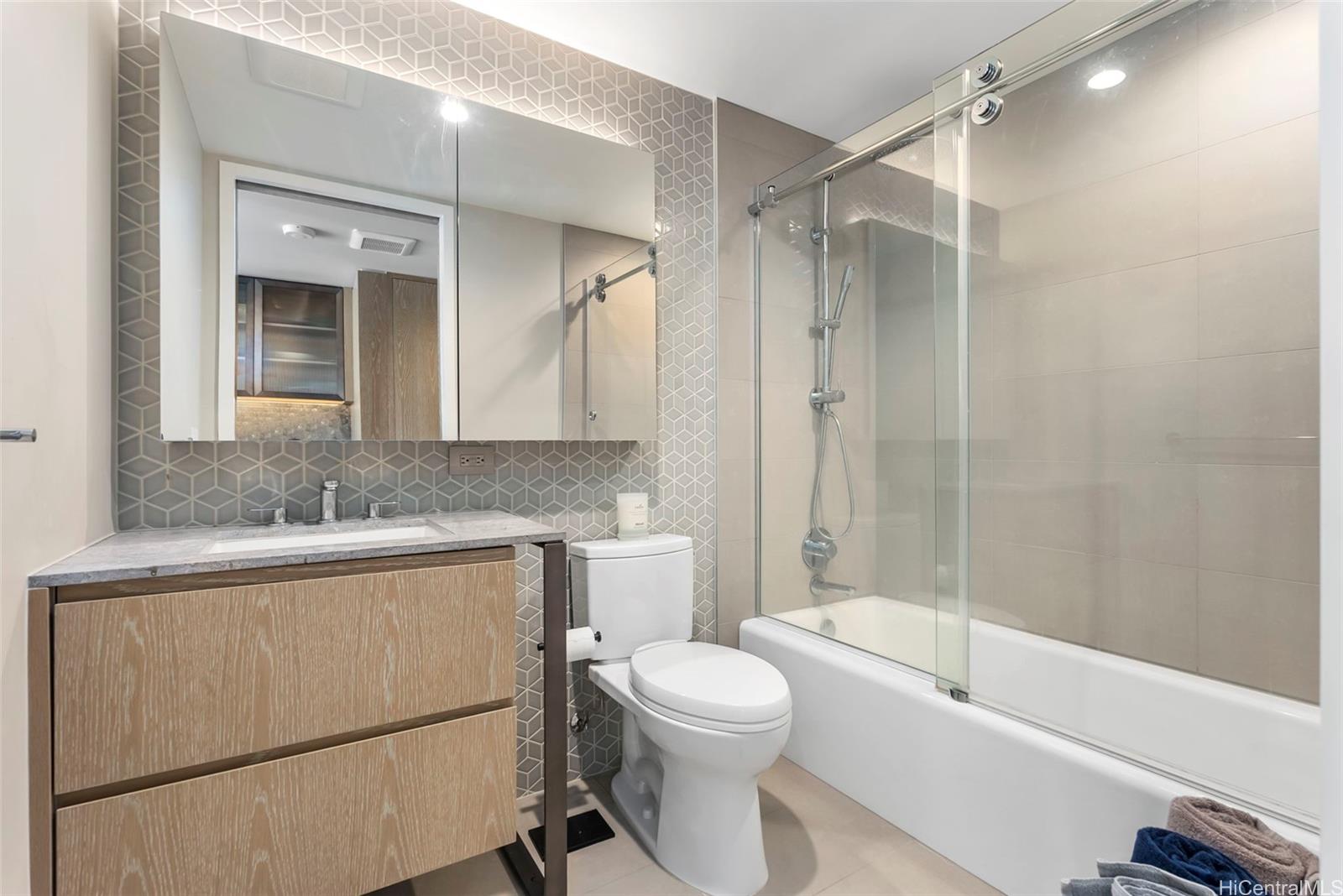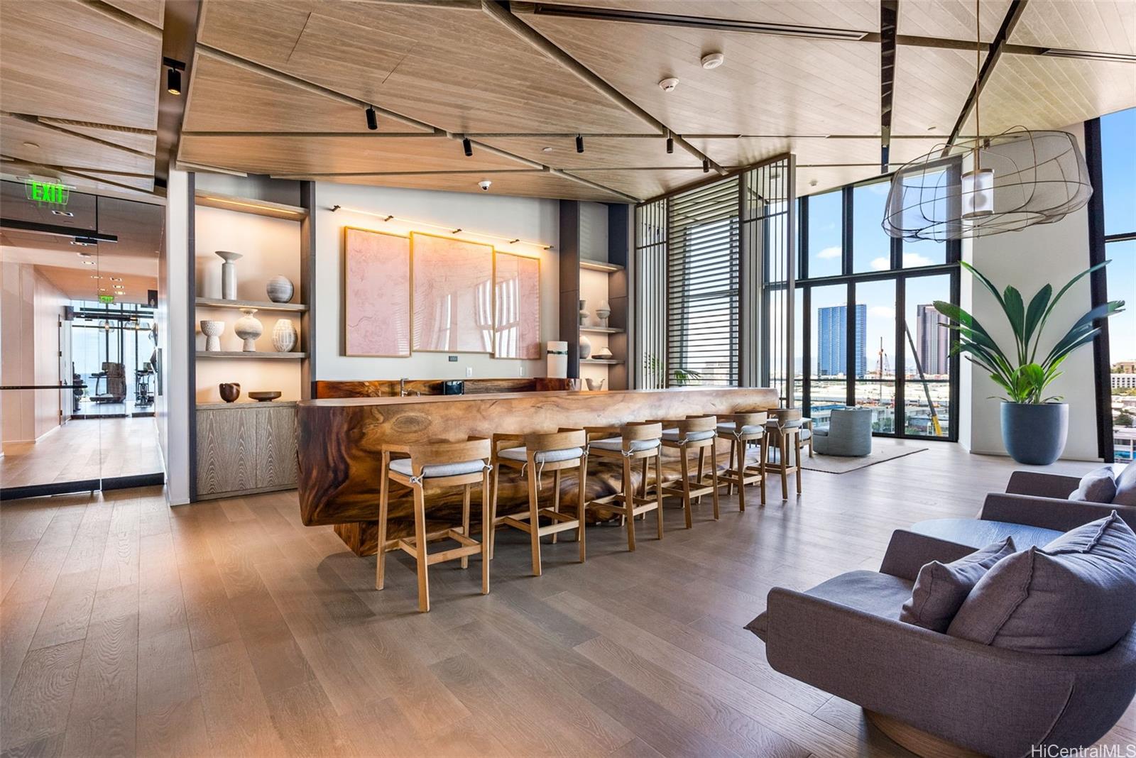 Experience luxury and convenience with this modern studio unit at Ko’ula featuring natural stone countertops, Miele appliances, custom cabinetry, beautiful hardwood floors, 9 foot+ ceilings, floor to ceiling windows, a Juliet balcony, and Miele washer & dryer in unit! Located on the cooler side of the building with natural light, custom pull down blinds, and a convenient full sized parking stall located on the same floor as unit (no elevators needed to get to unit)! Ko’ula’s resort style amenities include an expansive lap pool, 2 jacuzzis, sauna rooms, bbq pavilions, indoor/outdoor entertainment rooms with full kitchens, indoor/outdoor fitness areas, multiple guest suites for visiting family and friends, grand lanai with lounge seating and billiards table, playground, 24-hr security and more! Building is VA approved and is FULLY insured! The Ward Village ecosystem provides ultimate convenience including Ward Theater, Victoria Ward Park, Kaka’ako farmers market, award winning restaurants, bars, shops, and close to the beach. Must be willing to take on current lease which ends mid-July 2026. Current rent is $2,850/month. 1 photo has been virtually staged(enhanced).