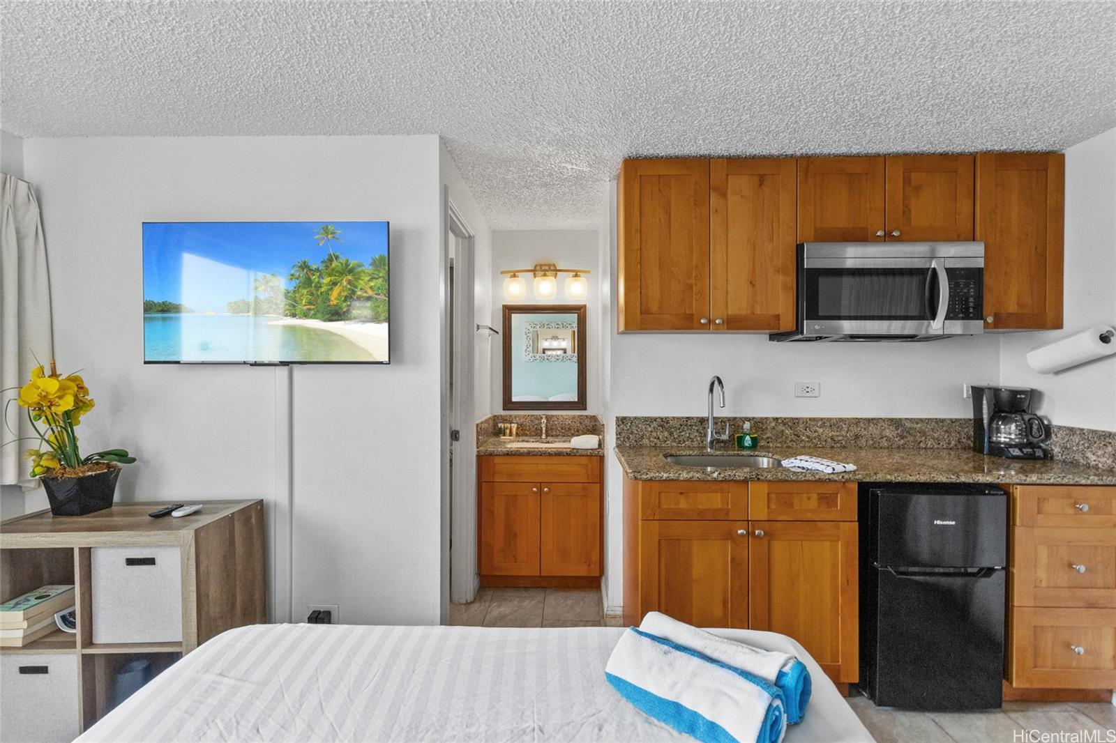 Just 2 blocks from the beach, this stylish and well-appointed condo in Waikiki offers the perfect blend of comfort, convenience, and island charm. Step inside to discover a thoughtfully designed space. The open layout flows seamlessly into a cozy living area, while large windows and a private lanai invite in natural light and tropical breezes.The prime location puts you within close distance to world-class dining, shopping, entertainment, and the famed Honolulu coastline. Whether as a full-time residence, vacation retreat, or investment property, this Waikiki gem offers comfortable island living in a coveted neighborhood.Don’t miss the chance to own a slice of paradise in one of Oahu’s most desirable locations.The building offers secure entry, a resident manager, and night security, giving you peace of mind while you earn or relax. This is a Leasehold property.
