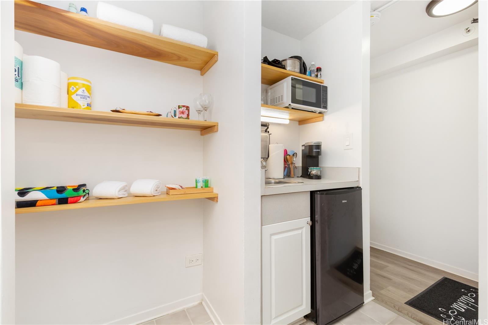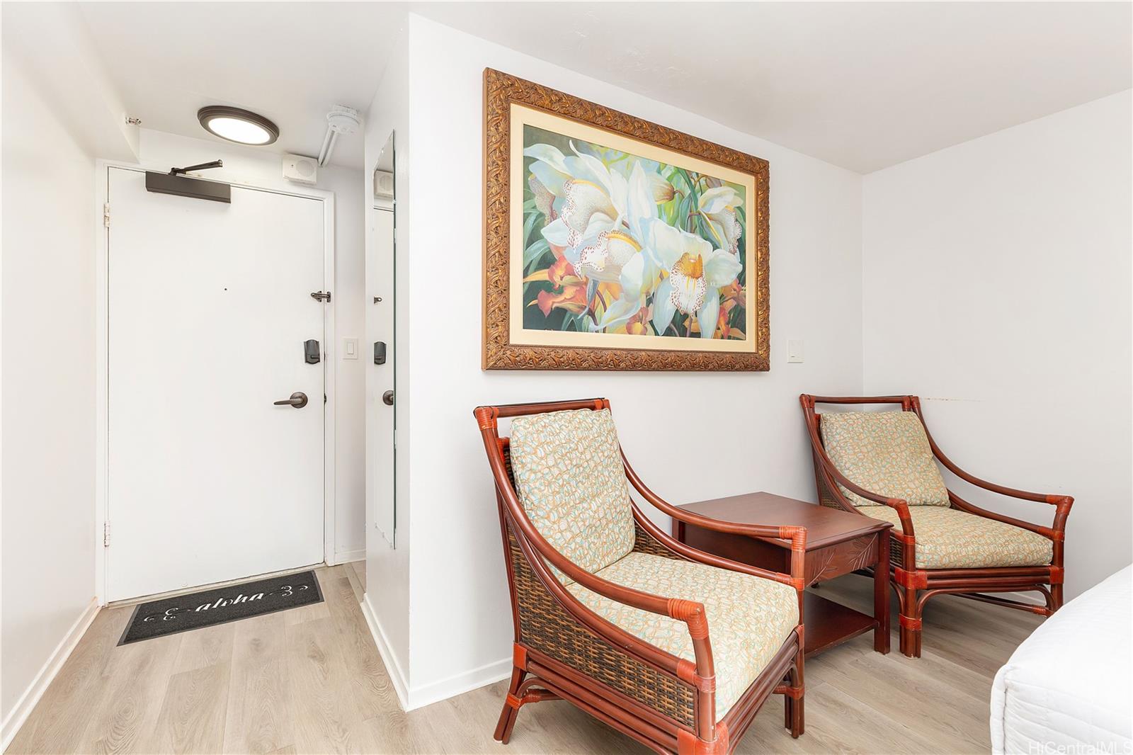 Located in Waikiki’s vibrant resort zone, this fully furnished studio in Kuhio Village II is a legal short-term rental, ideal for investors or as a personal getaway with rental income potential. Positioned within close proximity to Waikiki Beach, shops, restaurants, and entertainment, this unit offers unbeatable convenience in a high-demand location. The is a leasehold property with the lease extending through 2033. The maintenance fee covers cable TV, electricity, hot water, sewer, and common area upkeep, making it easy to manage as a rental or vacation home. The building features paid parking available in the basement, on-site security with night patrols, and is surrounded by everything Waikiki has to offer.