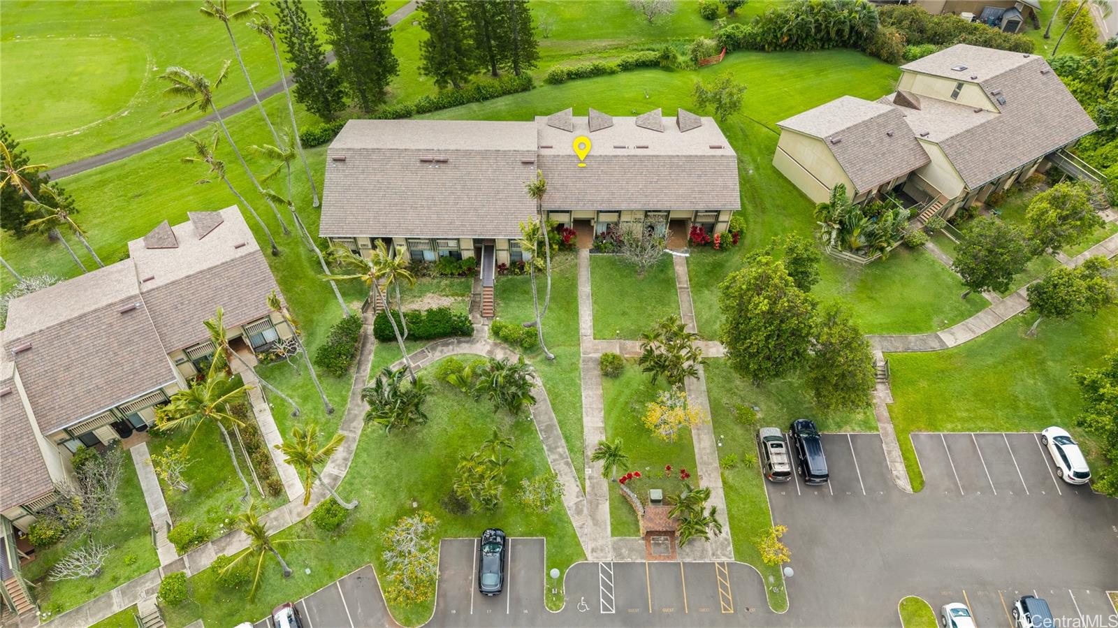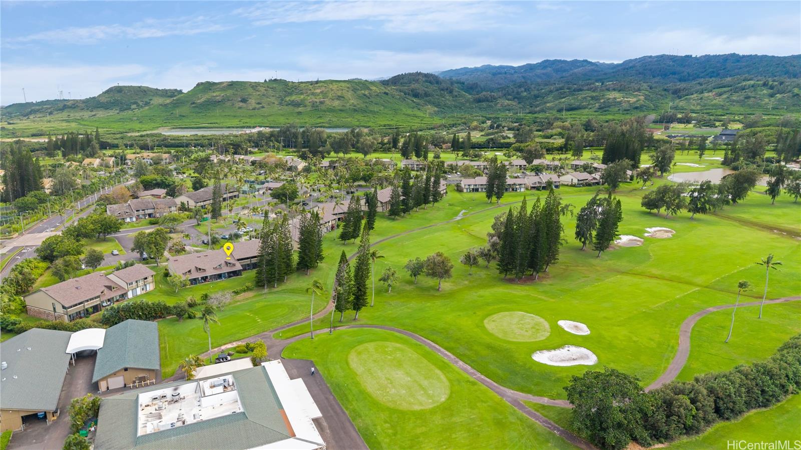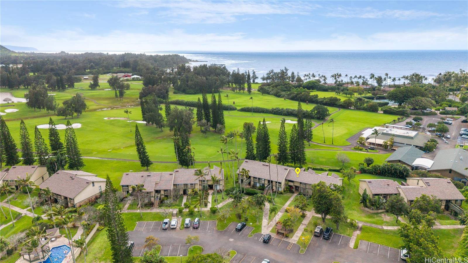 Highly desired ground floor unit and legal short-term rental in Kuilima Estates West at Turtle Bay on O?ahu’s North Shore. Ideally positioned on the 1st tee of the Fazio Course and just steps from the clubhouse, this 2-bedroom, 2-bath + loft home offers premier golf course frontage with beautiful views. The screened lanai enhances the indoor-outdoor island living. The well-maintained interior features tile flooring throughout, granite countertops, updated appliances, window A/C units in both bedrooms, ceiling fans, and a full-size washer and dryer. The flexible floor plan accommodates up to six guests with one king bed and four twin beds, offering versatility for personal use or short-term rental occupancy.Enjoy access to multiple swimming pools, BBQ areas, tennis, pickleball, and basketball courts, championship golf courses, and nearby beach access within the world-renowned Turtle Bay resort community. Whether used as a vacation retreat, second home, or legal short-term rental, this property offers the opportunity to experience the best of North Shore living.