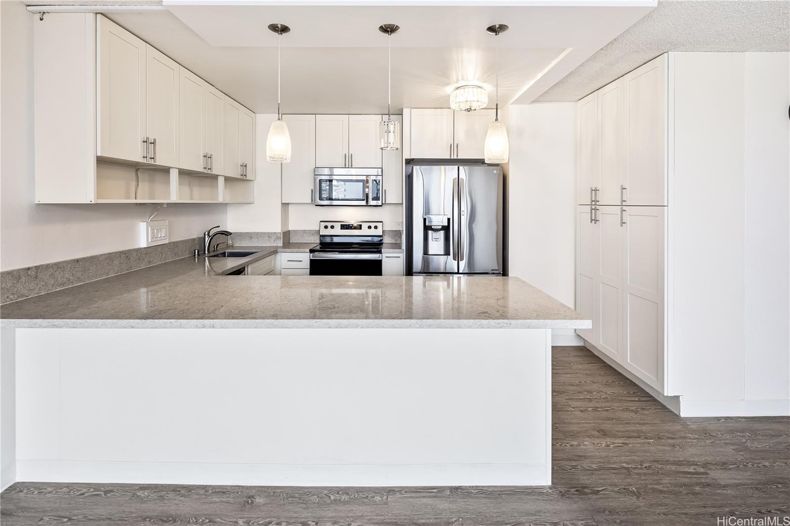 ユニット3115 – ククイプラザ内ダイヤモンドヘッドタワー人気のダイヤモンドヘッドタワー内、ククイプラザに所在する高層階の角部屋ユニット。めったに出回らない希少物件です。 この好立地の住居は、街の向こうまで広がるパノラマビューを捉え、優れた自然光と共に高みにある都会的な生活体験を提供します。 モダンな改装が施された当物件は、清潔で現代的な美観を特徴とし、室内洗濯機・乾燥機の利便性が加わっています。 ククイ・プラザは24時間警備体制とセキュアな駐車場を備えた安全な建物であり、ホノルル中心部で安心を提供します。 居住者はリゾートスタイルの設備を享受でき、美しく造園された庭園デッキ(散策路付き)、プール、娯楽用パビリオンなどが備わっています。 街の中心にあるあなたのプライベートオアシス!複数のバス路線へのアクセスが容易な中心部に位置し、ダウンタウンとチャイナタウンの中心部まで徒歩圏内。この高層階の角部屋は、ホノルルで最も確立されたコミュニティの一つにおいて、快適さ、安全性、そしてパノラマビューを求める買い手にとって稀な機会を提供します。 .