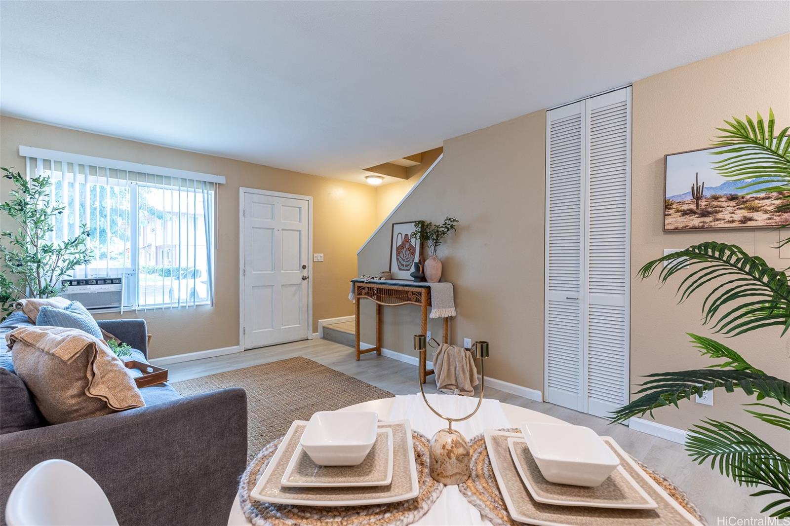 Don’t miss out on this beautiful, move-in ready Kapolei home! Enjoy upgrades such as new fresh interior paint, new vinyl wood flooring, quartz kitchen bar top, and more. Kitchen is equipped with a brand new stainless steel refrigerator and dishwasher, plus an in-unit washer and dryer. Stay cool with window AC units in the living room and both bedrooms. Centrally located near schools, Kapolei Commons, Ka Makana Ali‘i, Ko Olina, and more. A short drive to Schofield Barracks and Wheeler Airfield. A great location and an even better value!
