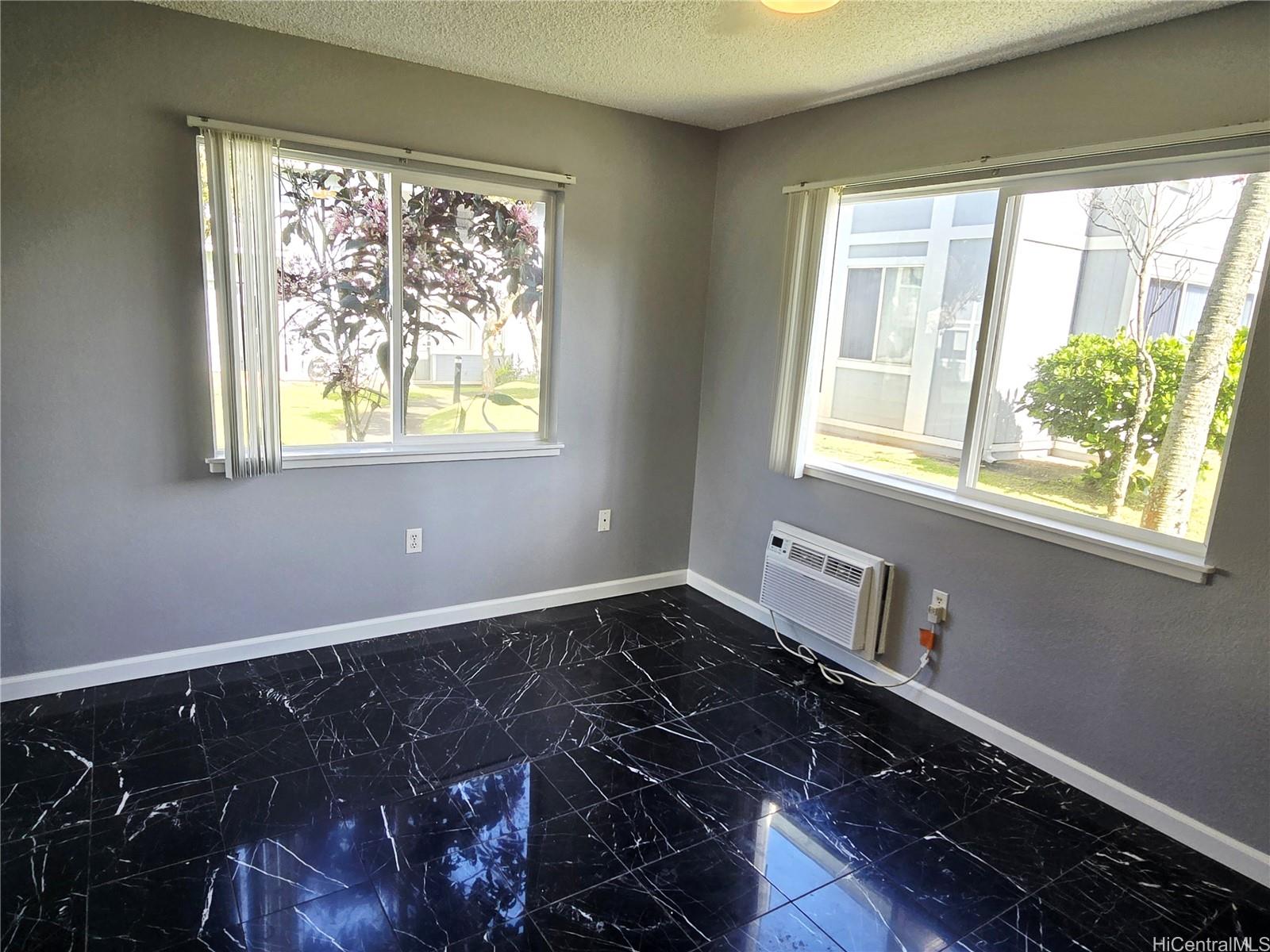 Rarely available 1-bedroom, 1-bath Kumelewai Gardens unit. All interior painted and reglazed bathtub unit! Beautifullypainted unit in the sought-after Mililani community. Well-maintained unit with granite flooring throughout, making floor cleaning very easy. The unit is near schools and Mililani Town Center, and within walking distance of Long’s CVS, McDonald’s, Starbucks, and otherrestaurants. Also, amenities include a pool, BBQ areas, and tropical landscaping.