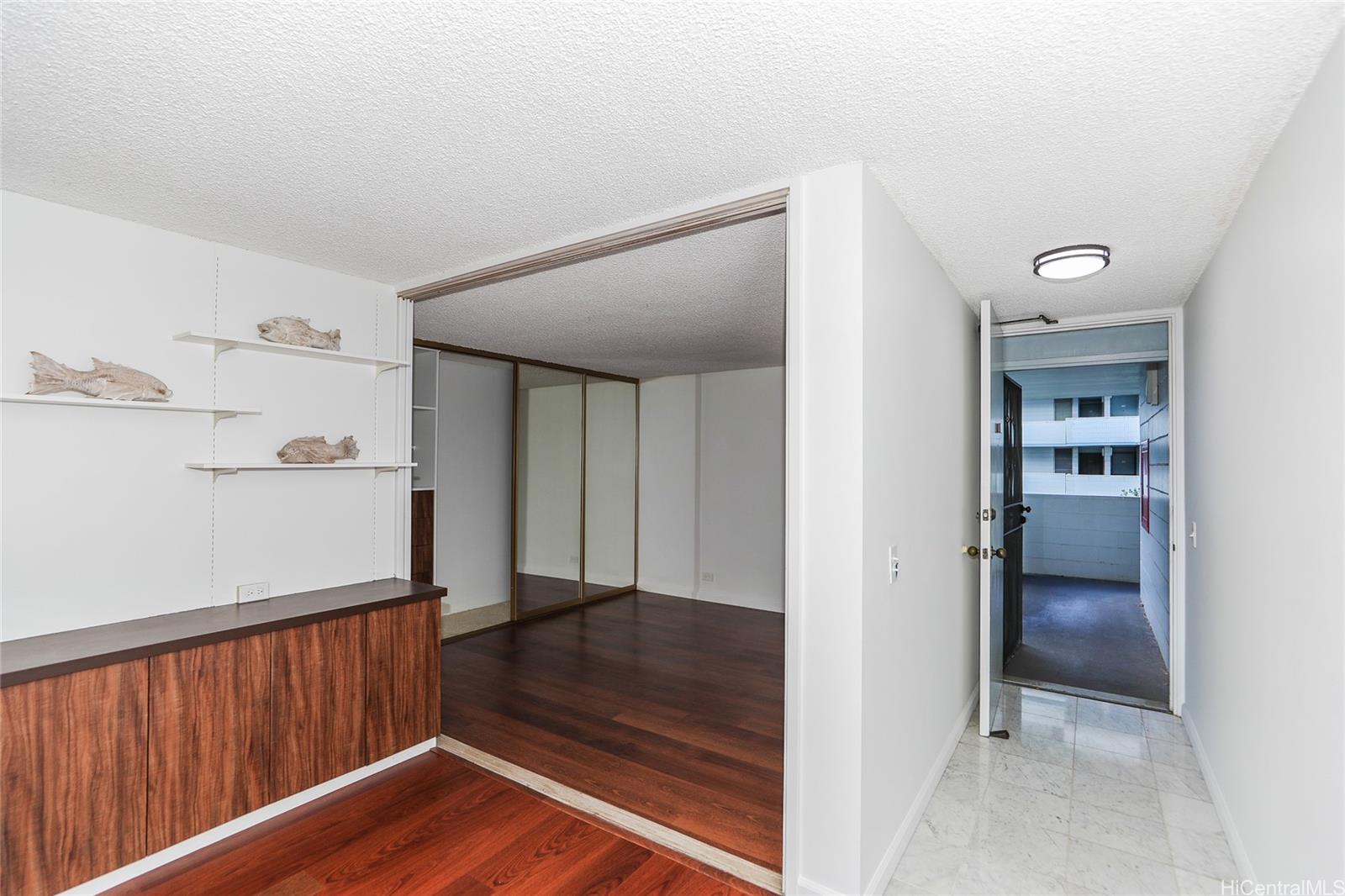 静かな場所にひっそりと佇む 自然光がたっぷり差し込むこの住戸は、リビング、キッチン、寝室エリアをつなぐオープンレイアウトが特徴です。 大きな引き戸を開けると、シャッター付きのラナイへと続きます。鯉の池と歴史あるクナワイ・スプリングスの静かな景色を楽しむのに理想的な空間です。この泉は、古代ハワイアンによって癒しの場と見なされていました。 レイアウトは柔軟性があり、引き戸で寝室を簡単に仕切れるため、プライバシーを確保できます。 その他の主な特徴として、造り付け棚、新しい積み重ね可能な洗濯機・乾燥機、ゲート付きガレージ内の専用駐車スペース1台分が挙げられます。 敷地内にはプール、バーベキューエリア、休憩スペース、鯉の池などの設備が整い、道路を挟んだ向かい側にはバスケットコートとジャングルジムを備えた近隣公園があります。 ホノルル中心部、ショッピング、飲食店、ビーチ、公園、交通機関に便利な立地です。 初めての購入者、投資家、あるいは静かな住まいを求める方に最適です。 排水、廃棄、 .