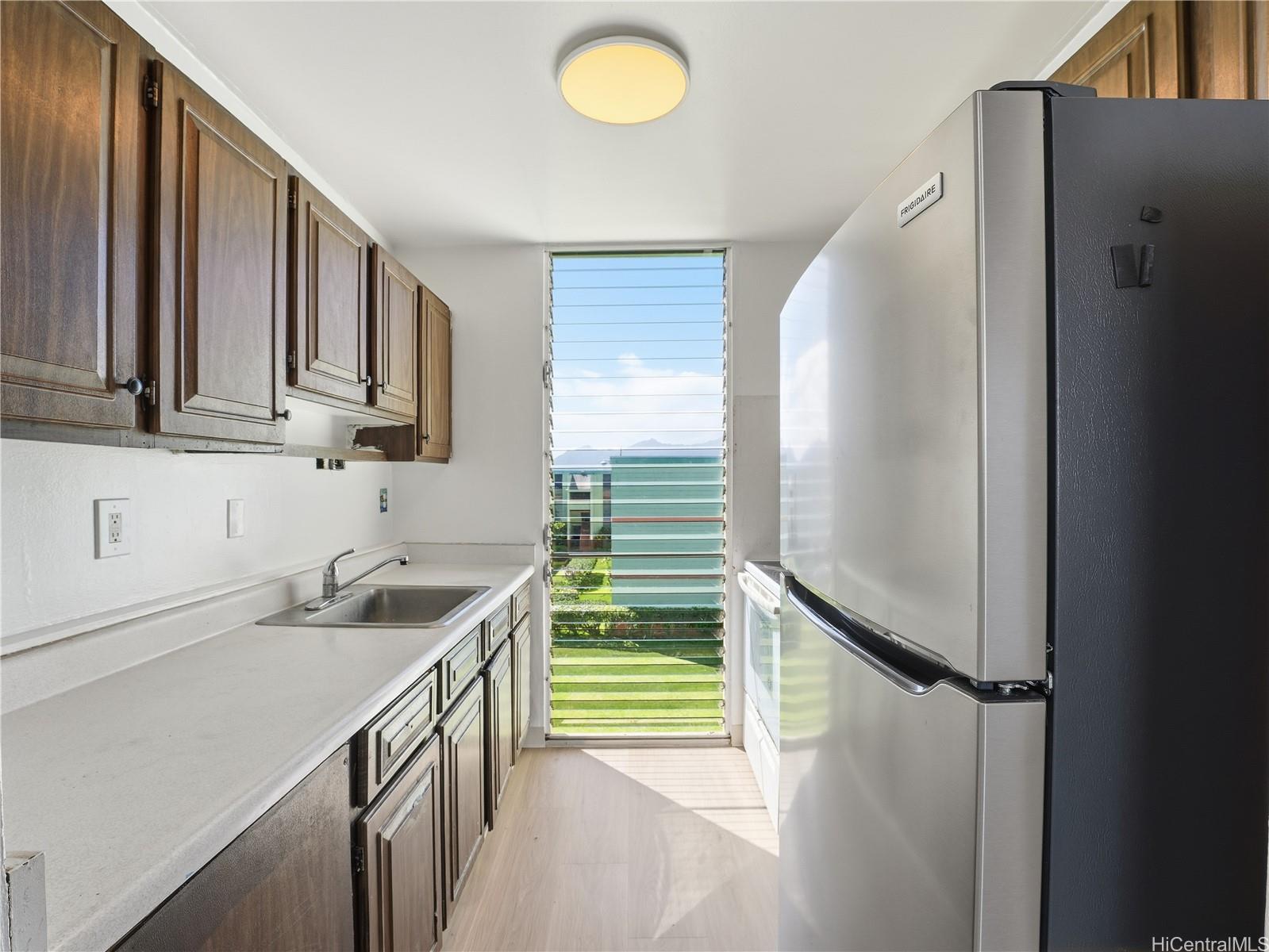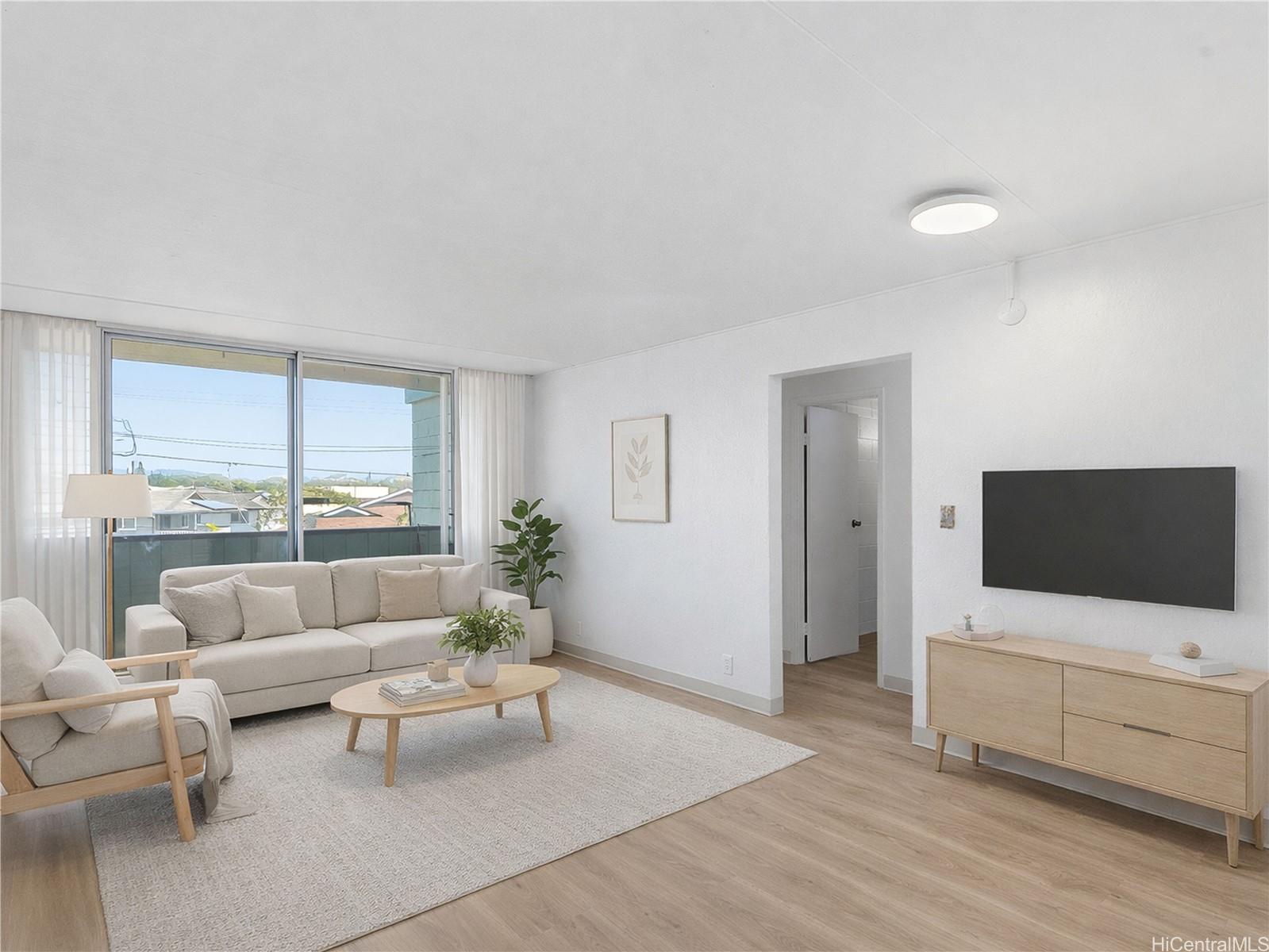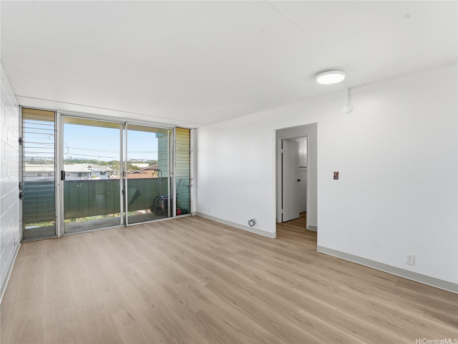 Welcome home to this beautifully refreshed 2-bedroom, 1-bath condo in the heart of Wahiawa. Featuring fresh interior paint and durable vinyl plank flooring throughout, this move-in-ready unit offers a clean, modern feel with low-maintenance living.Located on the third-floor corner, this unit enjoys excellent cross-breezes and added privacy, creating a comfortable island lifestyle without the need to rely heavily on AC. Natural light fills the space, and the thoughtful layout makes the most of every square foot.Ideal for those looking to be near Schofield Barracks and Wheeler Army Airfield, this central location offers convenient access to work, shopping, dining, and the North Shore beaches. Whether you’re a first-time buyer, investor, or looking to downsize, this condo offers comfort, convenience, and value.Complete with one assigned parking stall, this is an excellent opportunity to own in a well-located community in Central Oahu.