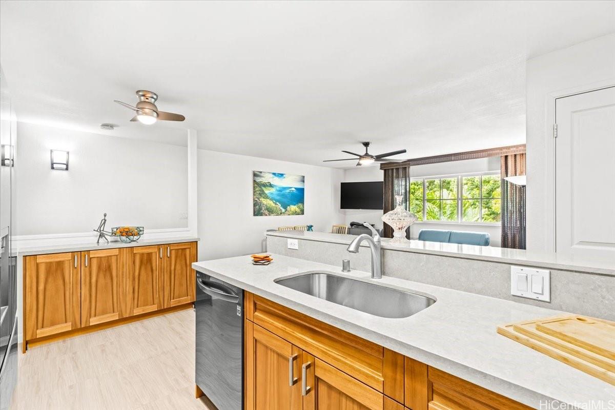 Rarely available, your immaculately maintained home has been renovated with new flooring, kitchen counters, cabinets and appliances. Custom window coverings throughout the home. You will love the sanctuary of this 2-bedroom, 2 bath home. It sits directly across from the pool and Crow’s Nest meeting room with a clear view of Koko Head crater. Complete with WD and an enclosed garage. Shopping, dining and schools are all within a 10-minute drive as well as the amazing beaches and Hanauma Bay just around the corner. Don’t miss your chance to own in the much-desired community of Lalea! It’s time to come home.