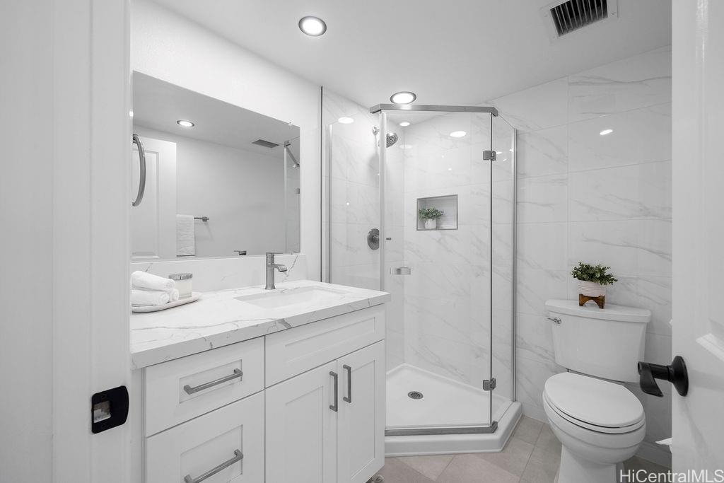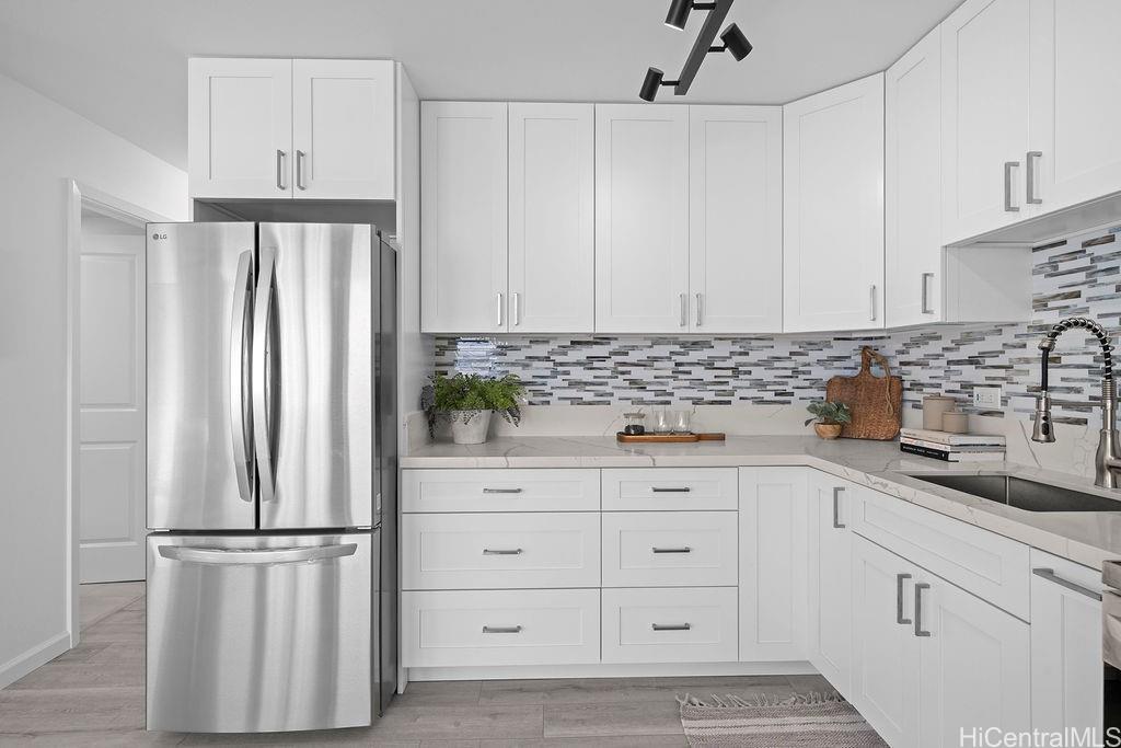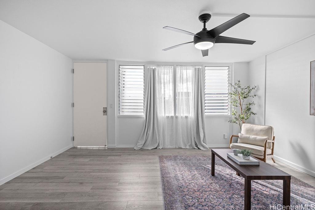 Welcome to Leolua Regent with a beautifully renovated 2 bedroom, 1 bath residence with 1 assigned parking stall. This unit is completely move-in ready and was fully renovated in 2026, thoughtfully updated with modern finishes throughout.Upgrades include brand new vinyl plank flooring, fresh interior paint, new kitchen and bathroom cabinets, updated countertops, new stand up shower, and all new appliances; creating a clean, contemporary feel that is truly turnkey and ready for its next owner. The efficient layout is designed to maximize space and functionality, and the interior feels larger than its square footage suggests.Abundant natural light fills the home with refreshing cross-breezes that flow through the unit, enhancing everyday comfort. One assigned parking stall is included and additional street parking.Conveniently located with easy access to major freeway connections, shopping centers, dining, and a variety of everyday amenities. Whether you are looking for a primary residence or investment opportunity this updated unit offers both comfort and accessibility.