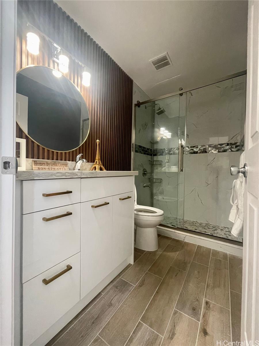 SELLER OFFERING $3000 Seller Credit to buyer at closing for buyer use towards closing costs. Seller is also offering to cover assessment fee till end of December 2026. Rarely available GROUND FLOOR unit with 10-ft ceilings in Leolua Regent! This fully renovated turn-key 2-bedroom, 1-bath condo with 1 assigned parking stall features luxury vinyl plank flooring, fresh paint, quartz countertops, European-style self-closing cabinets, floor-to-ceiling bathroom tile, sliding glass shower door, mirrored closet doors, ceiling fans, and brand-new stainless steel appliances. Conveniently located near Seafood City, Waipahu Shopping Center, the Post office, and freeway access. Parking stall is close to the unit with ample street parking available. Move-in ready and fully renovated, this home also offers access to community amenities including a sparkling swimming pool and laundry facilities. Maintenance fee of $684.98/month includes electricity, water, hot water, and common area maintenance. Temporary assessment began September 2024 and is payable for 10 years. Seller is strictly selling “AS IS” but this is a true gem in a prime location – schedule your private showing today!