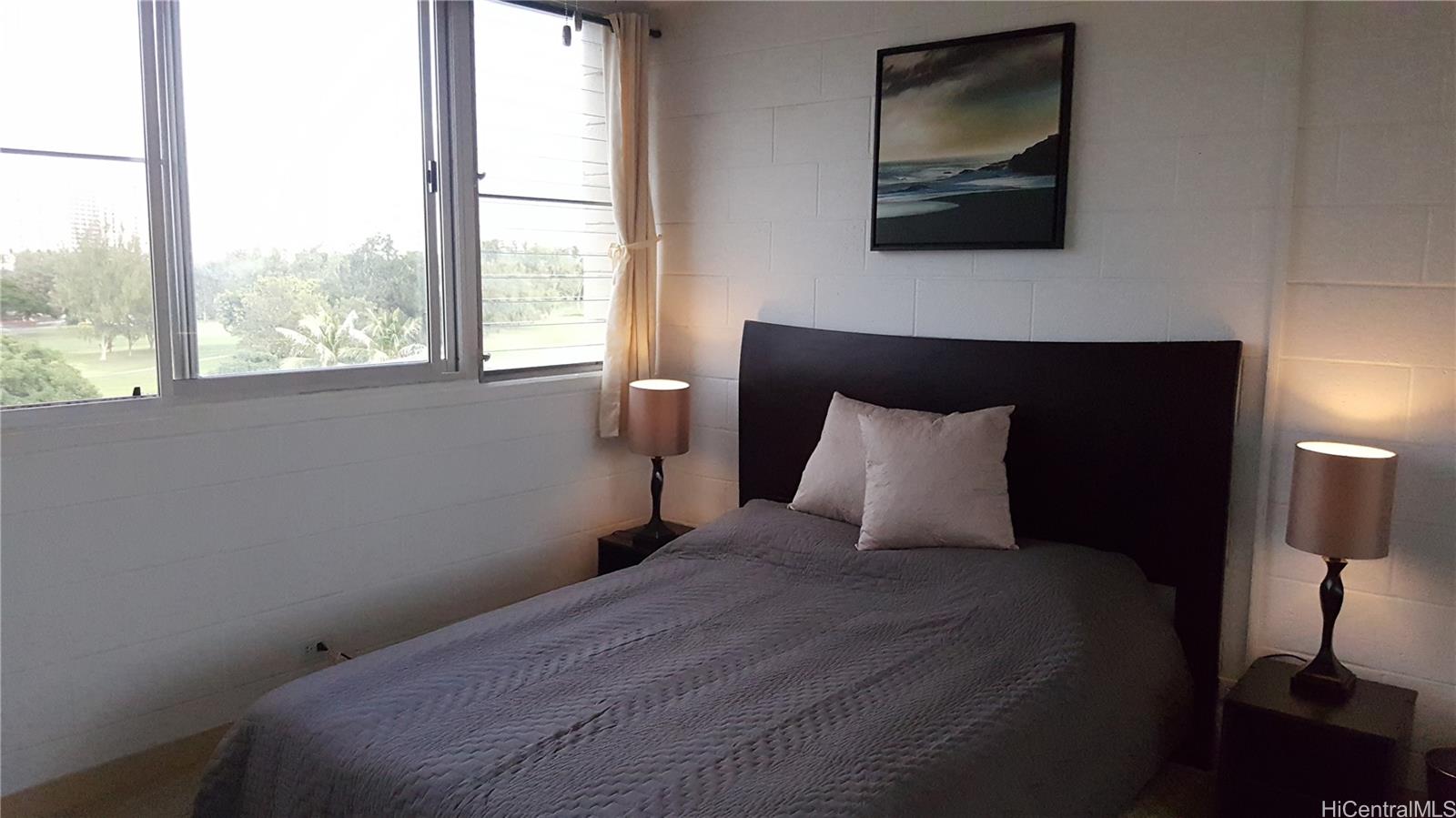 A Secure, well-managed building: this large stunning golf course view 1bd has just about the lowest price 1 bd in all of Honolulu (state’s assessed value:$326,800). A nice design with windows on both sides to allow cool trade winds to flow in. Buyer option: Seller may offer financing, no need for the bank. Note: major renewal building repairs are already accounted for in the Maintenance fee (HOA). Recently updated cabinets, counter & tile, paint, bath in nice condition. Feel secure using the saltwater pool, BBQ area, rec room, & on-site resident manager. Conveniently located with short walk to Salt Lake shopping center, Minutes away from Pearl Harbor, Tripler & Kaiser hospitals, airport, schools, Target, etc. Bonus: HOA fees incl elect, water, hot water, basic cable, and internet—a rare find in Honolulu! Don’t miss this opportunity for an affordable, home in prime location.