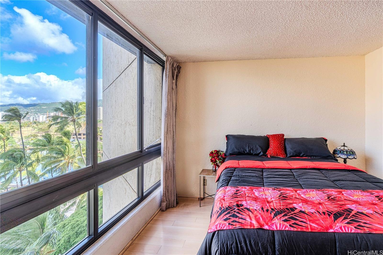 Live the ultimate Waikiki lifestyle in this beautifully furnished 1-bedroom, 1-bath condo in the desirable King Tower at Liliuokalani Gardens, boasting stunning views of the canal, mountains, and golf course! Enjoy resort-style living with top-notch amenities including a sparkling pool, soothing whirlpool, BBQ areas, tennis court, party room, and on-site resident manager. Maintenance fees conveniently cover water, hot water, and basic cable, while parking is available for lease through the AOAO for only $280 per year or $180 per quarter. Perfect for first-time buyers, investors, or those seeking a serene island retreat—this turnkey gem is ready for you to move in and start enjoying paradise today
