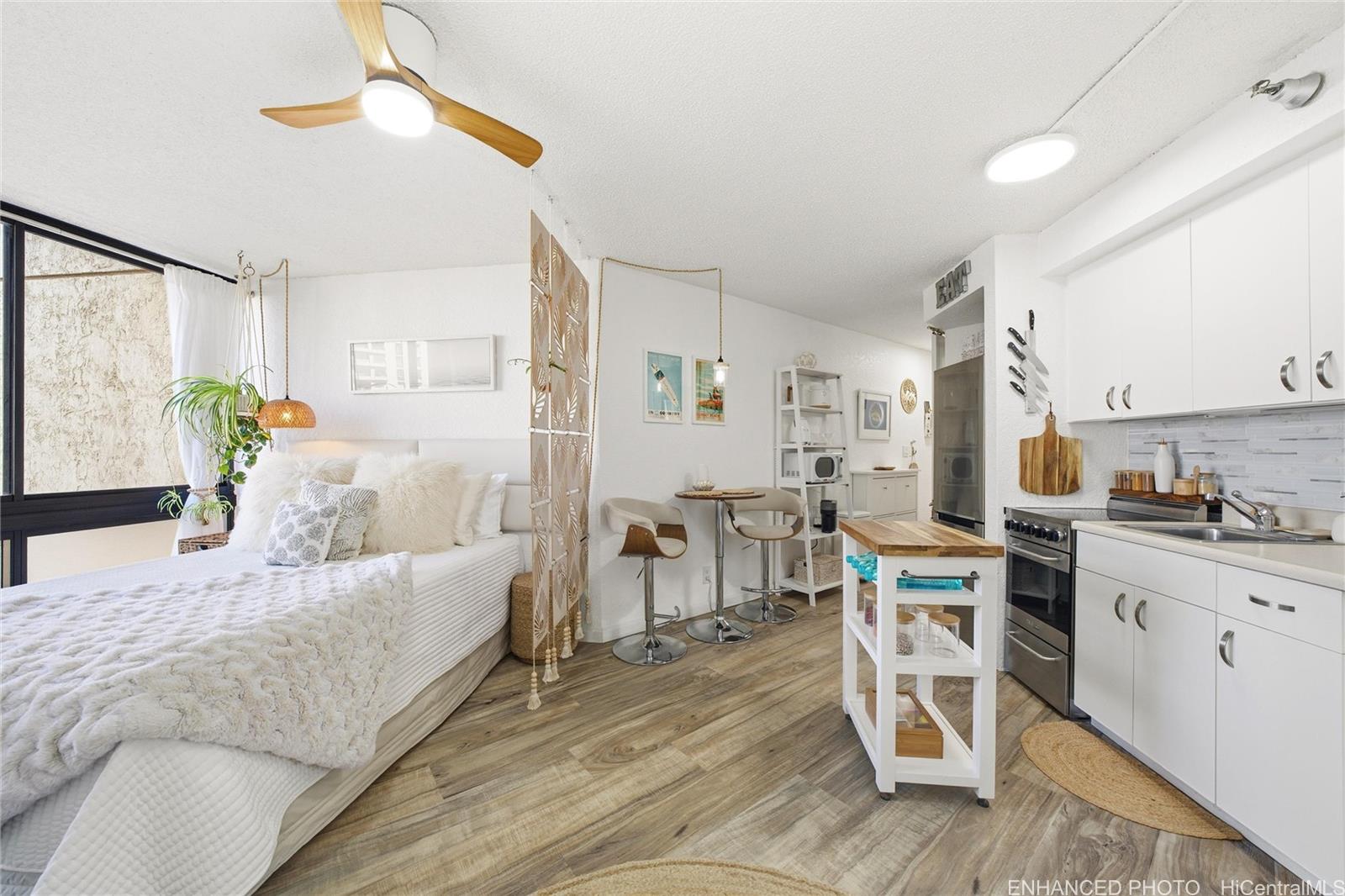 リリウオカラニ・ガーデンズ内のキングタワーに位置する、明るく開放感あふれる効率的な間取りを追求した、配慮の行き届いたアップグレード済みスタジオ。 装飾的な小道に囲まれた壮大な円形ドライブウェイと、洗練されたリゾートのような雰囲気を醸し出す豊かな熱帯植物の景観が、帰宅するあなたを迎えます。 室内には大きな窓が設けられ、山や街並み、庭園の景色とともに豊かな自然光を取り込み、中央空調が一年中快適な環境を提供します。 広々としたプール、ジャグジー、レクリエーションエリア、テニスコートなど、豪華なリゾートスタイルのアメニティをお楽しみください。 ダイヤモンドヘッドの近く、ワイキキの魅力をすべて満喫できる理想的なロケーション。 この家具付きコンドミニアムは、初めての購入者や投資家、あるいは楽園の一片を楽しむセカンドホームとして最適です。 完全所有権付きで335,000ドルにて提供。 (1枚以上の写真が補正されています)。