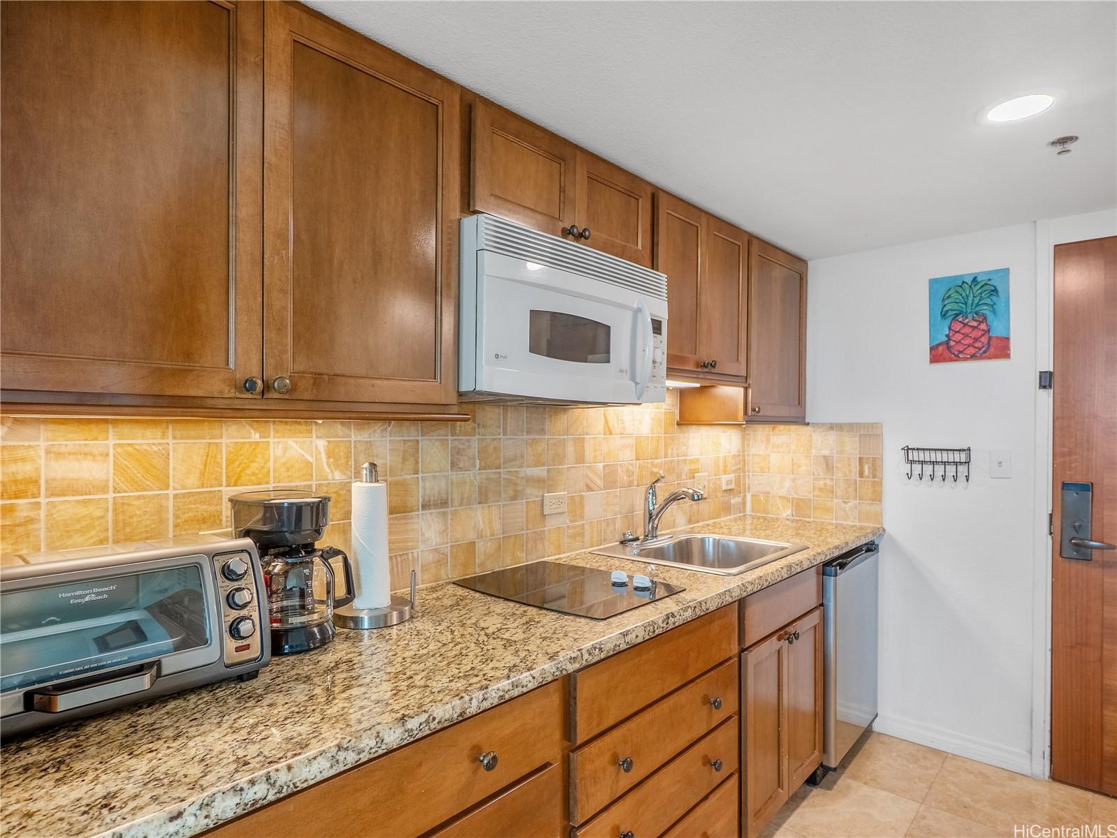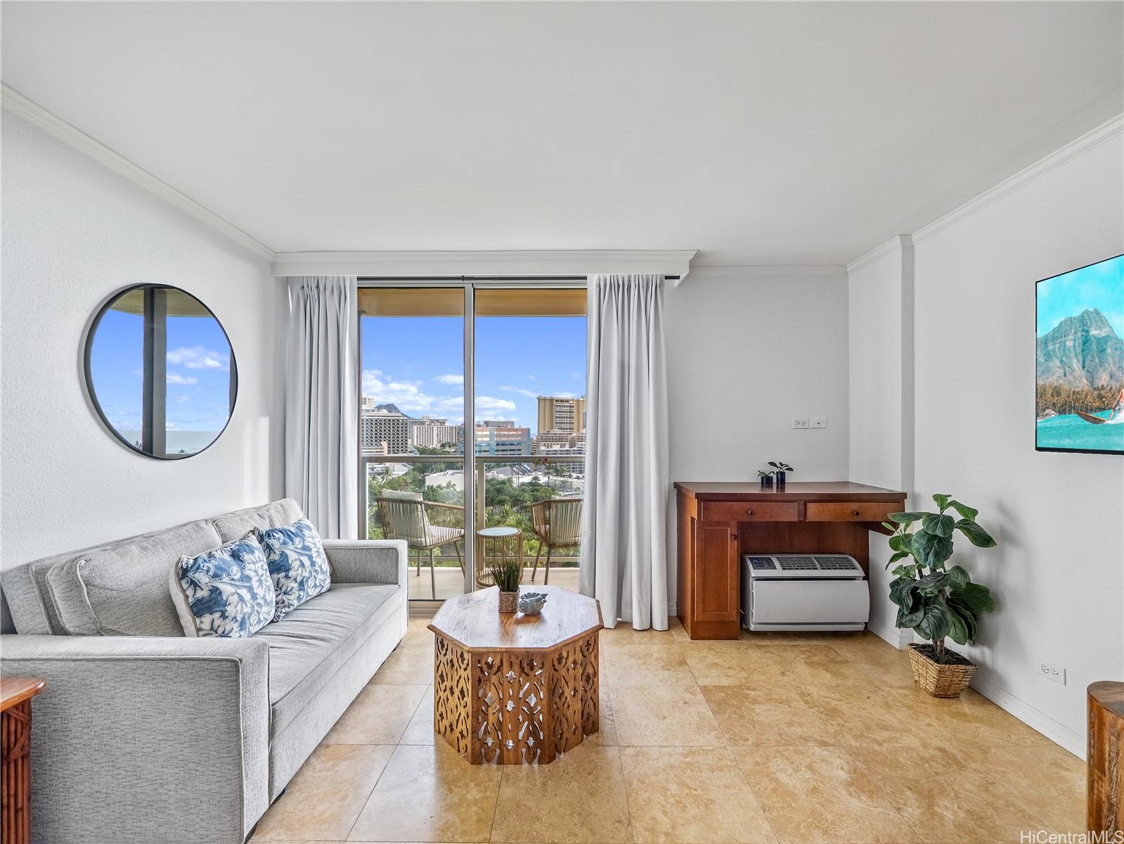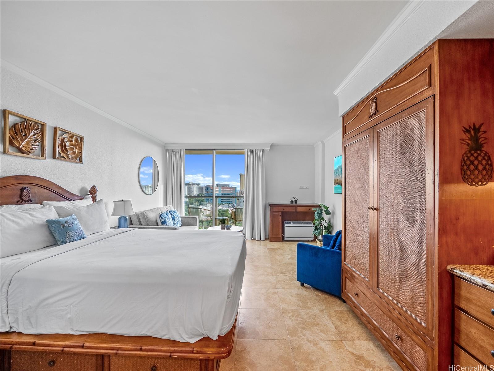 Exceptionally rare high-floor ocean-view studio in Luana Waikiki; the desirable 09 stack features unobstructed ocean views and a broad overlook of Fort DeRussy Park. From your private lanai, take in the signature park-to-ocean scenery and enjoy Waikiki’s popular Friday night fireworks.This furnished studio offers a smart layout with a queen bed and sofa sleeper, plus a convenient kitchenette equipped with a cooktop, mini refrigerator, and microwave; ideal for light meals and extended stays. Enjoy hotel-style amenities including a swimming pool, BBQ area, and fitness center/gym, all in a prime Waikiki location near beaches, dining, and shopping. A newly announced luau experience nearby is anticipated to enhance the area’s resort-style appeal. Rare opportunity to own a standout Luana Waikiki ocean-view studio with Fort DeRussy Park views and a lanai.
