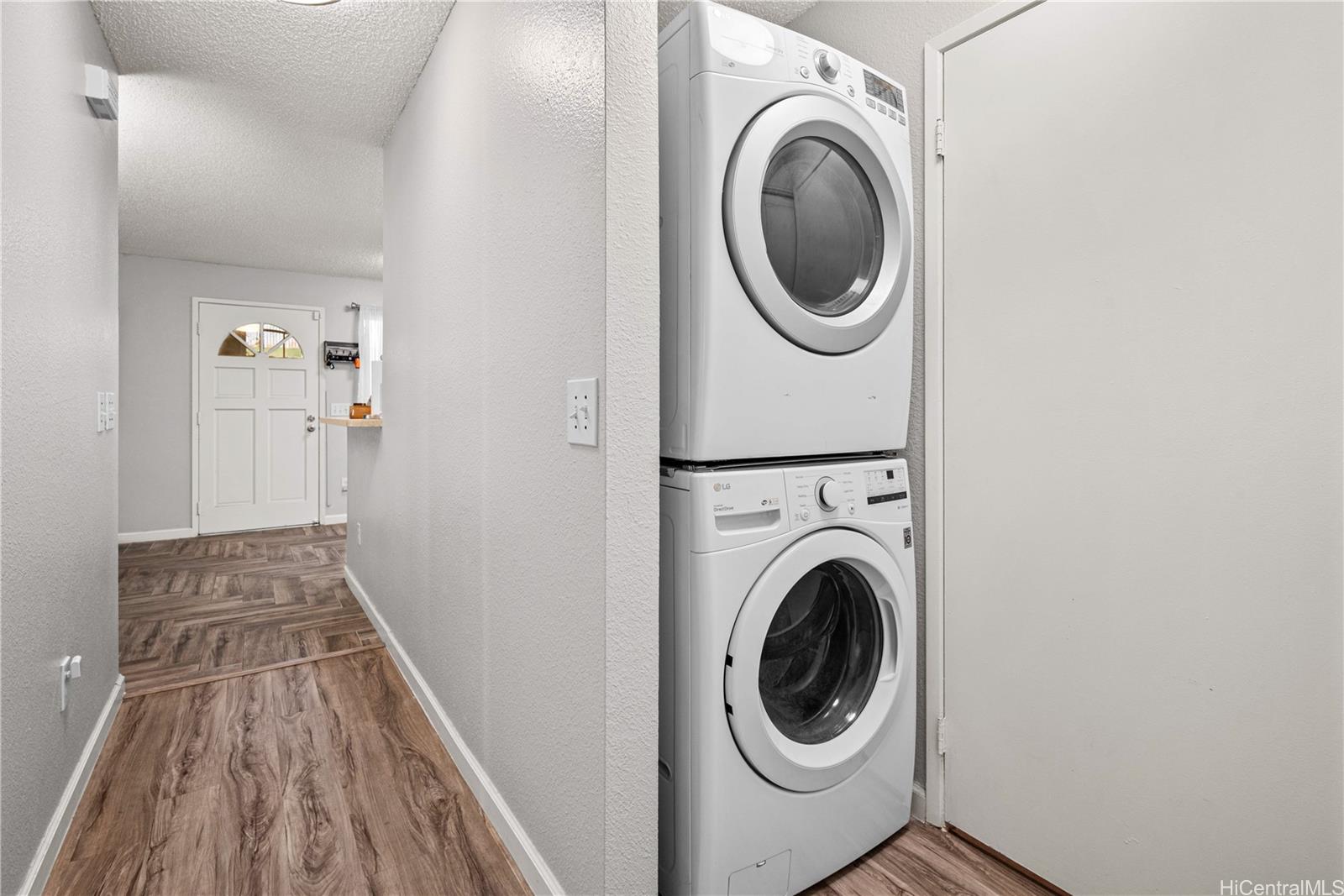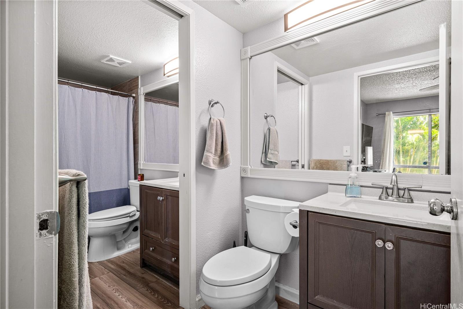 Welcome Home to this beautifully maintained ground floor corner 2 bedroom, 1 ½ bath, 1 parking end residence in the highly desired Mahi Ko at Waikele community! Spacious, fully fenced private yard—lush and lovingly maintained—extends directly from the living room, creating your own tropical sanctuary. The covered lanai is perfect for relaxing, dining outdoors, or enjoying the cool breezes unique to this corner-end orientation. Located in Central O‘ahu, Mahi Ko at Waikele offers unbeatable convenience. You’re just minutes from freeway access, military bases, Waikele Country Club, the popular Waikele Premium Outlets, grocery stores, dining options, parks, and more. This home comes with one assigned parking stall and multiple guest stalls nearby. This is a gem in paradise!