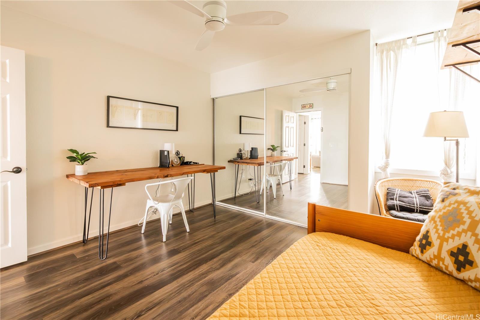 マカキロ・ハイツのウエストビューにある、最上階の角部屋エンドユニット。 このモダンな角部屋は、796平方フィート(約74平方メートル)の考え抜かれた居住空間内に、広々とした2つの ...
