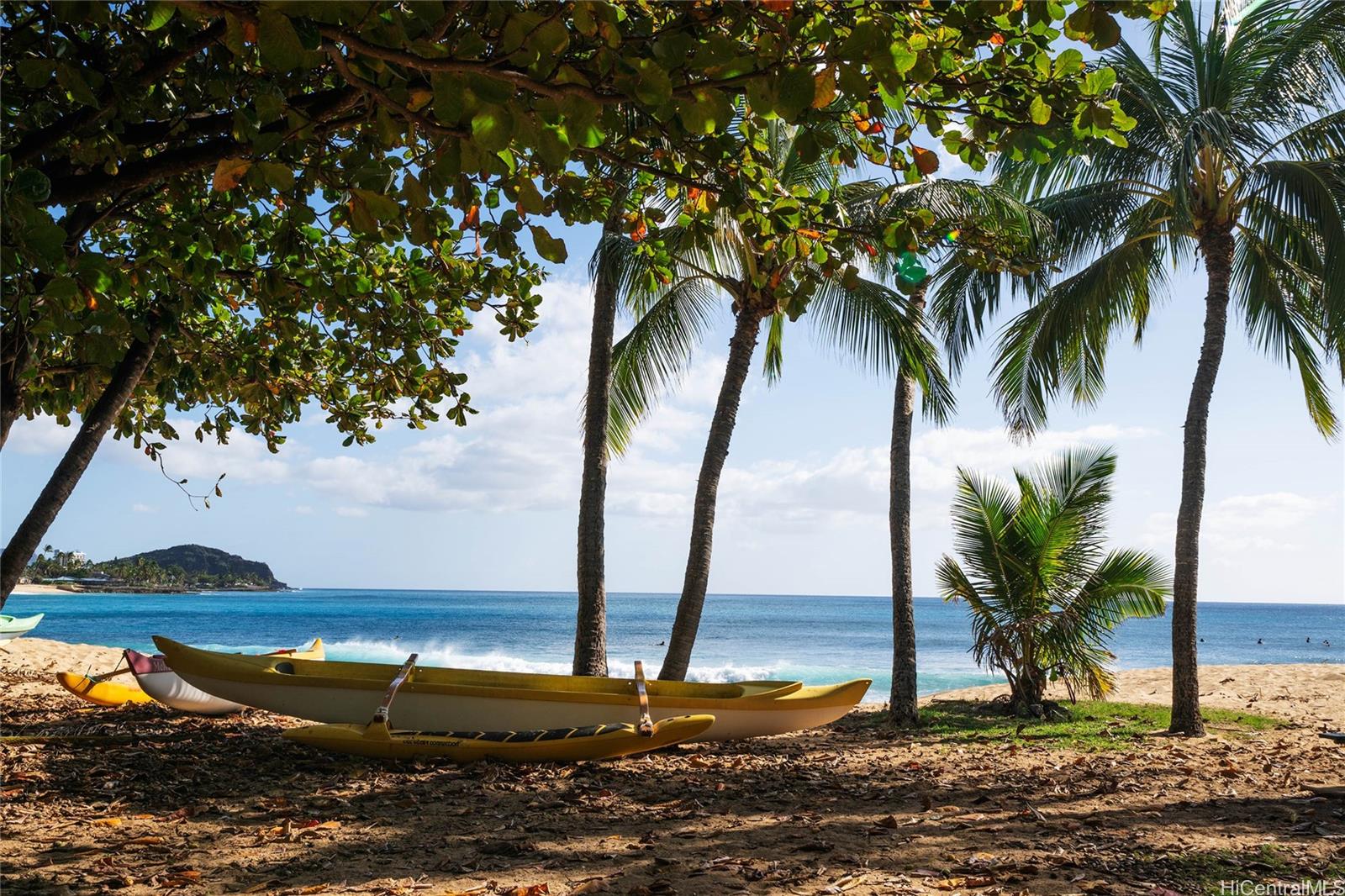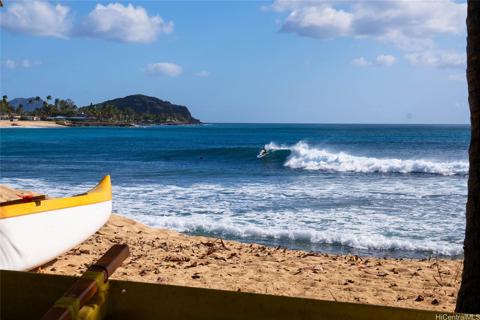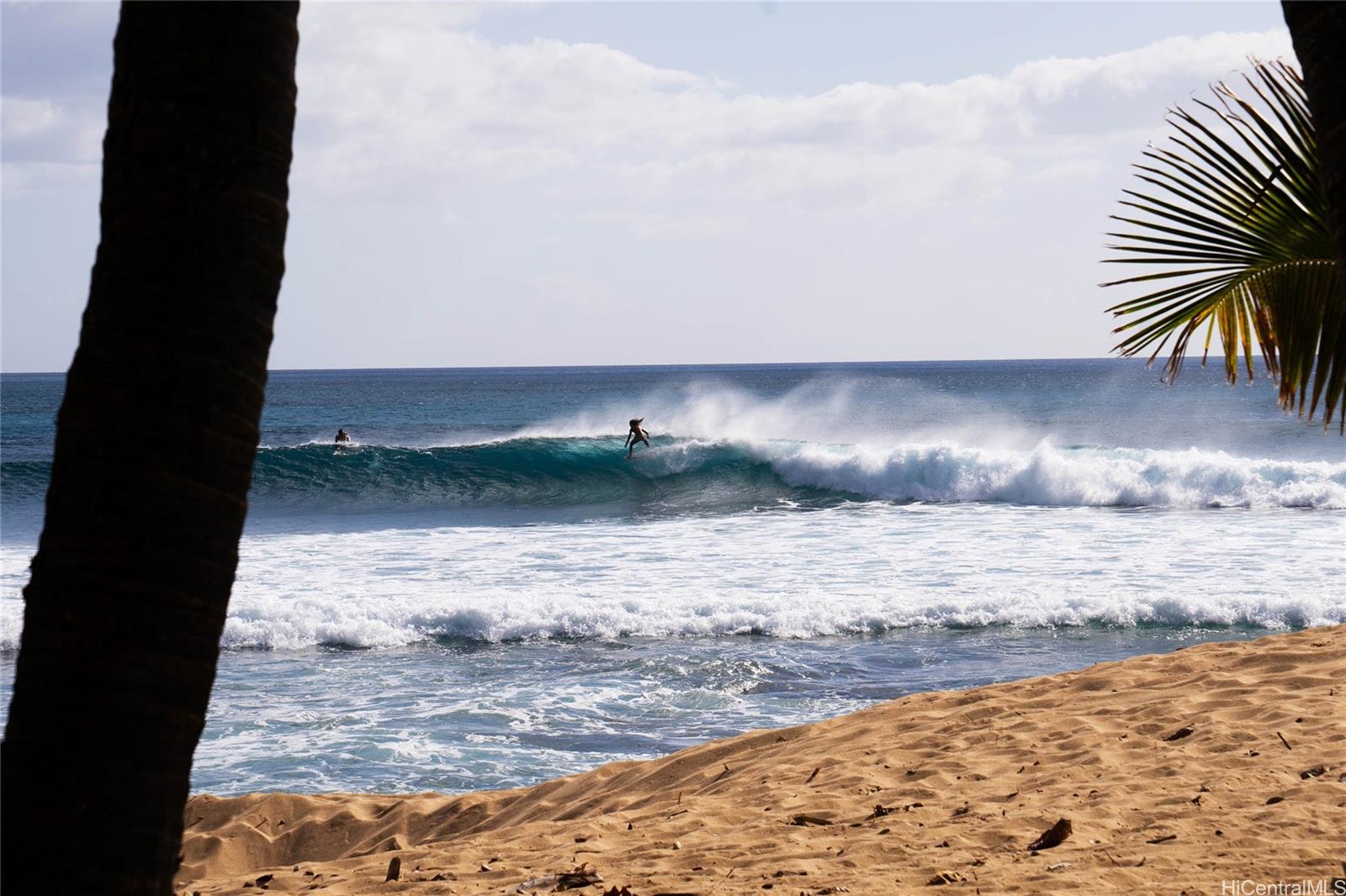 Beach front cozy studio overlooking the famous Makaha Surfing Beach. Modern upgrades including porcelain tile flooring, sleek marble counter tops, split AC, upgraded electrical, and a convenient Murphy bed that maximizes your living space. Sit back and relax on your own private Lanai just steps away from the beautiful sandy beach. Enjoy surfing, swimming, snorkeling, body boarding, paddle boarding or just sunbathing minutes from your front door. Spinner dolphins, sea turtles, majestic sunsets…. Enjoy the heated swimming pool and evening barbeque. This beach front studio is your opportunity to own a piece of paradise. Enjoy cool ocean breezes, the stunning Pacific Ocean, Makaha Beach and panoramic coastline views daily. Whether you are searching for a peaceful retreat or an active beachfront lifestyle this home offers the perfect balance of comfort, style and natural beauty.