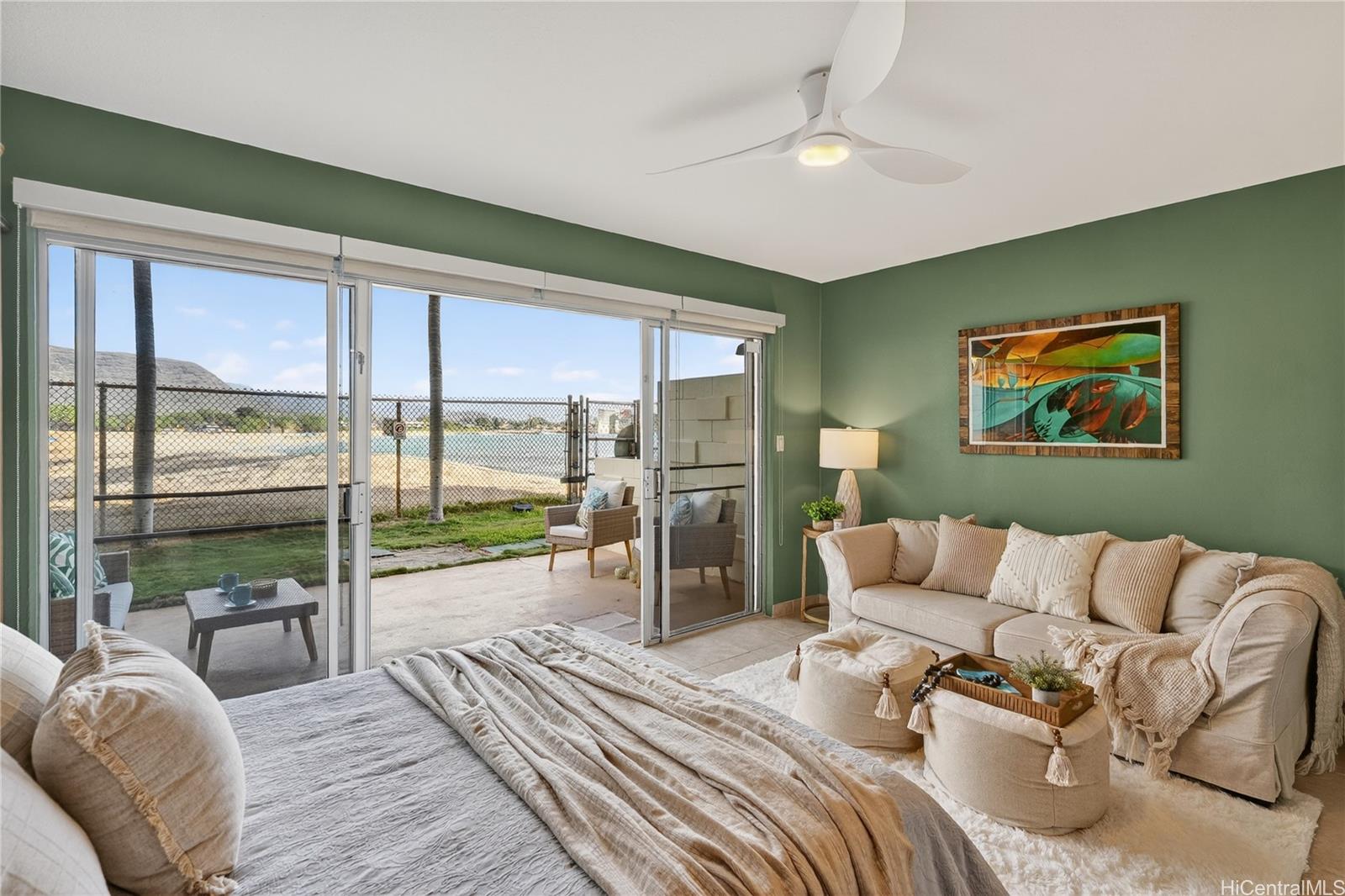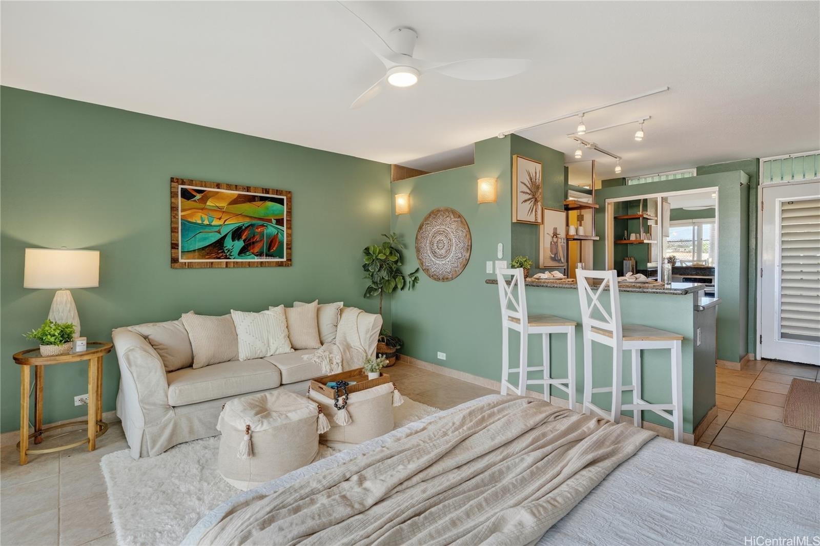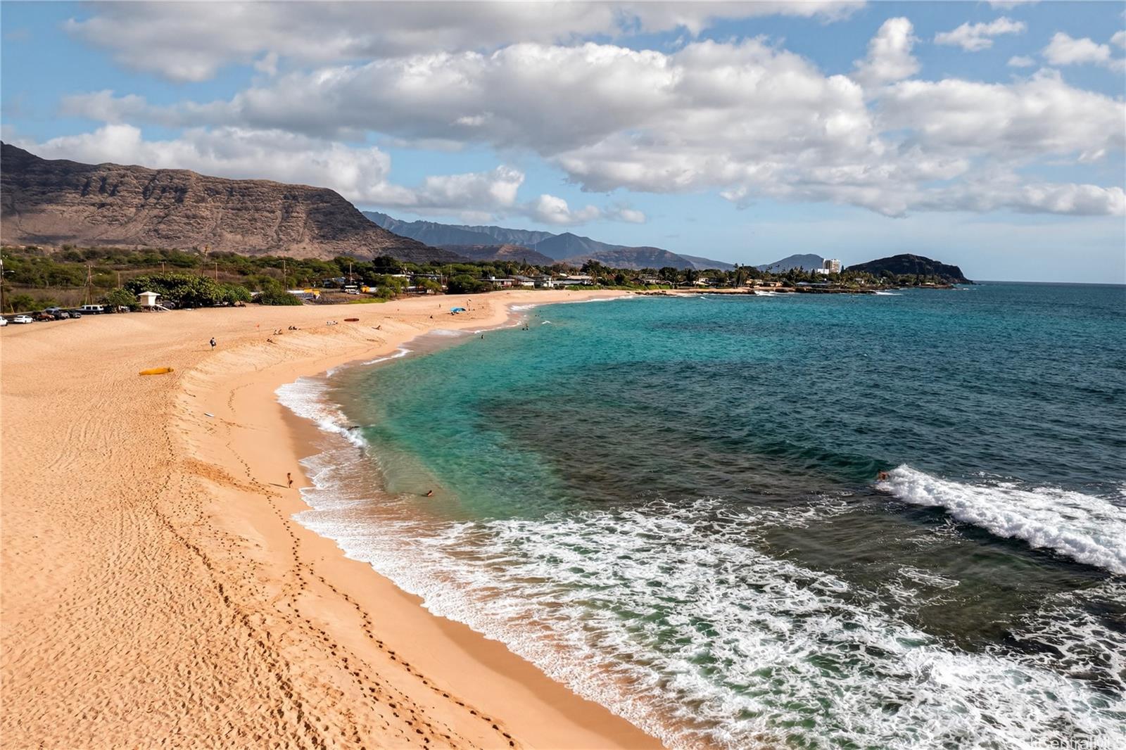 Experience true oceanfront oasis living at Makaha Shores—the only condominium located directly on world-famous Makaha Beach. This rarely available ground-floor studio offers effortless island living, placing surf, sand, and shoreline within feet of your lanai.Thoughtfully upgraded with efficient, space-saving features, the home includes porcelain tile flooring throughout, movable track lighting, a cooling ceiling fan, and a queen Murphy bed for maximum flexibility. The kitchen features granite countertops and ample cabinet space, while the renovated bathroom offers a stylish step-in tiled shower.One of only six units with an enclosed front lanai, it also includes the only lockable surfboard storage of its kind – fits up to 10ft! Perfect for keeping beach gear secure and accessible. Assigned parking included. With no stairs from entry to unit, ground-floor convenience adds ease to daily living.Amenities include heated saltwater pool, BBQ area, on-site manager, coin/app laundry, and 24-hour security (both cameras and on-site personnel). Enjoy ocean views, steady coastal breezes, and a beautiful beachfront setting that offers a true oceanfront oasis on Oahu’s west side.