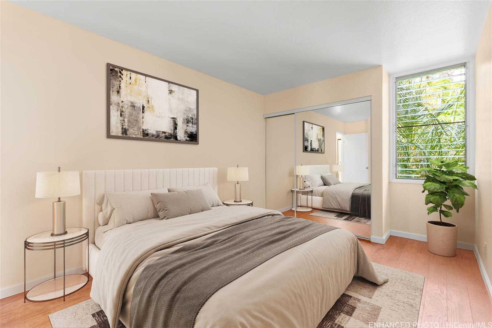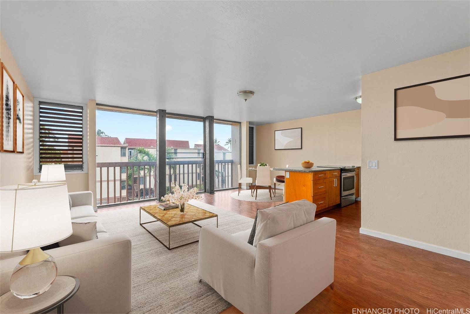 Welcome to this spacious and well-maintained 2 bedroom, 1 bath unit at Makaha Valley Plantation #76B, offering an impressive 815 sq ft of interior living space set among lush greenery and scenic mountain surroundings. This inviting home features a bright, comfortable layout with durable vinyl plank flooring and an updated kitchen with stainless steel appliances, making it easy to move right in and enjoy. The well-sized bedrooms and efficient floor plan create a space that feels both open and highly livable. Residents enjoy a wide range of amenities including a swimming pool, tennis and pickleball courts, basketball courts, BBQ areas, and on-site security. Conveniently located just a short drive to beaches, hiking, and daily essentials, this is a fantastic opportunity to own a generously sized home in a resort-style setting. A few photos have been virtually staged/enhanced.