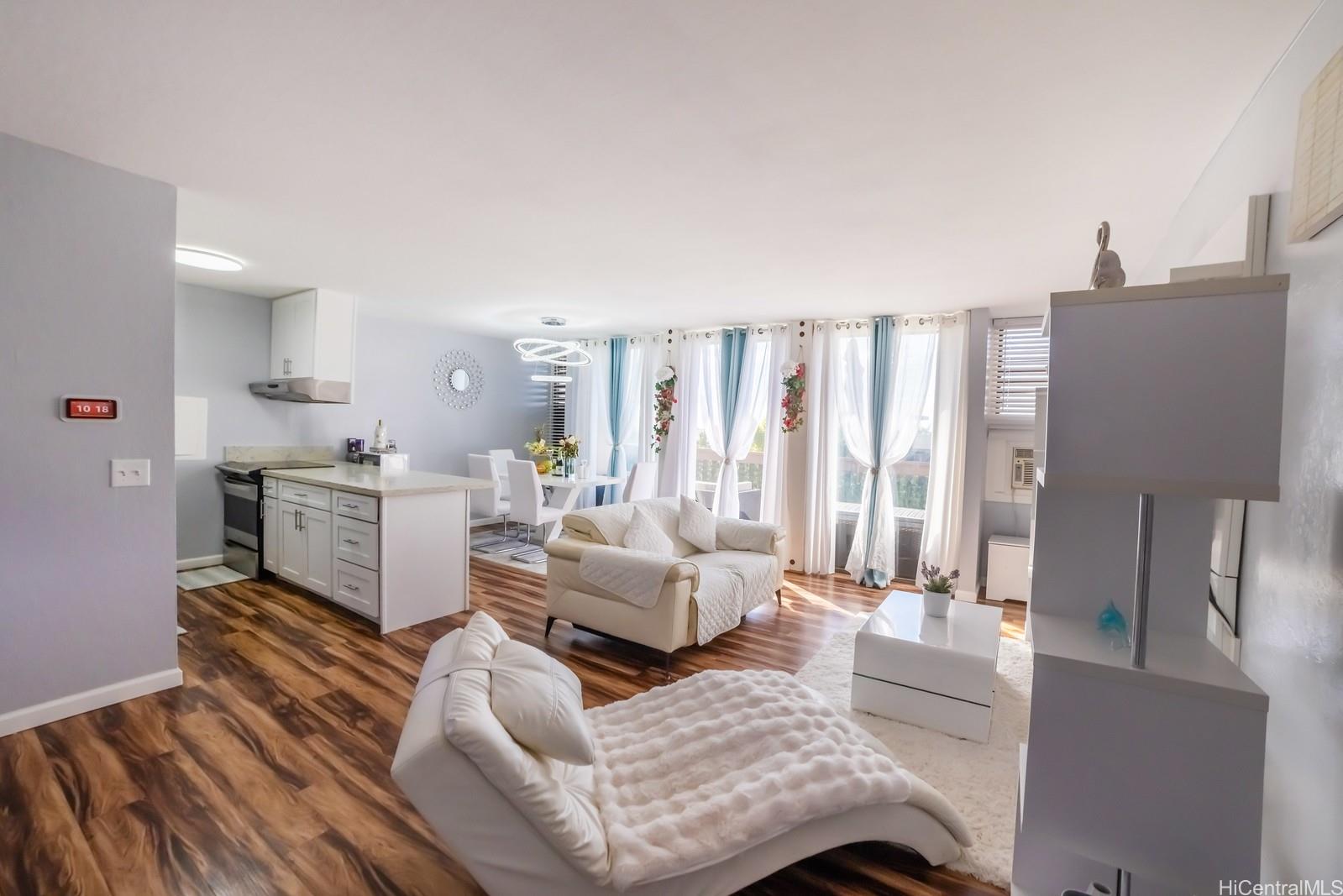 マカキロ・ハイツのウエストビューにある、最上階の角部屋エンドユニット。 このモダンな角部屋は、796平方フィート(約74平方メートル)の考え抜かれた居住空間内に、広々とした2つの ...