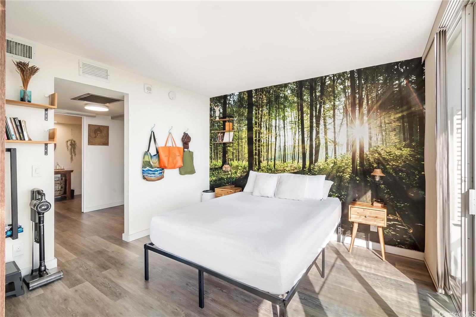 この1ベッドルームの高層アパートメントからは、市街地、海、山のパノラマビューでお目覚めください。 ラナイでコーヒーを飲んでいても、長い一日の後にくつろいでいても、景色は飽きるこ ...
