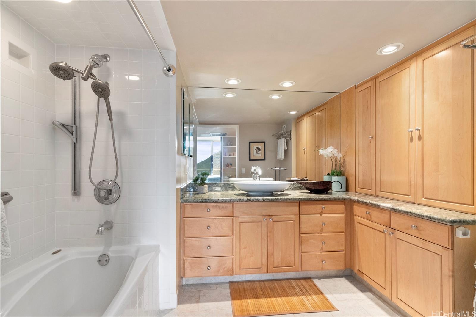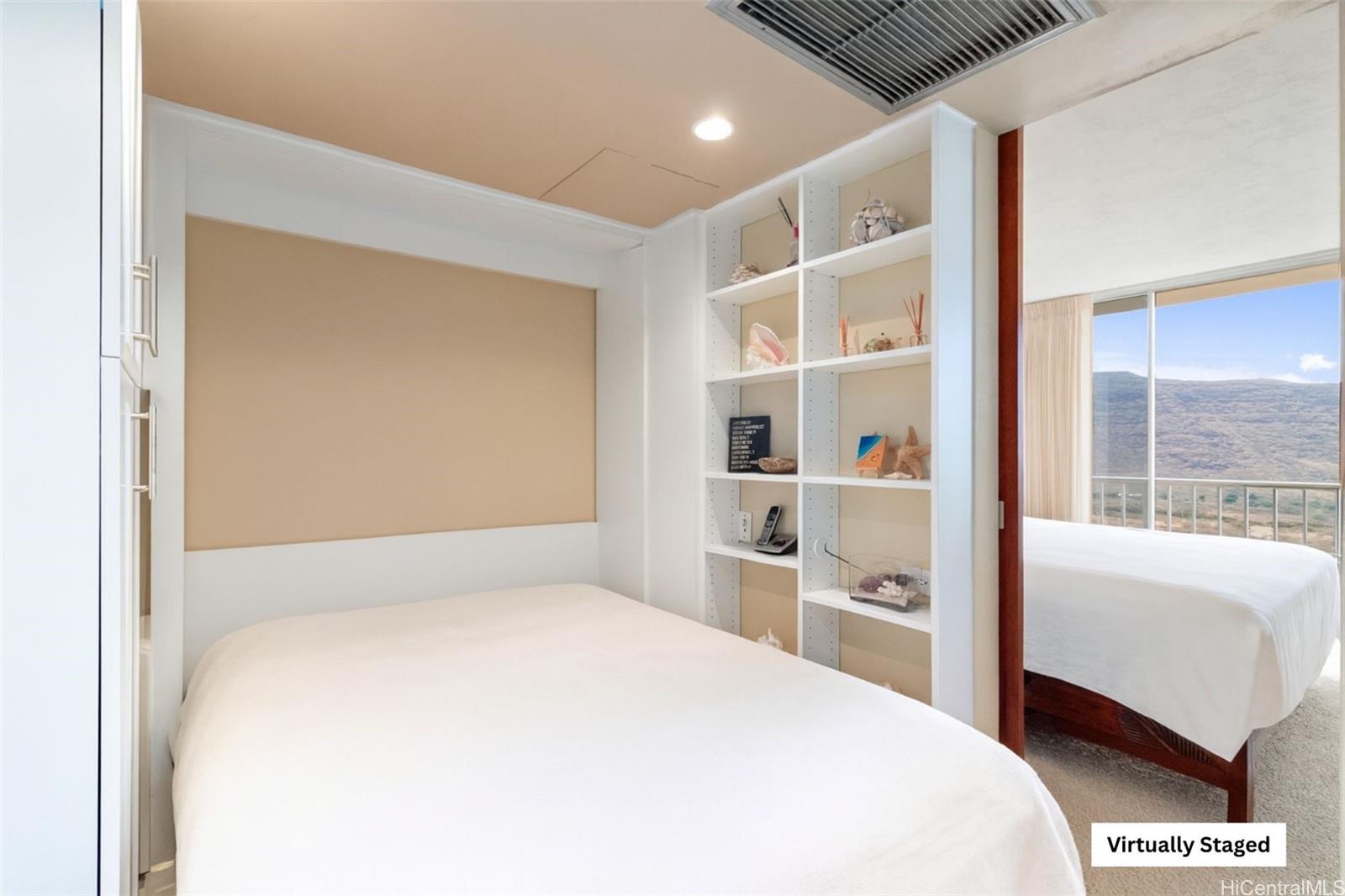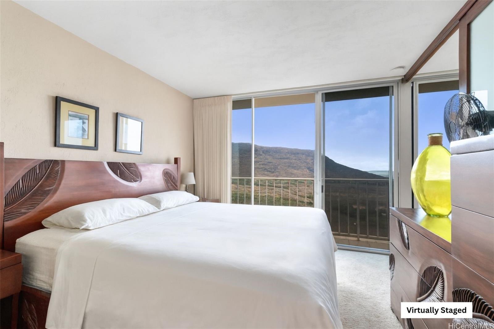 Welcome home to this luxurious high-end condo featuring breath-taking mountain and ocean view! Unit boasts stunning granite countertops & stainless steel appliances complementing an amazing kitchen that includes a sub-zero refrigerator. Popcorn ceiling & Soffits removed allowing cabinets to reach to the ceiling. Bathroom door was removed & replaced w/a 36-in. pocket door, & one dressing room closet was removed & replaced w/built-in shelving/wall unit that includes a pull-down bed. Original Shoji door replaced w/elegant solid mahogany & fogged glass, & an extra Shoji door added in bedroom for privacy. Amenities include 24 hour security, trash chutes, heated pool and barbeque area set within a lush & tropical landscaped gated complex. Maintenance fee includes all utilities, electric, water and air conditioning. Located directly on the bus line. Maintenance fee includes: AC Central, Cable TV, Electricity, Hot Water, Other Common Expenses, Sewer, Water A MUST SEE!