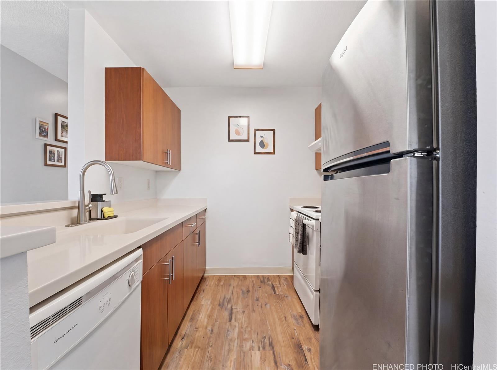 人気の高いマカキロ・クリフス地区における「立地、立地、立地」の好物件。 この角部屋で最上階にある、2ベッドルーム、1. バスルームが5つあるこのタウンハウスは、抜群のプライバシーと心地よい風、そして一歩足を踏み入れた瞬間から心を奪われるパノラマビューを誇ります。 楽園の一角を手に入れましょう。 756平方フィートの、細部まで配慮の行き届いた居住空間を誇るこの魅力的な住居は、広々としたオープンな間取りが特徴で、至る所に十分な収納スペースとキャビネットが備わっています。 キッチンとバスルーム(2017年から2018年に改装完了)には、新しいラミネートフローリング、上品なコーリアン製のカウンタートップ、スタイリッシュな新しいキャビネット、そして新しいコンロなど、モダンな設備が整っています。 専用の屋根付きバルコニーに出て、ハワイでの暮らしを格別なものにする、息をのむような海と山の景色を心ゆくまでお楽しみください。 この建物は、静かな角地に位置するという恵まれた立地を誇り、団地の中でも涼しく風通しの良い側にあり、生い茂った木々や広々とした芝生に囲まれているため、静かでプライベートな隠れ家のような空間となっています。 その他の特長:室内に洗濯機と乾燥機を完備し、最高の利便性を実現しています。 絶好の立地、プライバシー、自然換気、そして最近行われた高品質な改修が相まって、このタウンハウスは絶好の購入機会となっています。 .