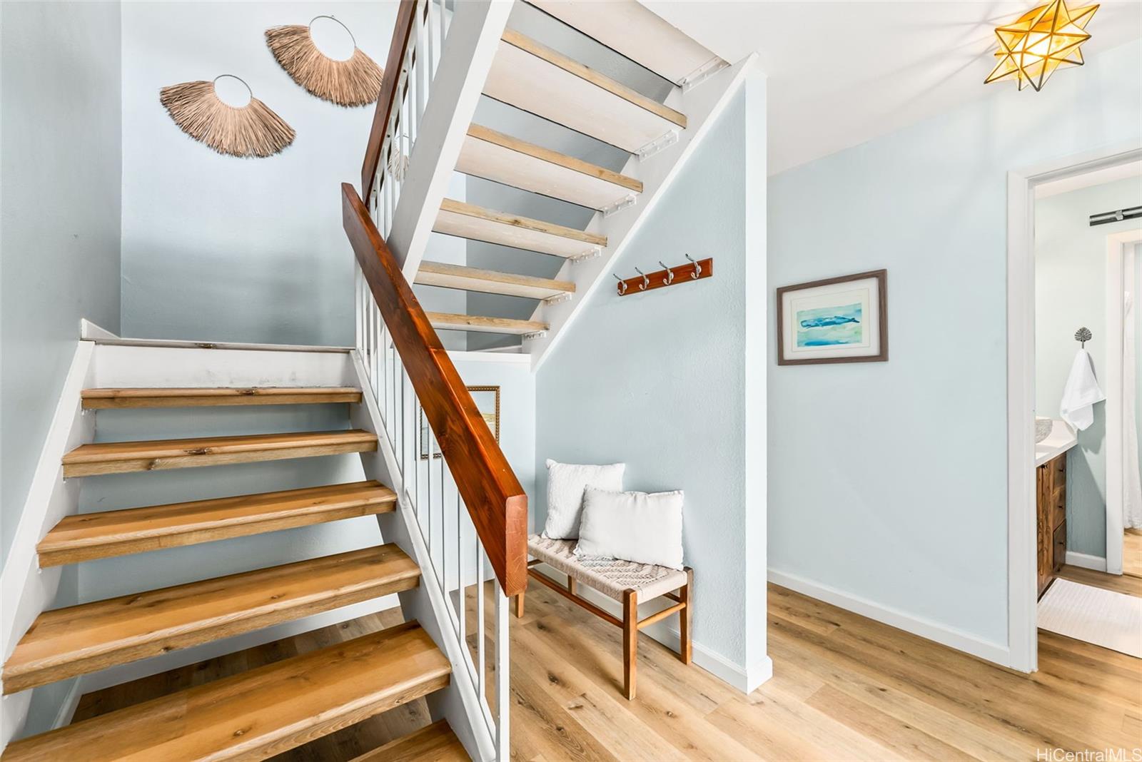 Opportunity awaits with a $10,000.00 credit to buyer with full price offer! Blending nature and serenity, this 3 bedroom, 2 bath unit with a 38 ft deeded boat slip, combines the feel of a tropical oasis with the beauty of the surrounding Ko’olau mountains and grandeur of Kaneohe Bay. Second floor vaulted ceilings with exposed wood beams provides an open flow to one of 4 private lanais. Recently updated kitchen with a gorgeous monkey pod bar top will have you excited to create and/or host lavish get togethers with family and friends. Feel transported to a luxurious spa when you step into the recently updated bathrooms. Enclosed, private back yard space which leads to an outdoor grassy area is perfect for fur friends and keiki. Makani Kai Marina is a gated, pet-friendly community sitting on the waterfront of Kaneohe Bay. You’ll have access to the pool, rec room, grilling spaces as well as lots of guest parking. Don’t own a boat? Rent out your slip for monthly income!