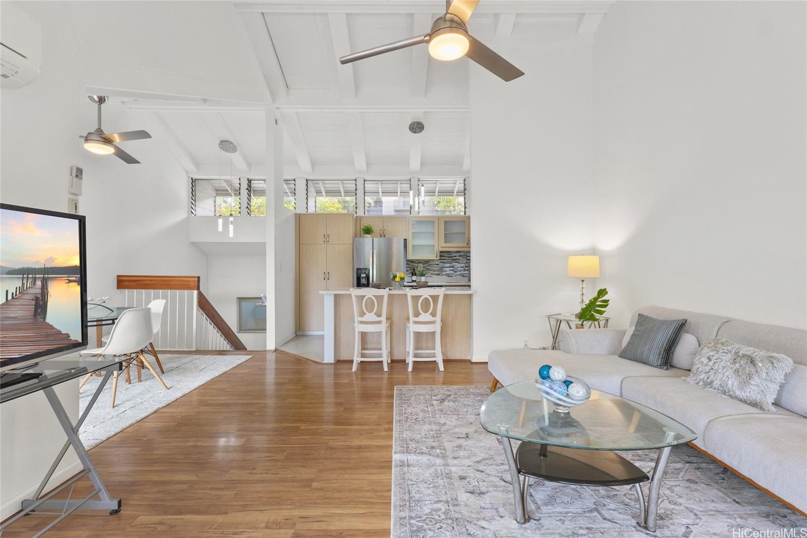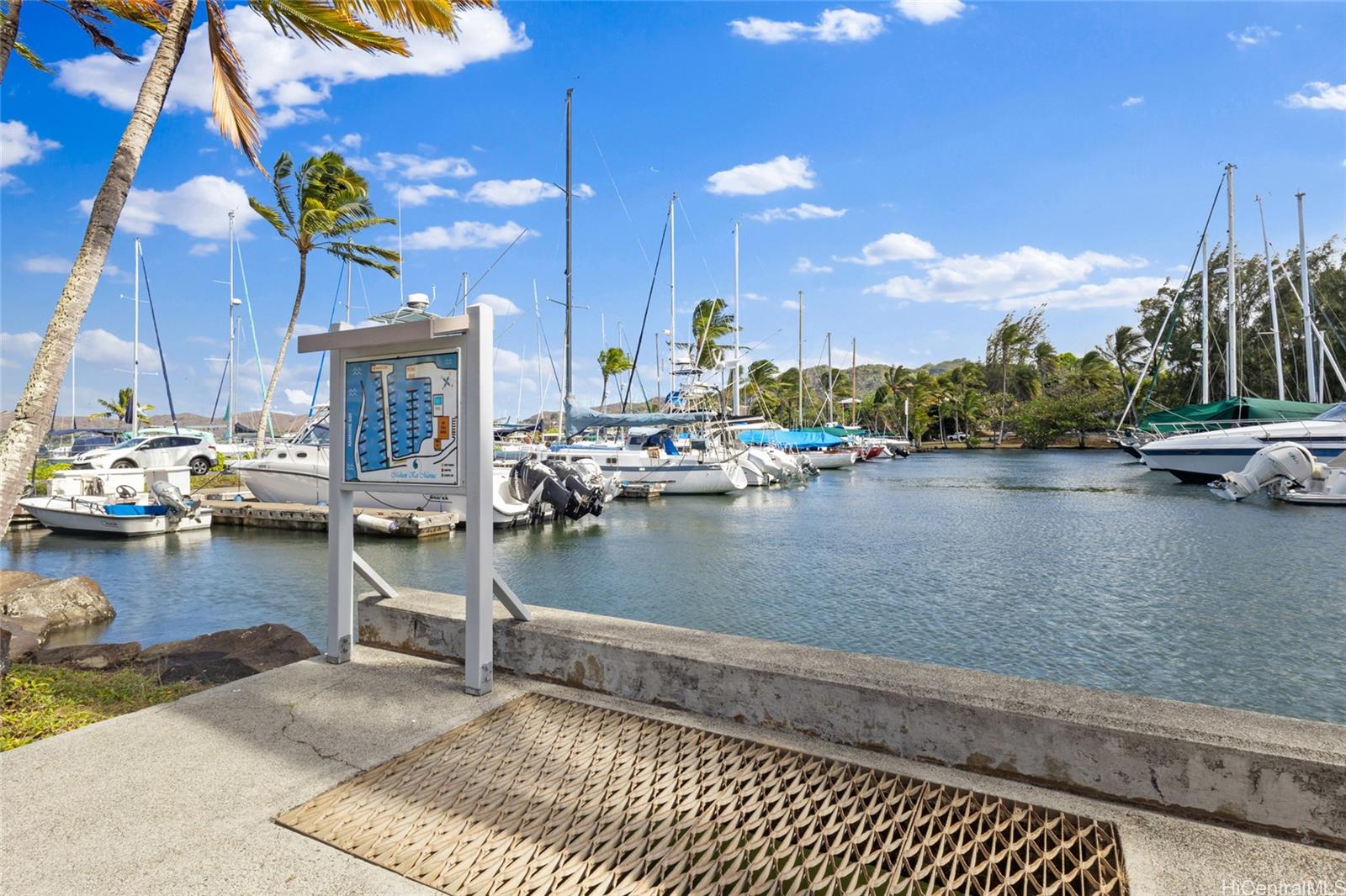 Ahoy all boaters, fisherman and ocean lovers. Don’t’ miss this opportunity to own a private 34ft. boat slip, along with a beautiful 3 bed/2 bath townhouse, in Makani Kai Yacht Residences Marina – a private and gated boating community where you can moor your boat just steps from your home and access to Kaneohe bay, the Kaneohe sandbar, and the open ocean. The boat slip has the best location in the marina -it’s downwind with close access to guest parking and clubhouse for easy loading. It also has water and shore power (approved for installation of a dock box). The slip is located near a freshwater stream which limits the effect of the salt water, reduces the need for bottom cleaning. If you don’t have a boat now, slip can be rented approx $750/mo. There’s also storage, and easy ocean access, for kayaks and other watercraft. Unit 29 has split ACs in bedrooms and living room. Bright and airy with a modern kitchen. 27 fully owned solar panels. 2 covered parking stalls. Enjoy peaceful marina living, scenic bay views, and the comfort of a well-maintained home. Whether you’re setting sail on your boat or soaking in the waterfront serenity, this property offers the best of island living.