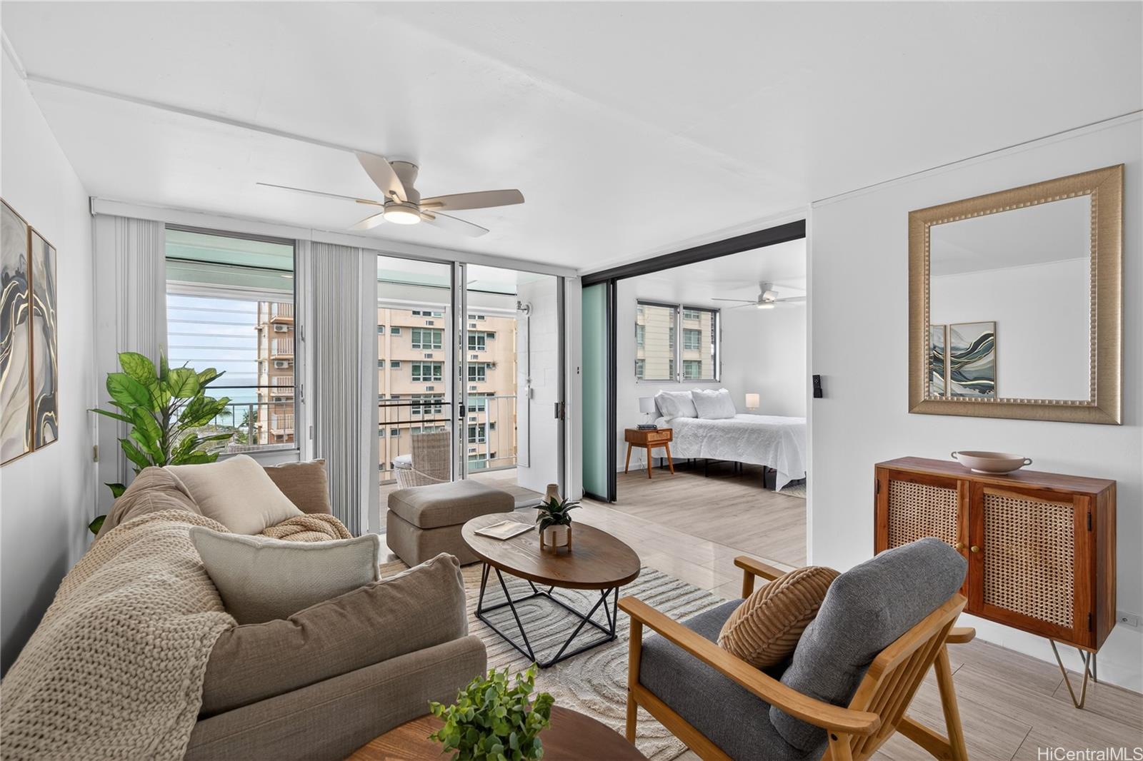 Rarely available high-floor with ocean view residence at the classic Makee ‘Ailana! Enjoy sweeping views of thePacific Ocean, Kapi‘olani Park, and Diamond Head from this coveted East Waikiki address just a block fromworld-famous beaches and surf breaks. This spacious 2 bedroom, 2 bath, 1 covered parking features a desirabledouble-en-suite layout with large bedrooms, walk-in closets, and a generous lanai perfect for entertaining, morningcoffee, or sunset cocktails. Ready for your personal touch and a little TLC, this location with parking this close to thebeach is your perfect home in paradise. Makee ‘Ailana is a well-managed, pet-friendly community(dogs up to 22 lbs) with a friendly, boutique feel (only 4 units per floor) and 90-day minimum rentals allowed.